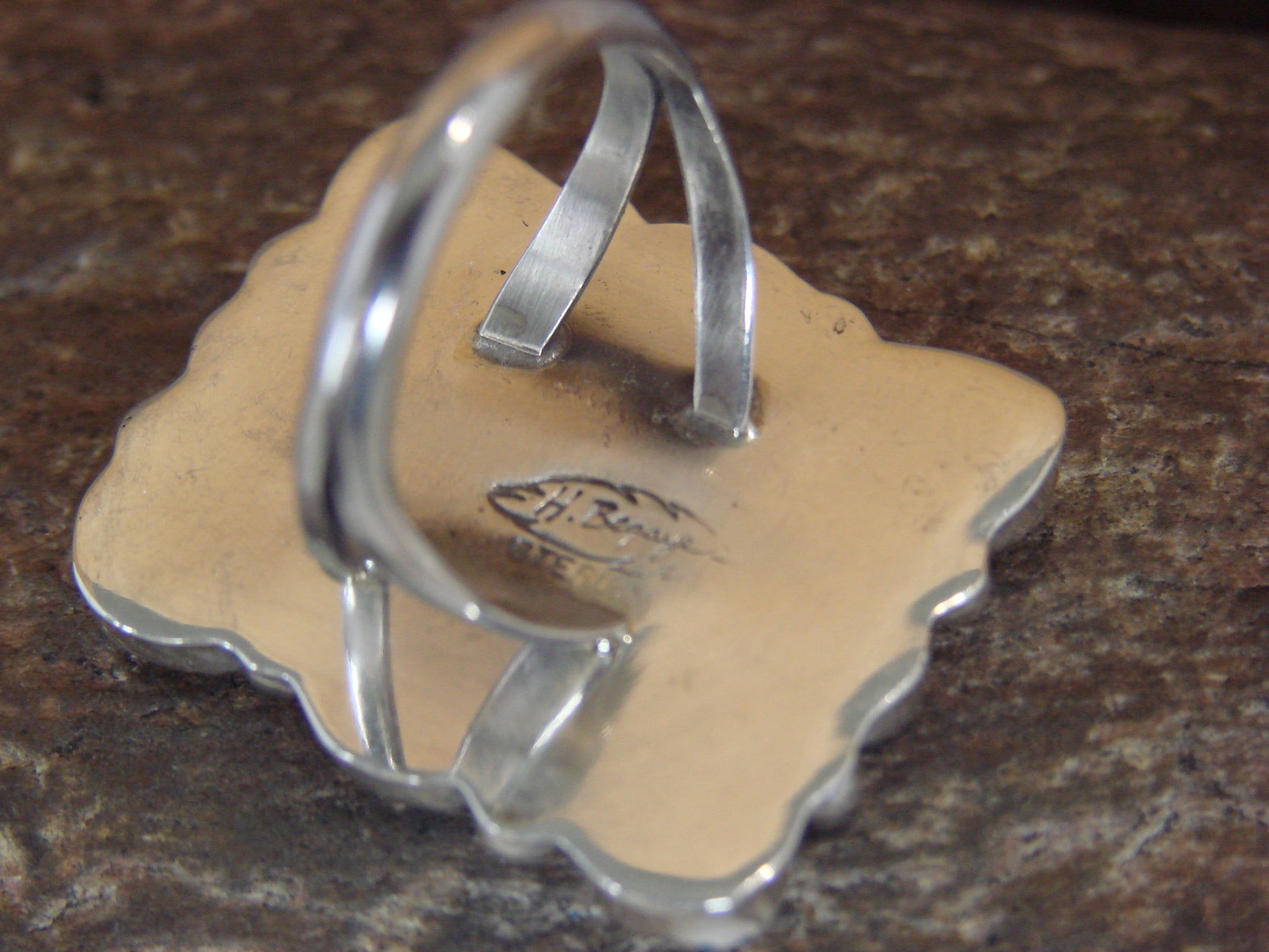 Genuine Native American Navajo Indian Sterling Silver & Turquoise Cluster Ring from Western New Mexico. This Gorgeous ring features Genuine Turquoise stones set into crown Sterling Silver bezel settings. Surrounding the stones are beautiful details in Sterling Silver. The stones are polished and have a Stunning look! Handmade by Navajo Silversmith Herbert Begay. Signed "H. Begay" and Stamped "Sterling" on the back. Free gift box and shipping included!