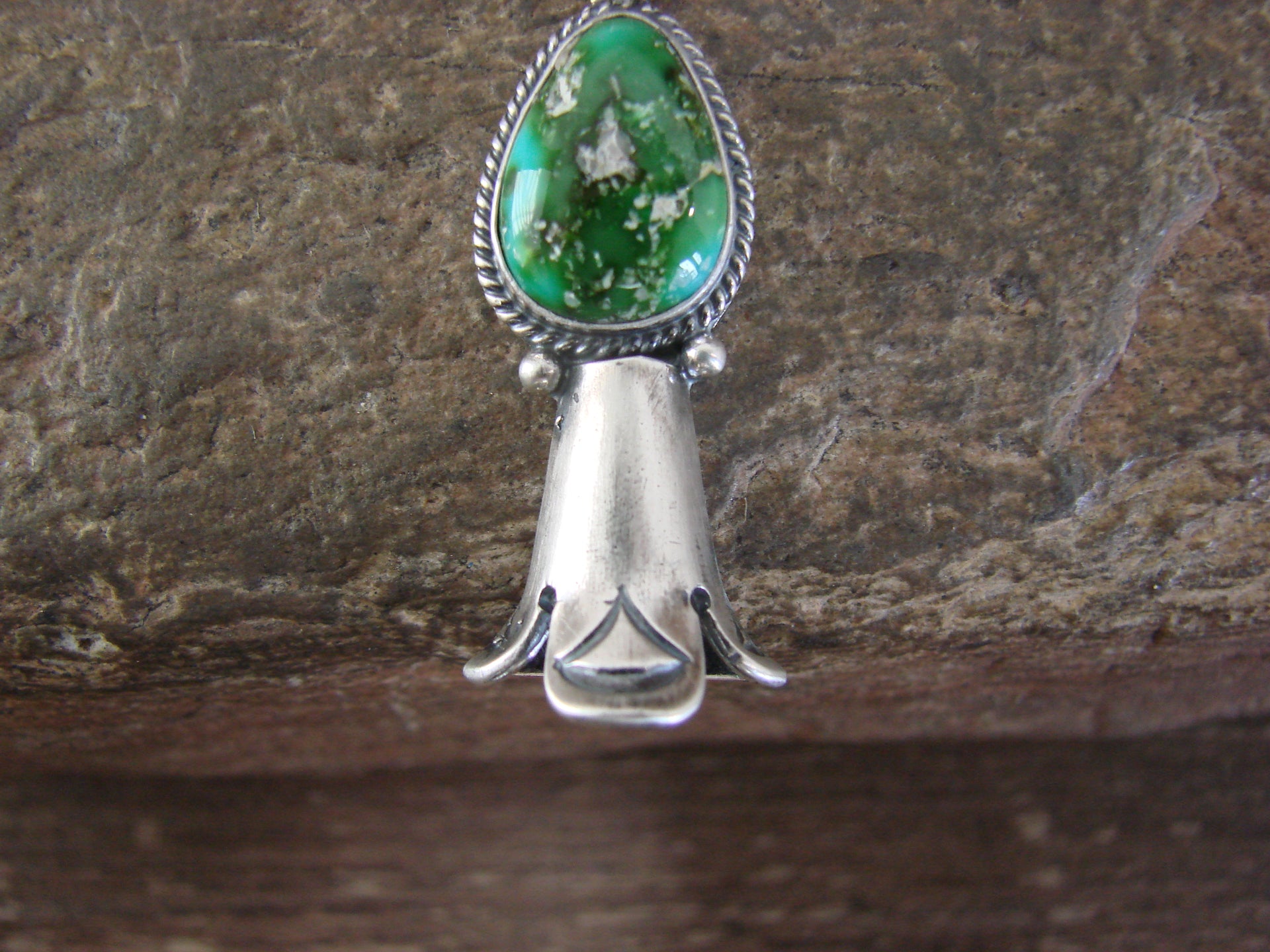 Native American Sterling Silver & Turquoise Squash Blossom Pendant by Betone