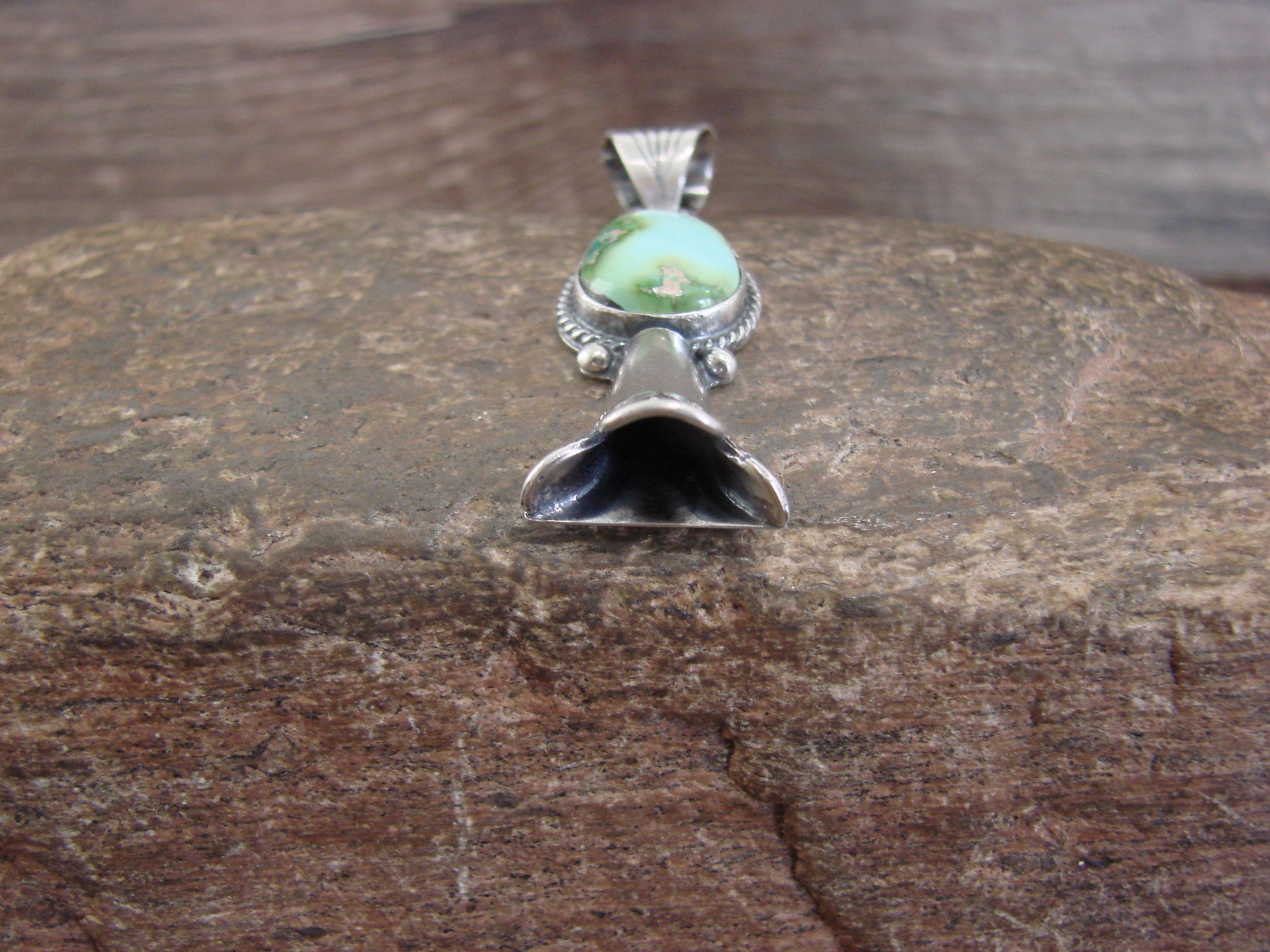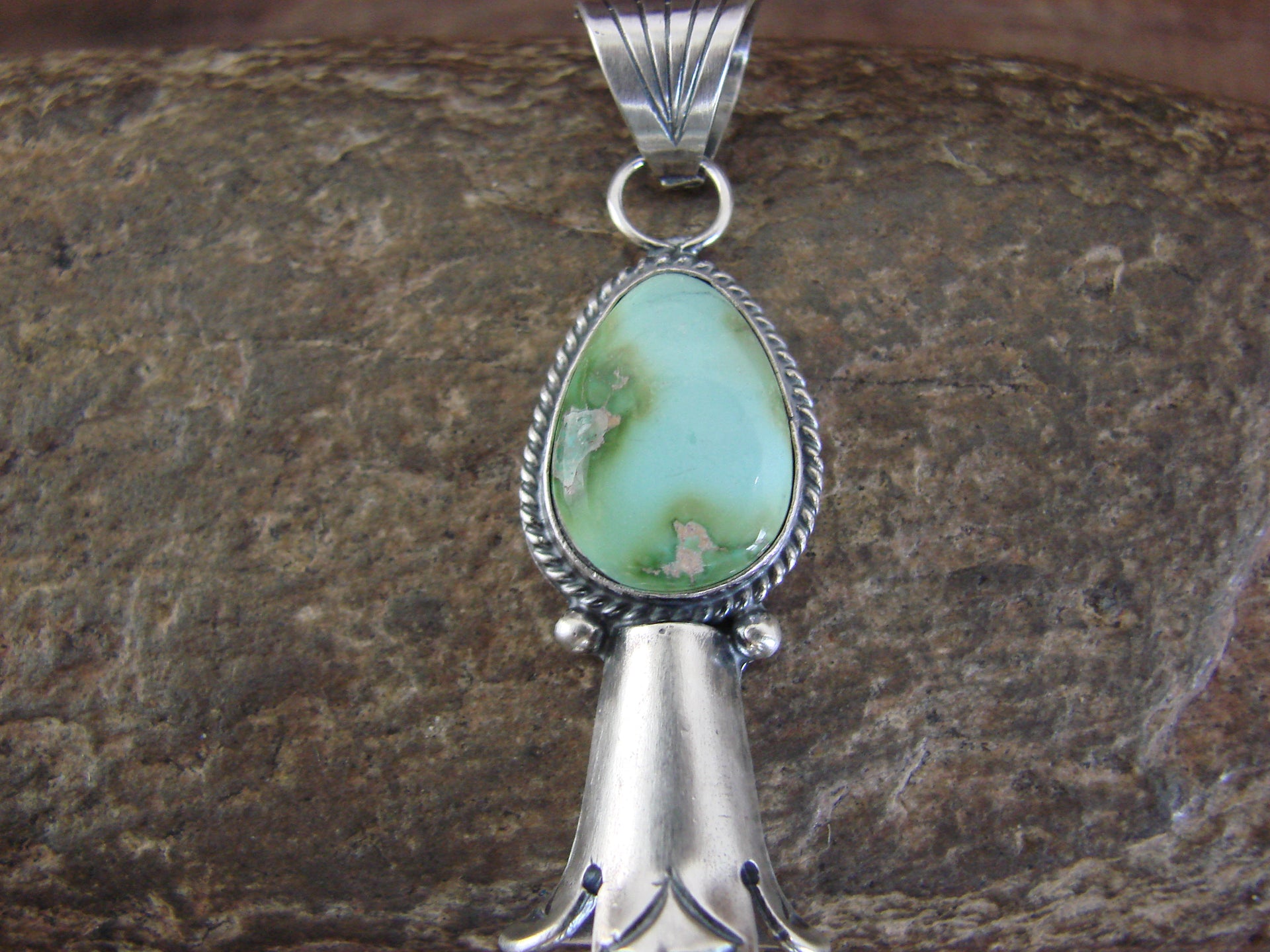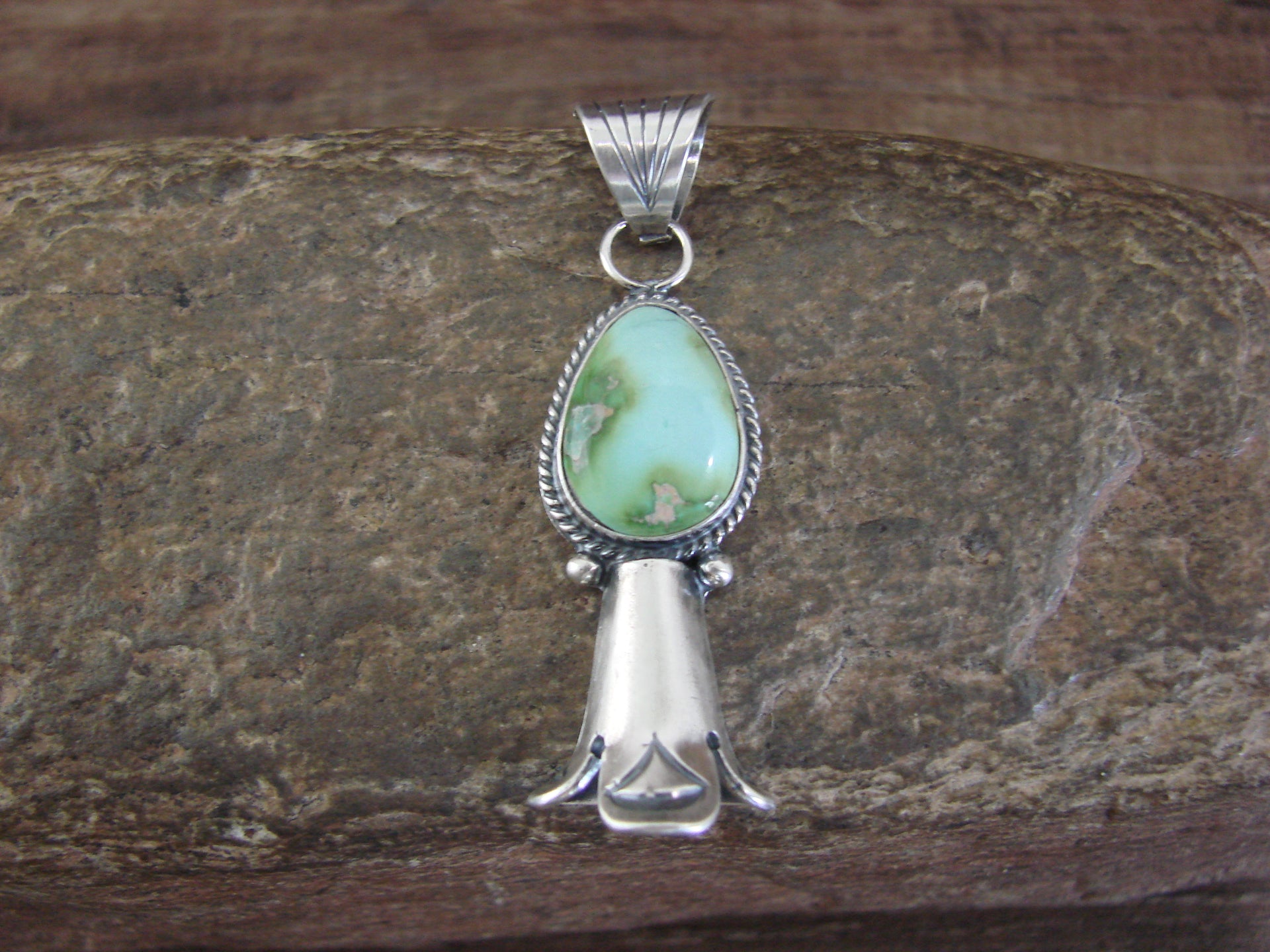 Native American Sterling Silver & Turquoise Squash Blossom Pendant by Betone