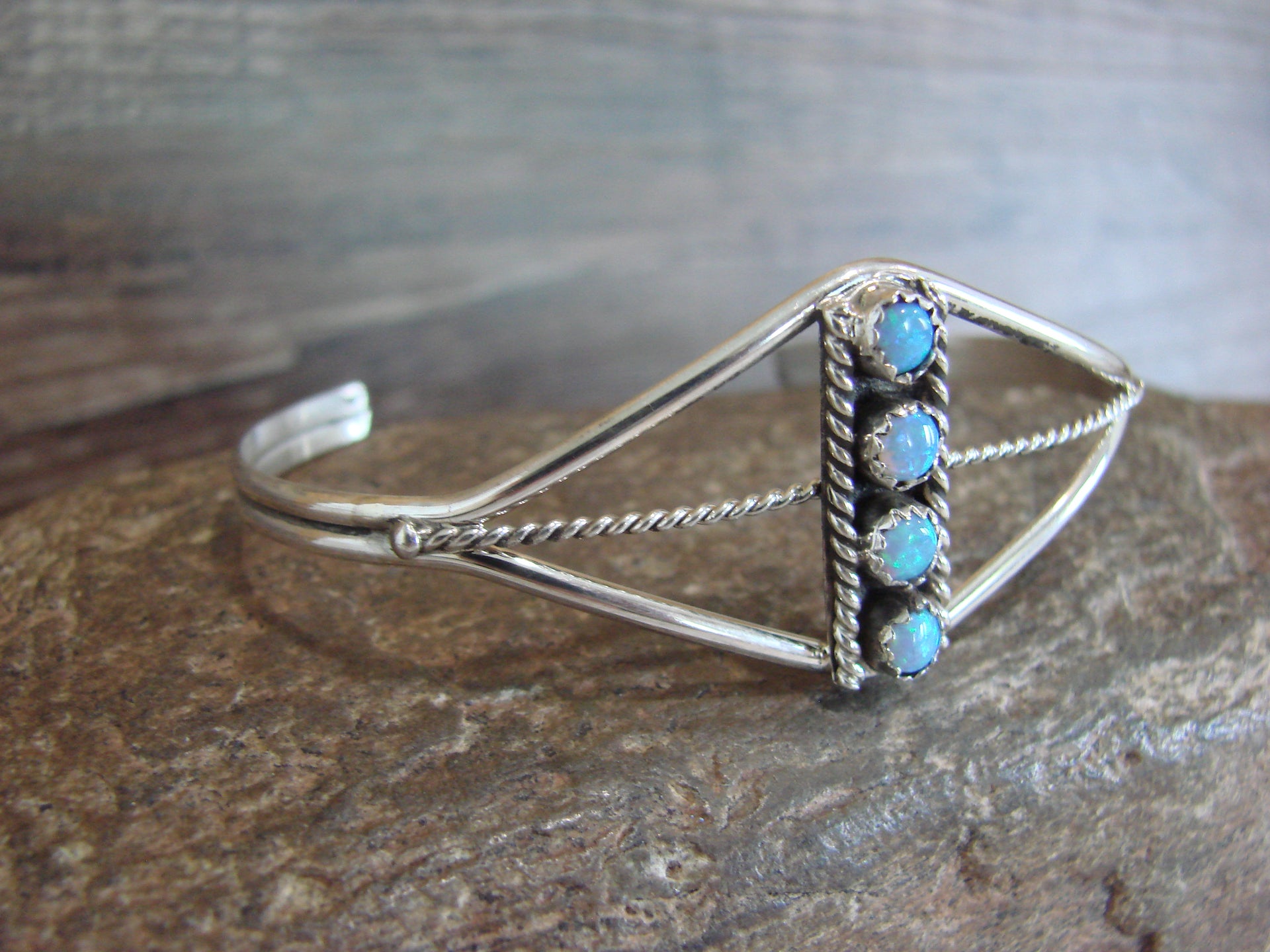 - Native American Sterling Silver Blue Opal Inlay Row Bracelet - Spencer