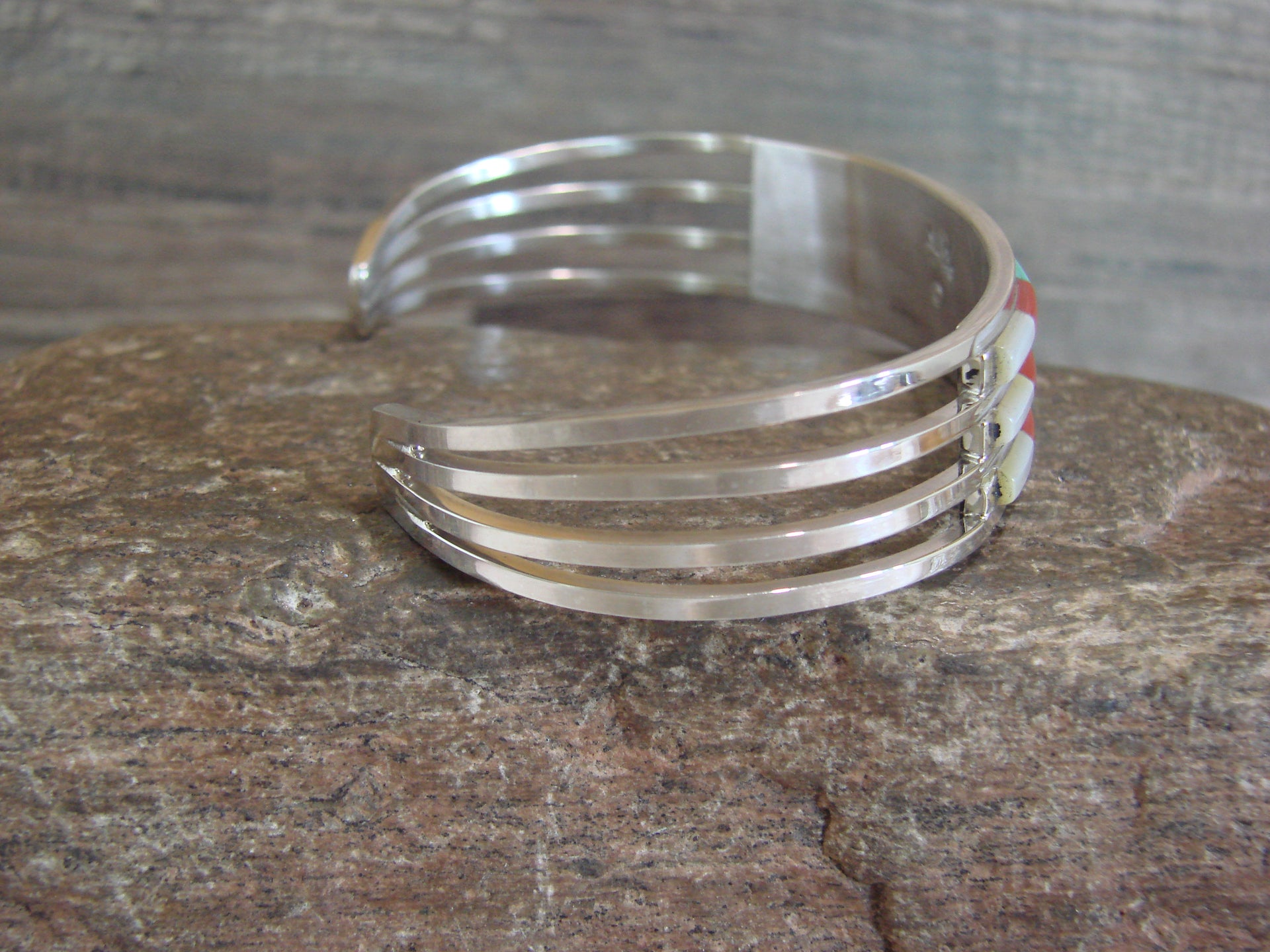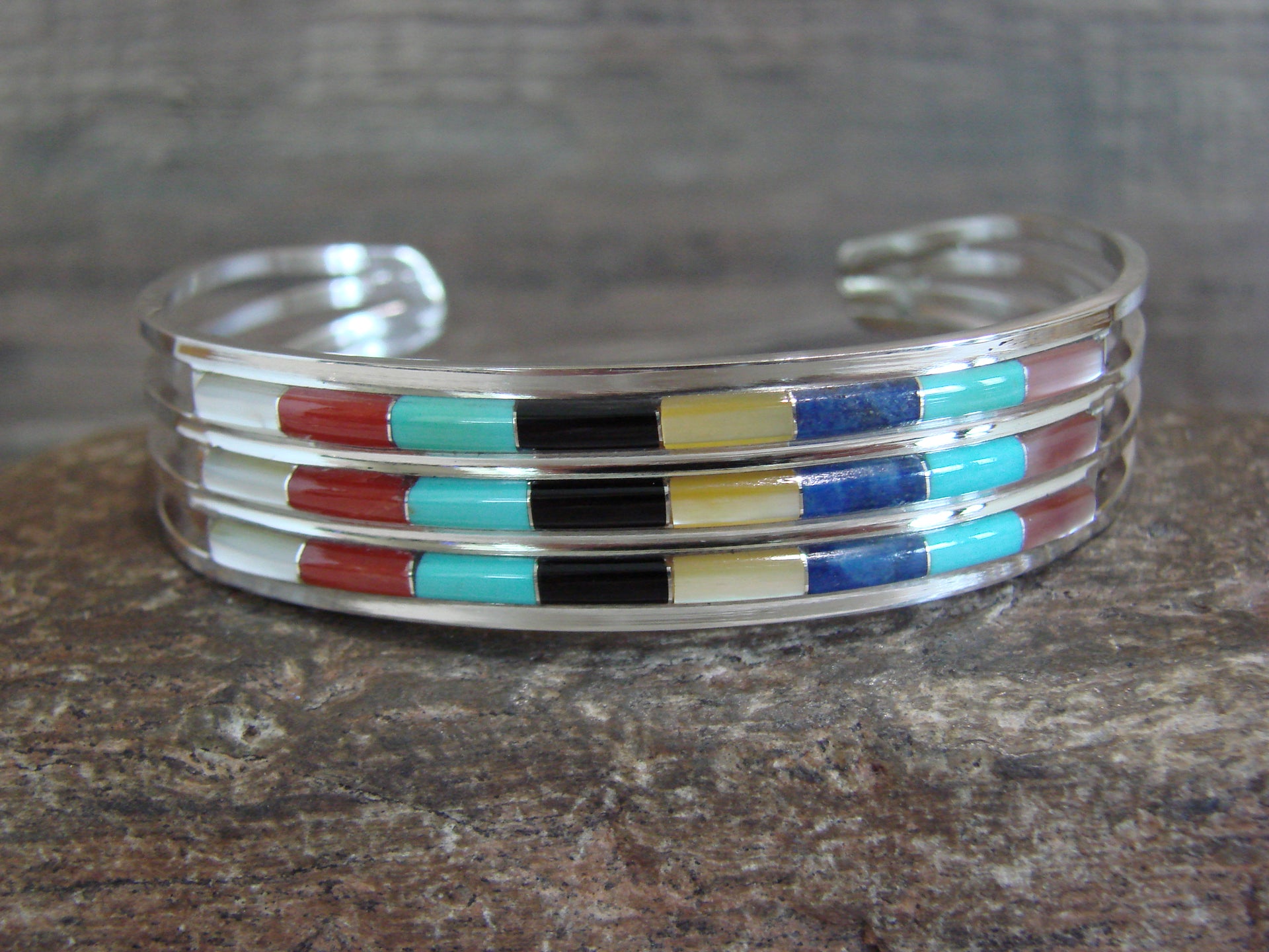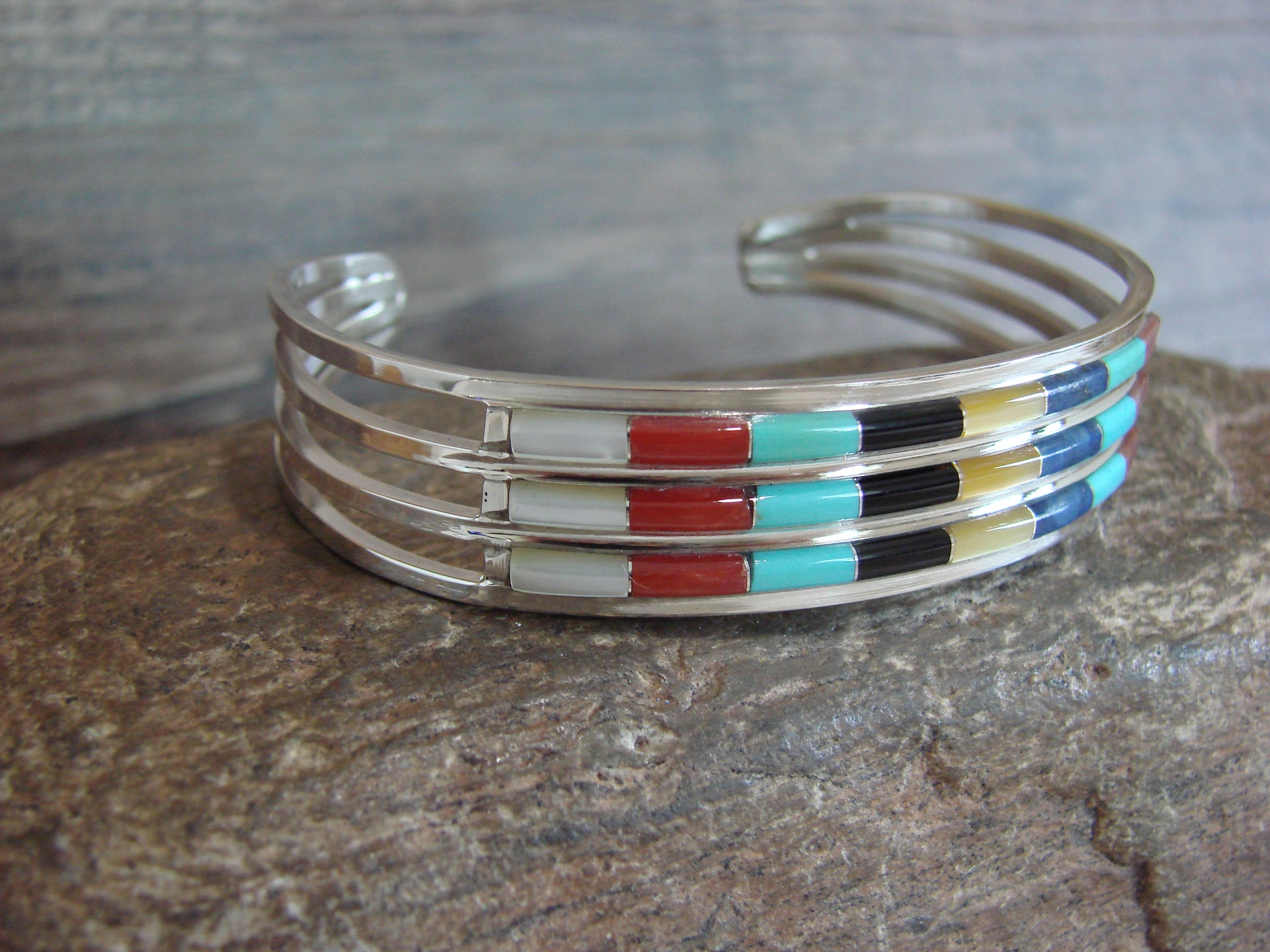 - Native American Sterling Silver Multi Stone Inlay Row Bracelet - Wallace