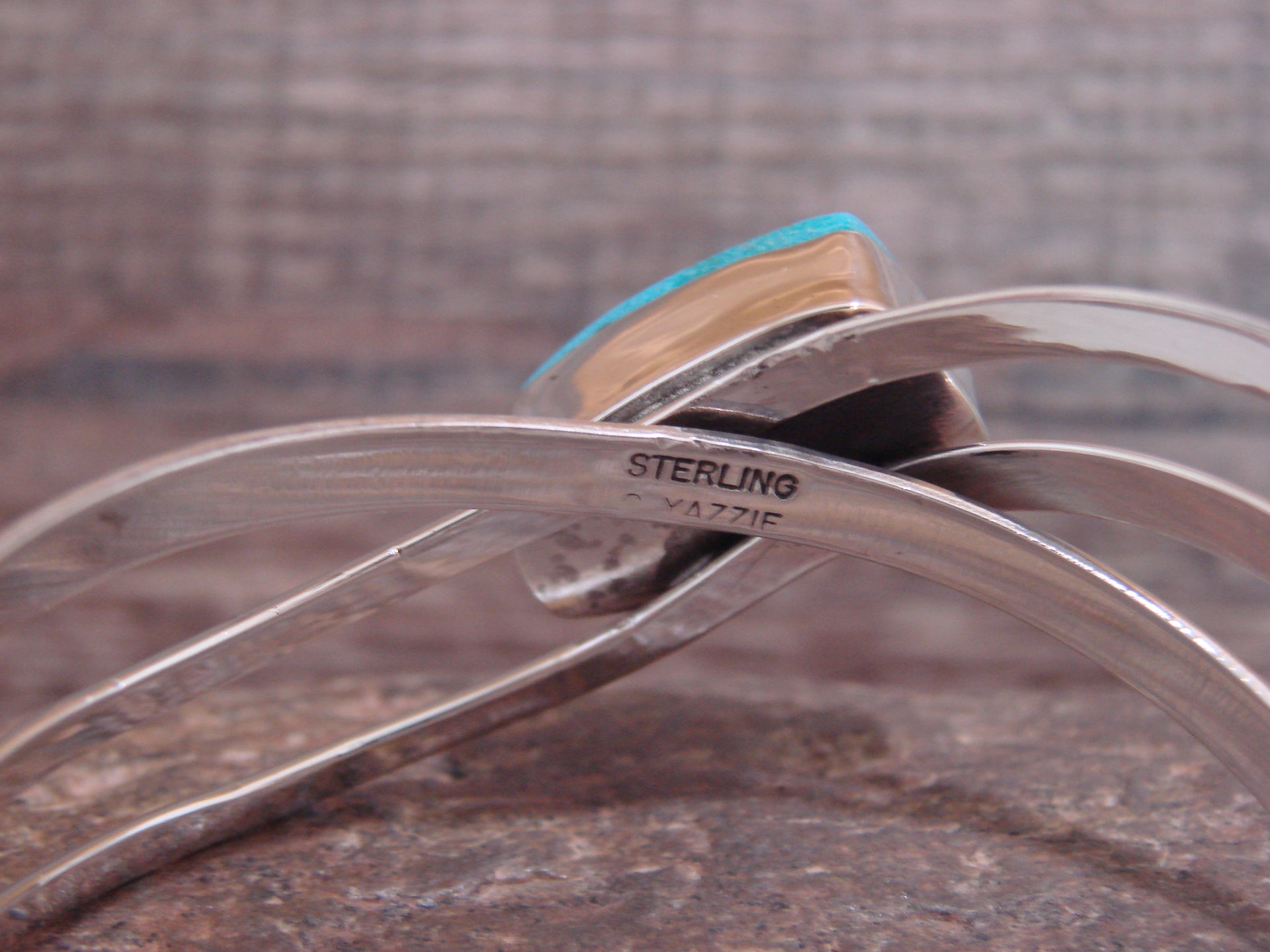 - Native American Sterling Silver & Turquoise Bracelet Signed Yazzie