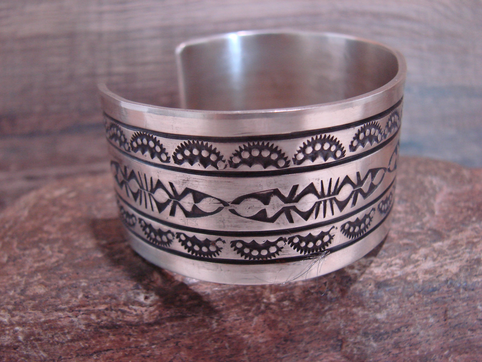 - Navajo Indian Hand Stamped Sterling Silver Cuff Bracelet Signed RE