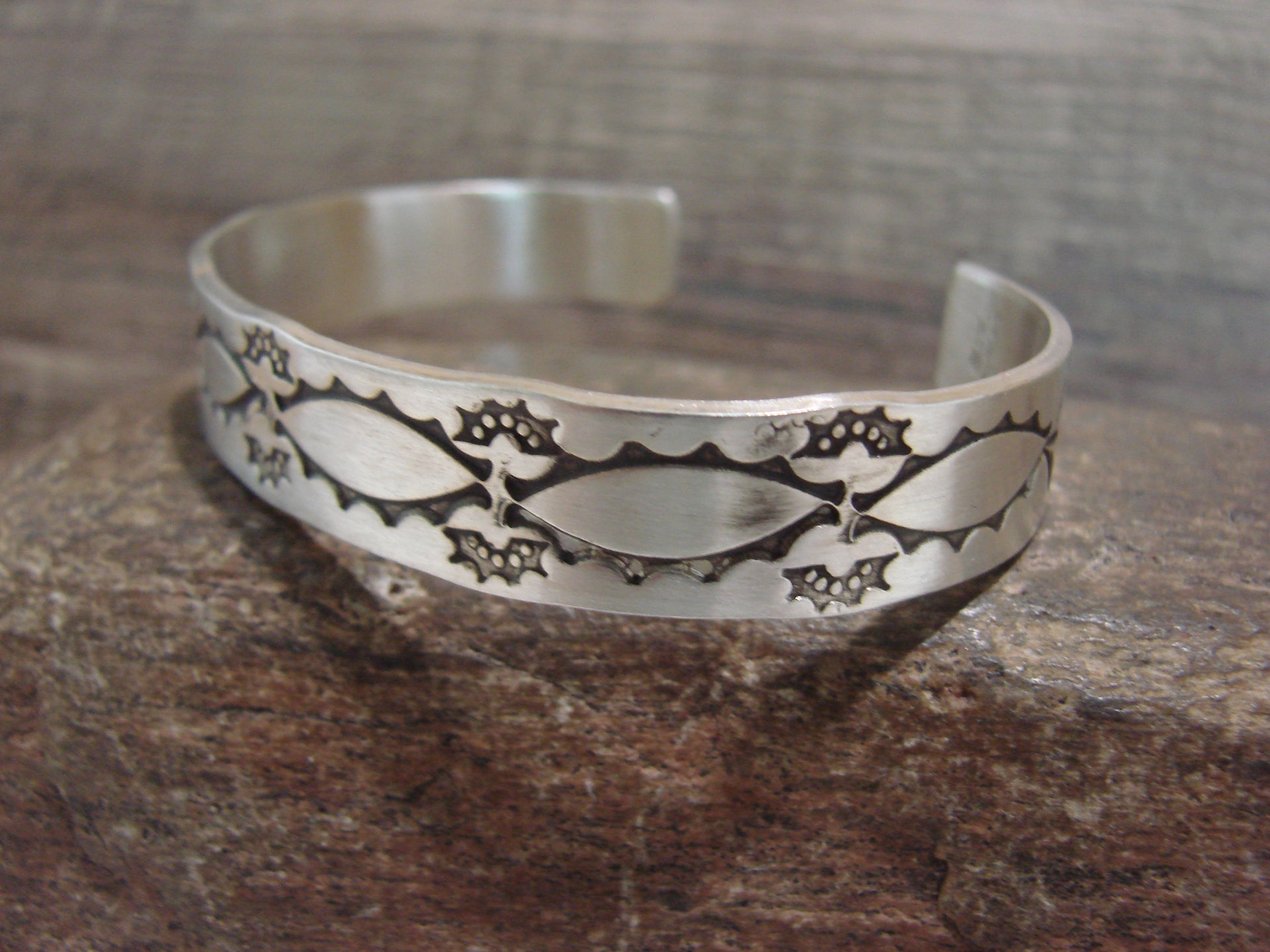 - Navajo Hand Stamped Sterling Silver Bracelet by Sandy Bell