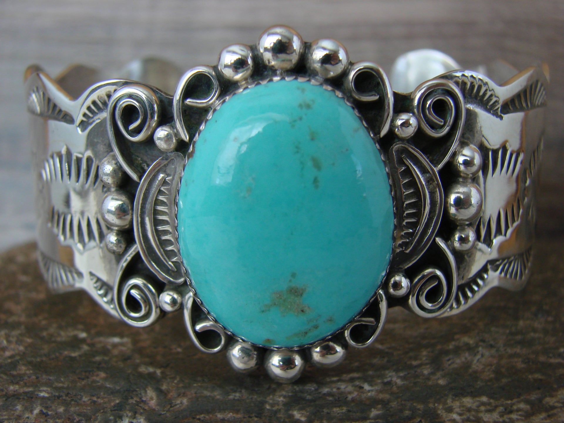 Navajo Indian Sterling Silver & Turquoise Bracelet by Cleveland