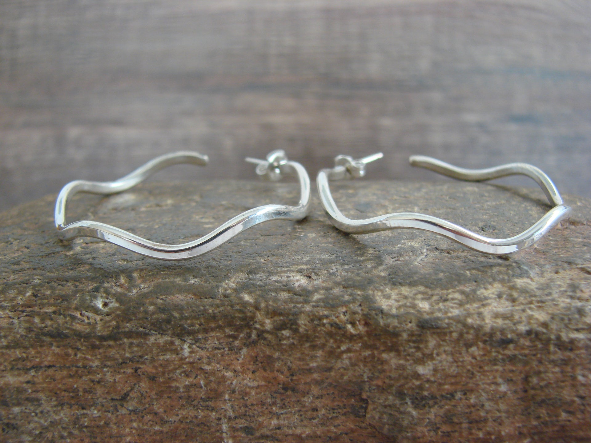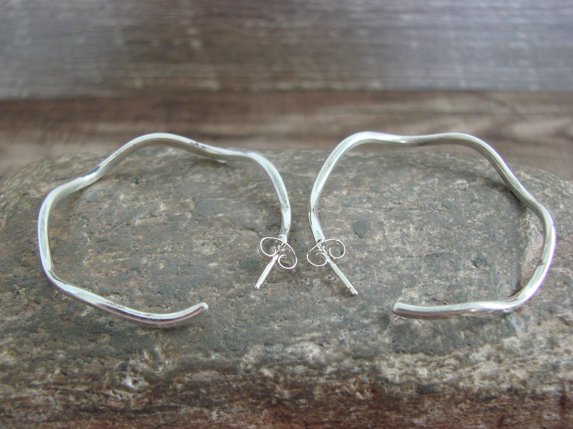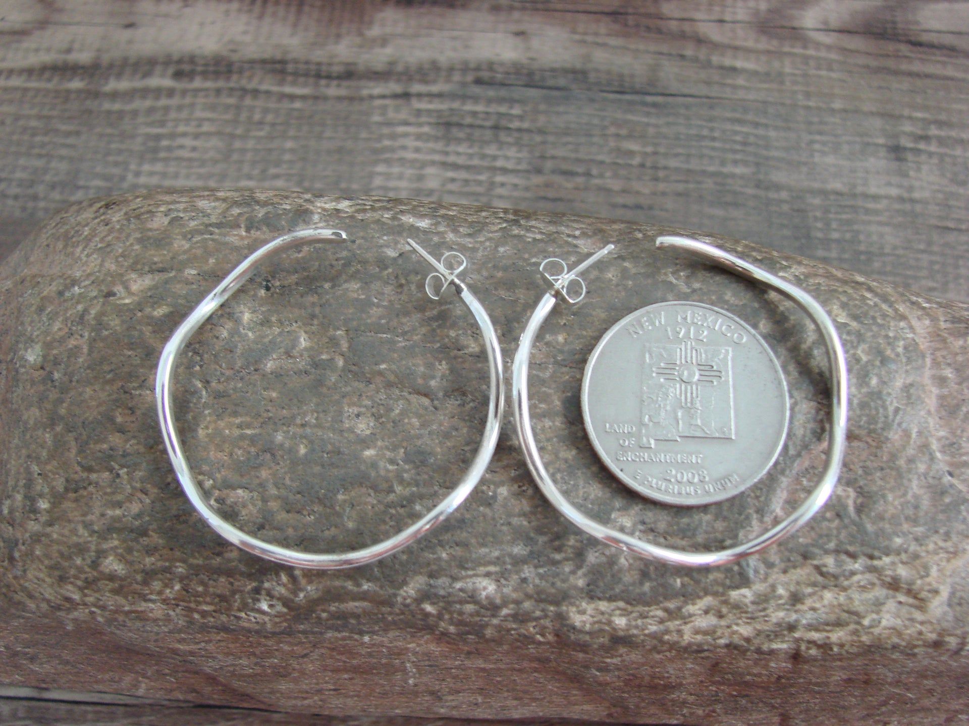 - Native American Indian Sterling Silver 1 1/2" Hoop Earrings by Tahe
