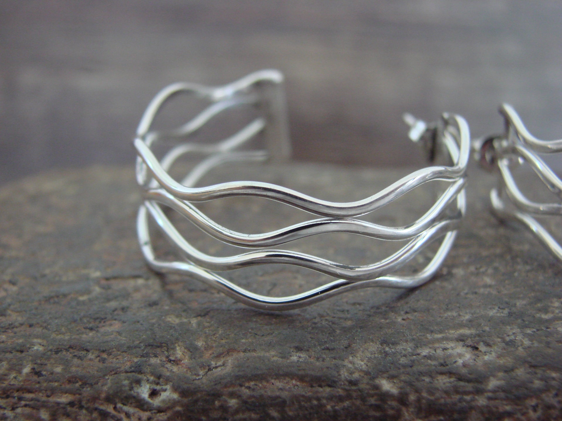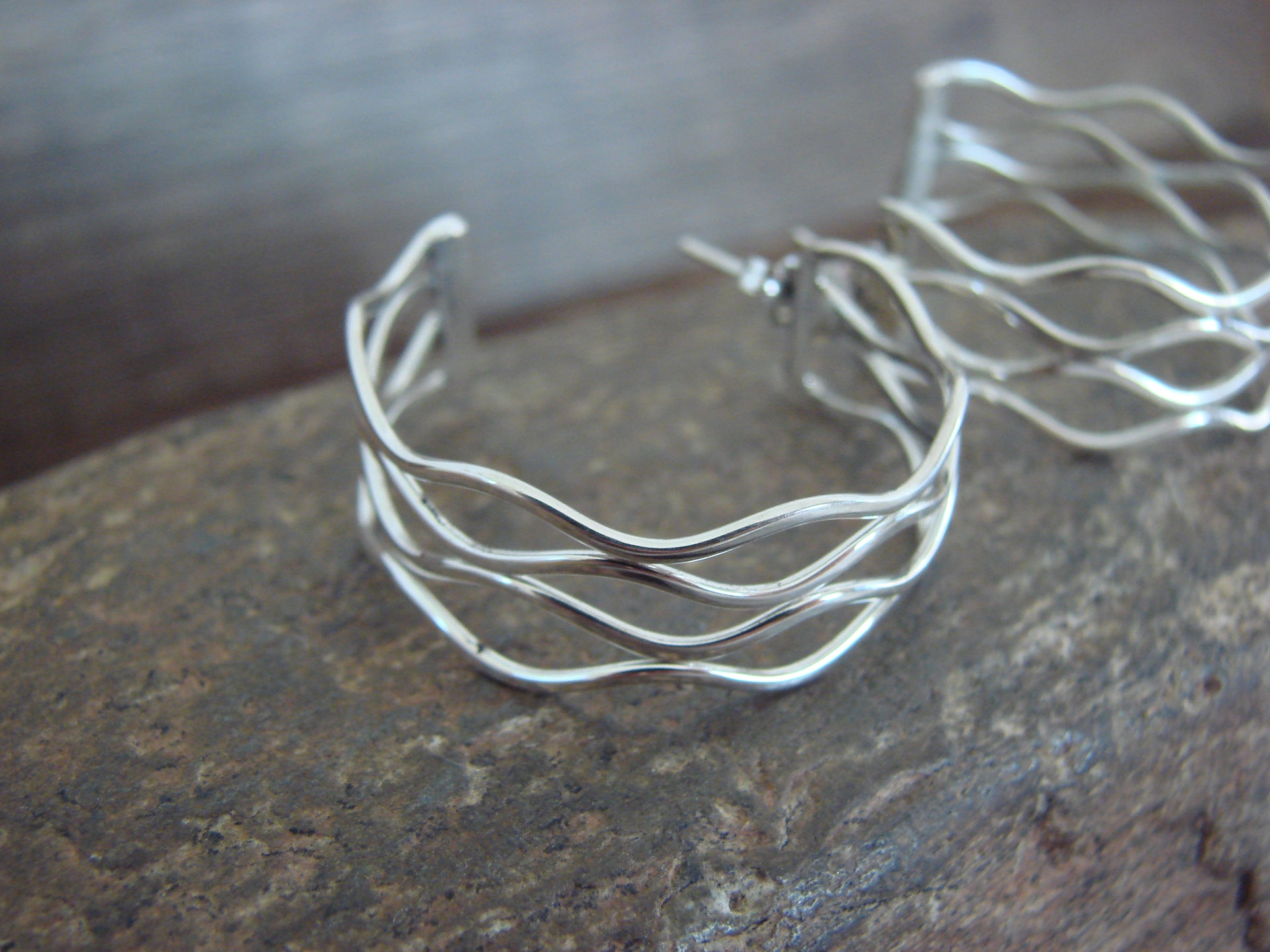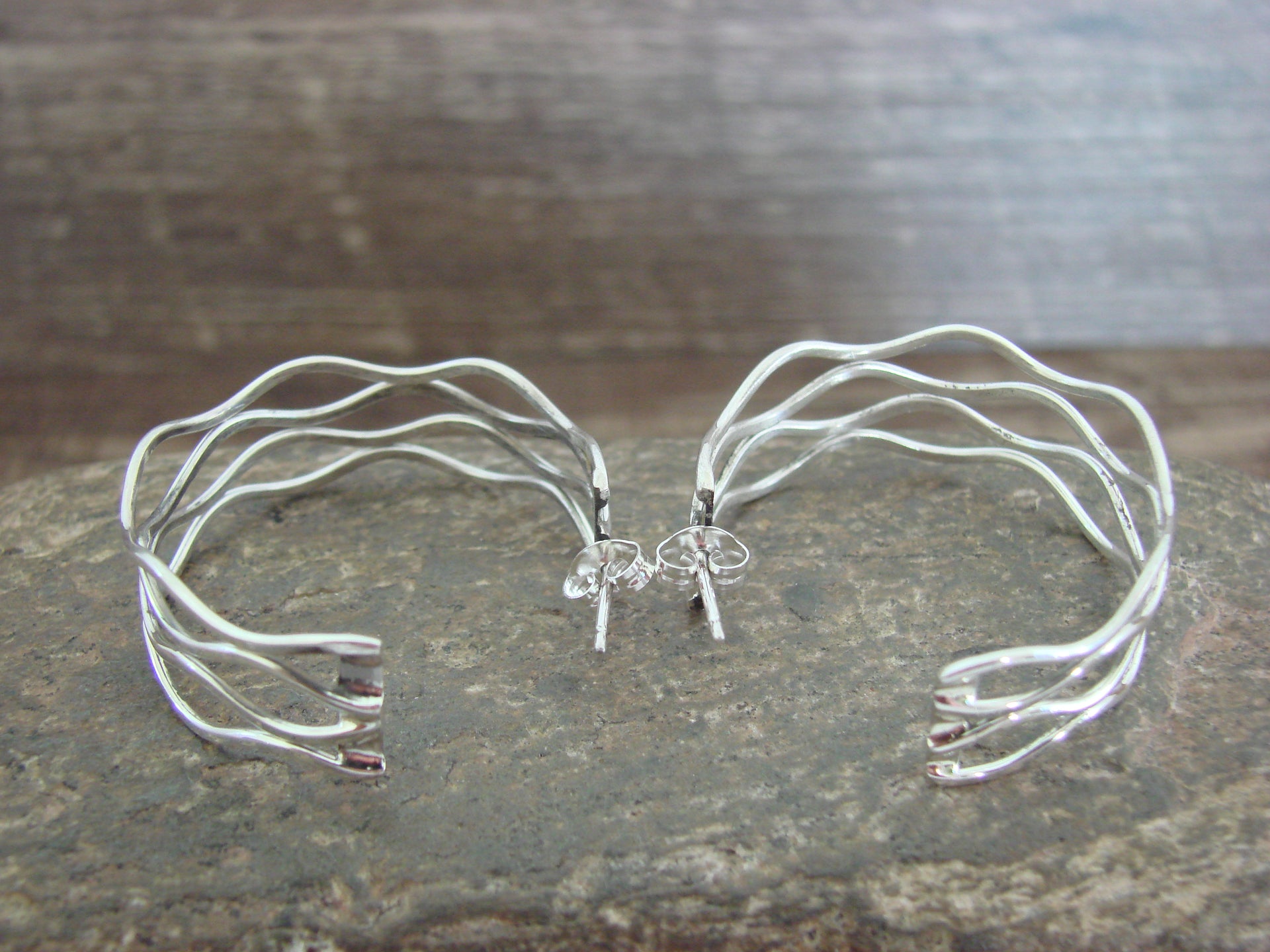 Native American Navajo Indian Sterling Silver Hoop Post Earrings from Western New Mexico. These post earrings feature beautiful details in sterling silver throughout. Handmade by Navajo artist Elaine Tahe. Unsigned. Free shipping with a gift box included!