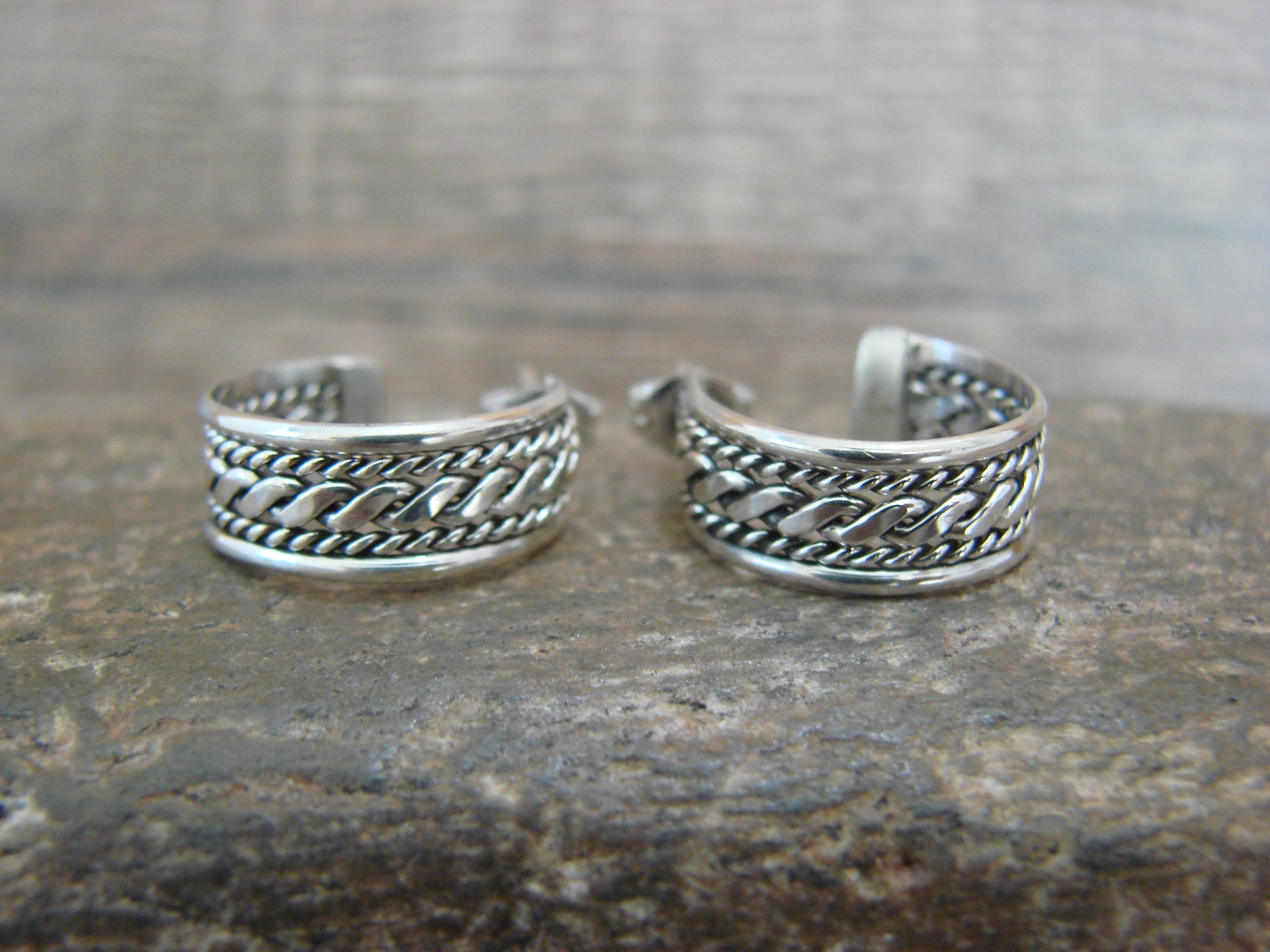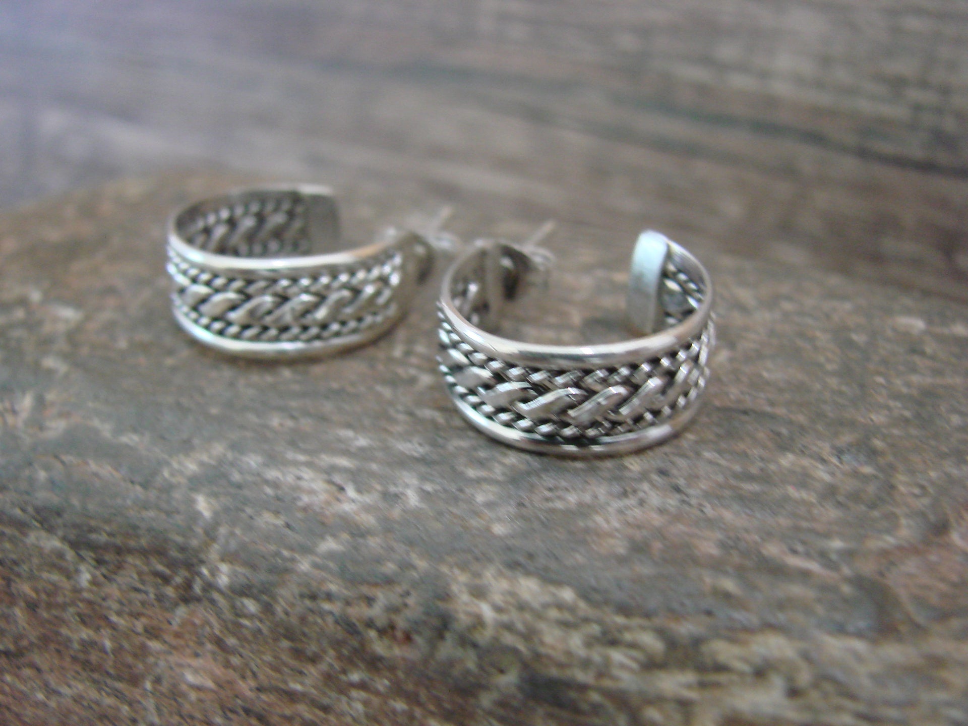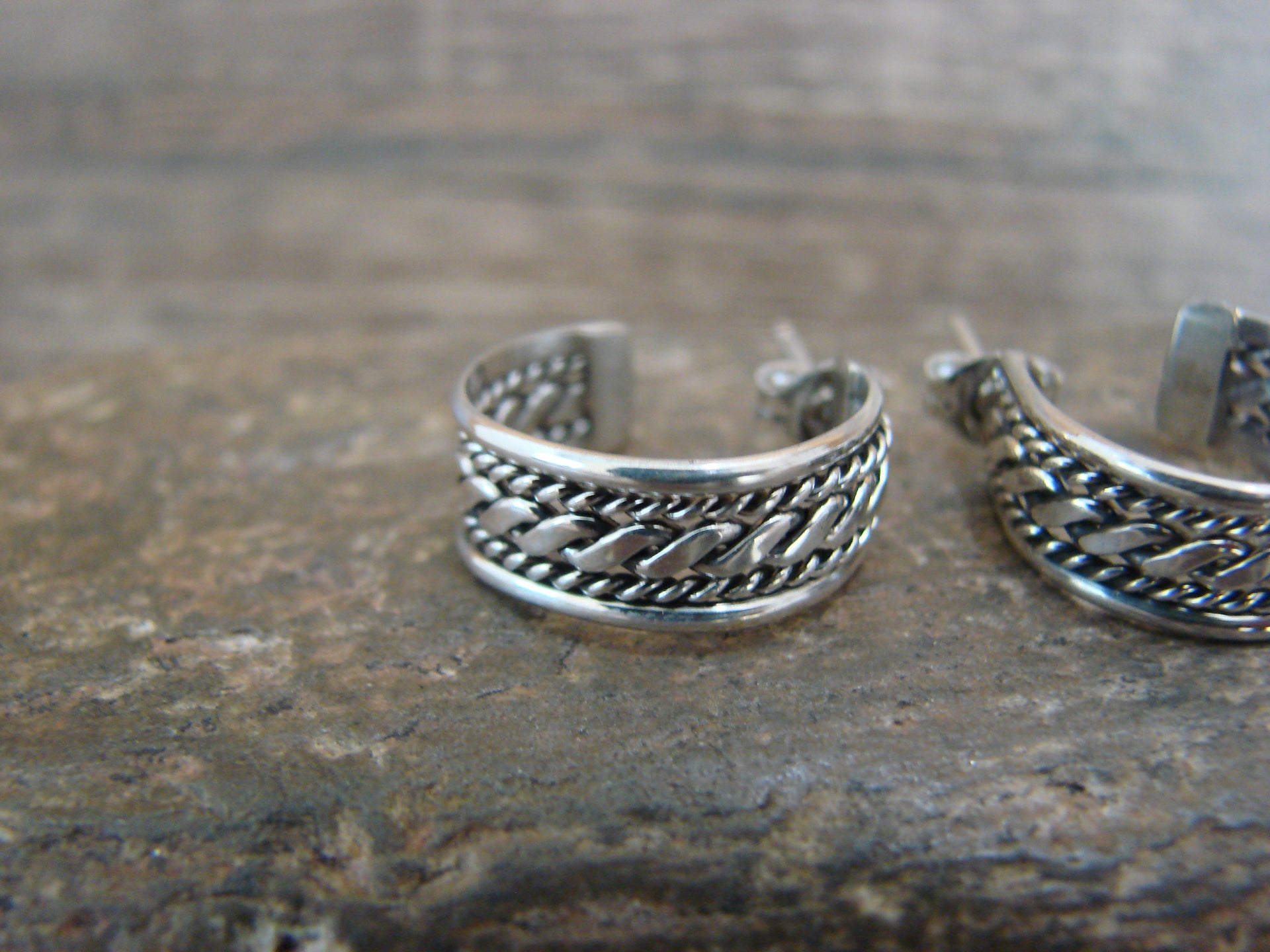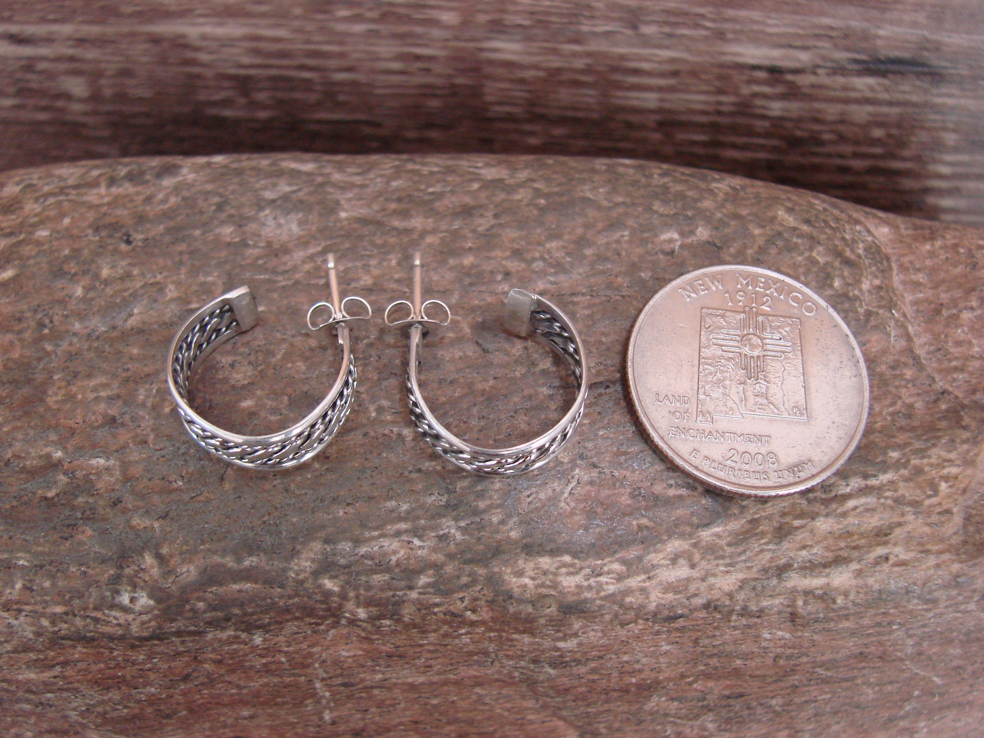- Navajo Indian Sterling Silver 5/8" Twisted Hoop Earrings by Tahe
