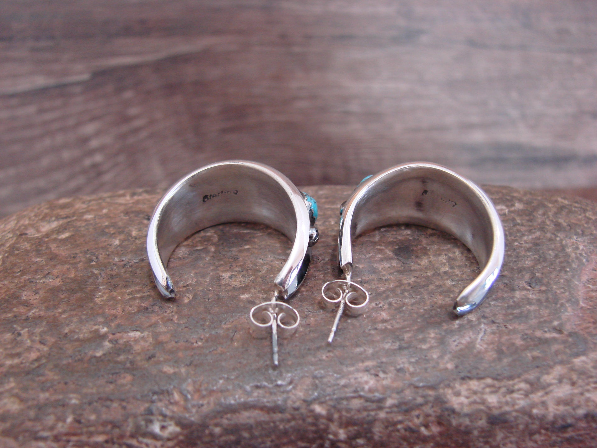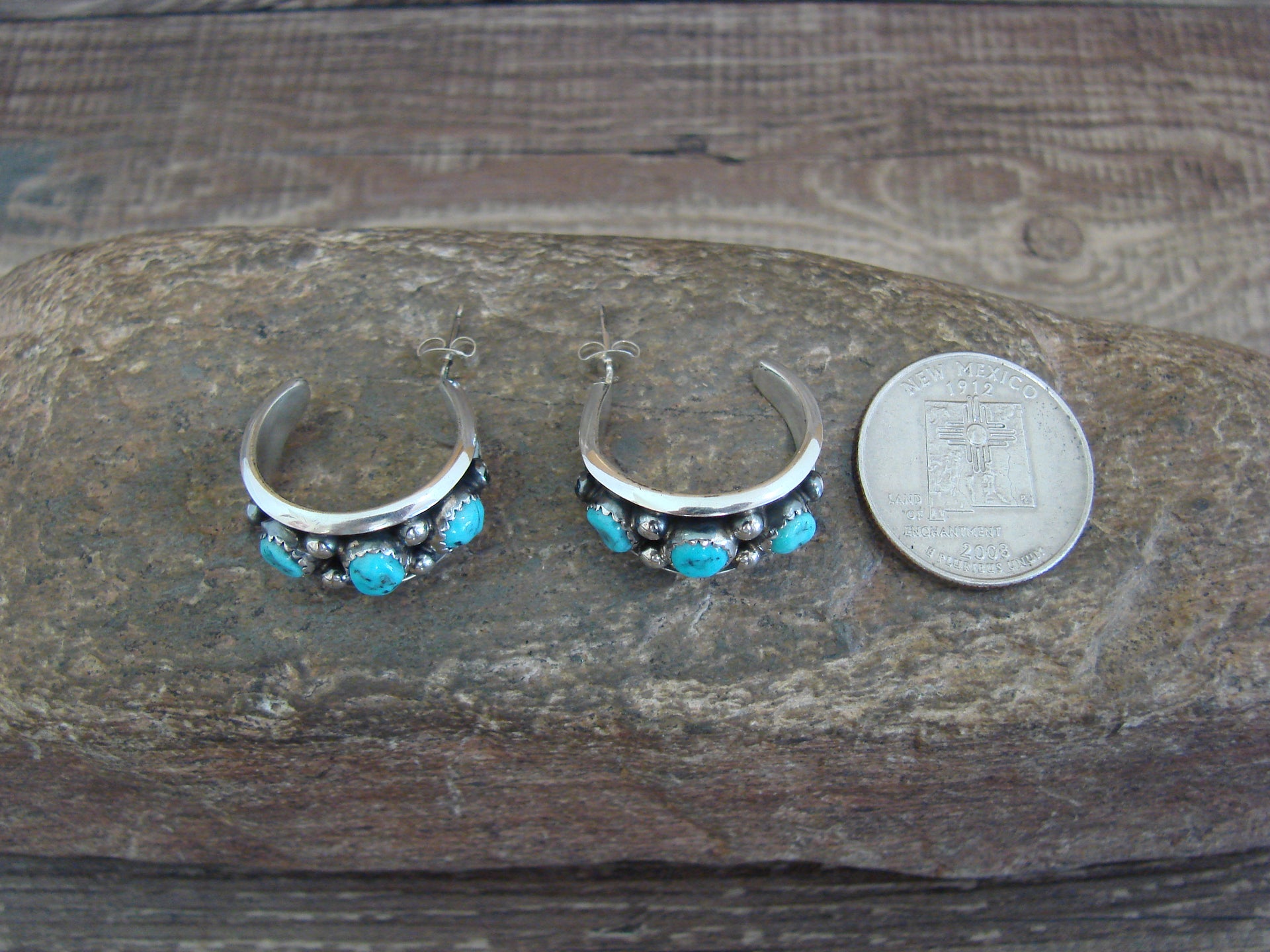 - Native American Indian Sterling Silver & Turquoise 3/4" Hoop Earrings - Largo
