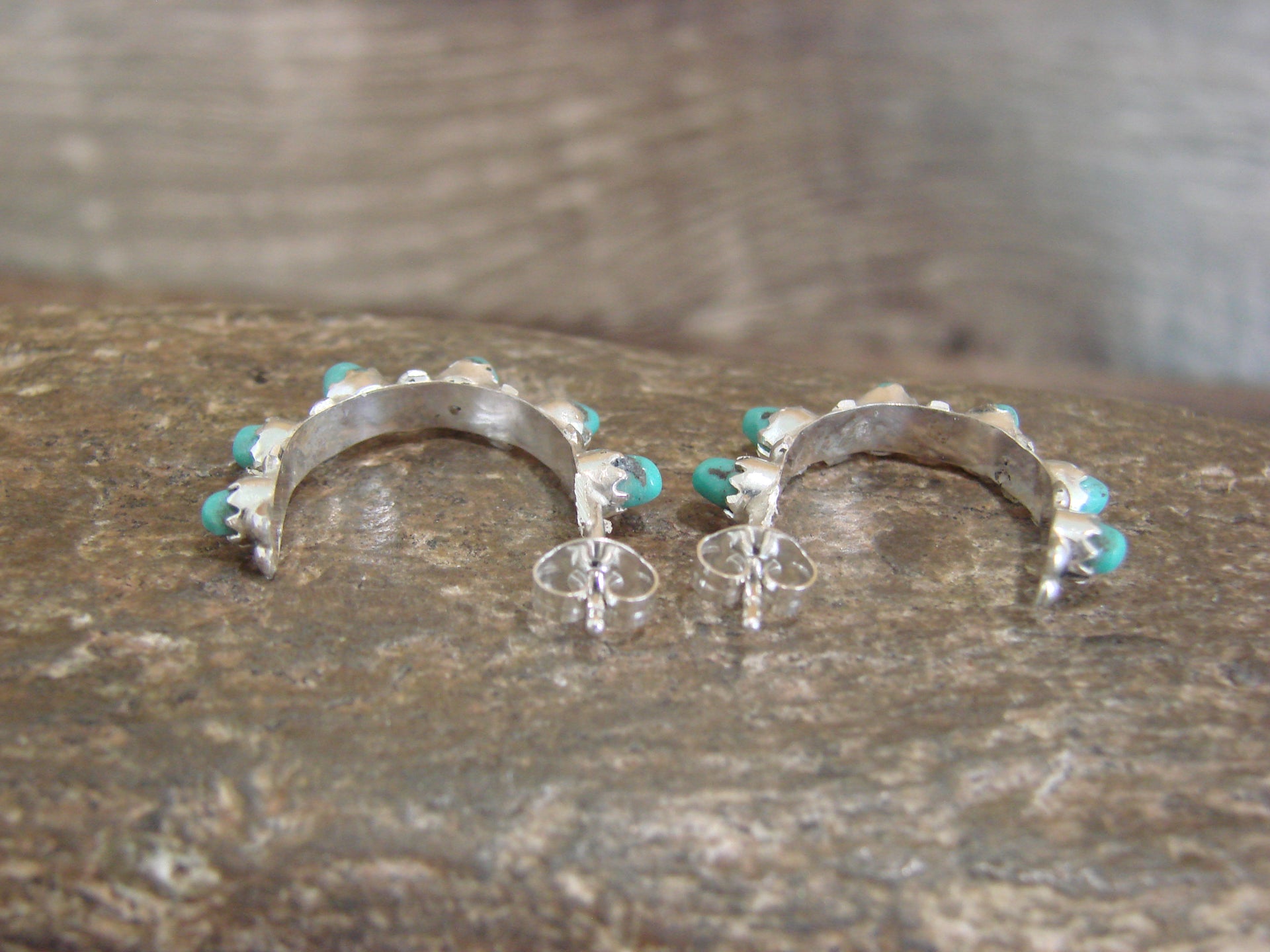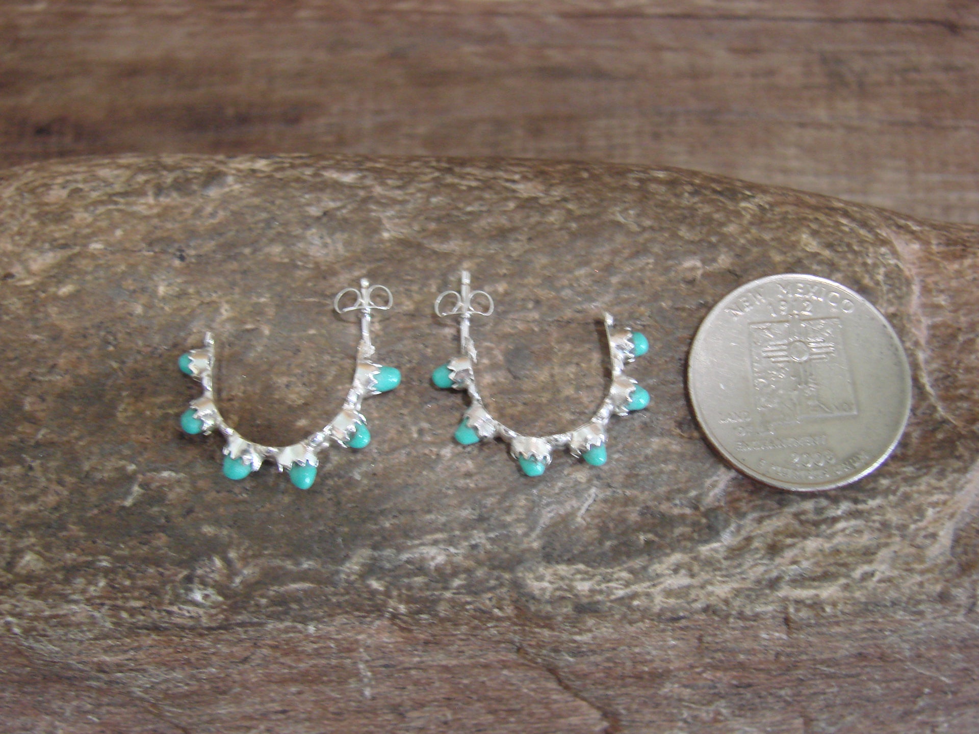 - Native American Sterling Silver & Turquoise Half Hoop Earrings by Waseta