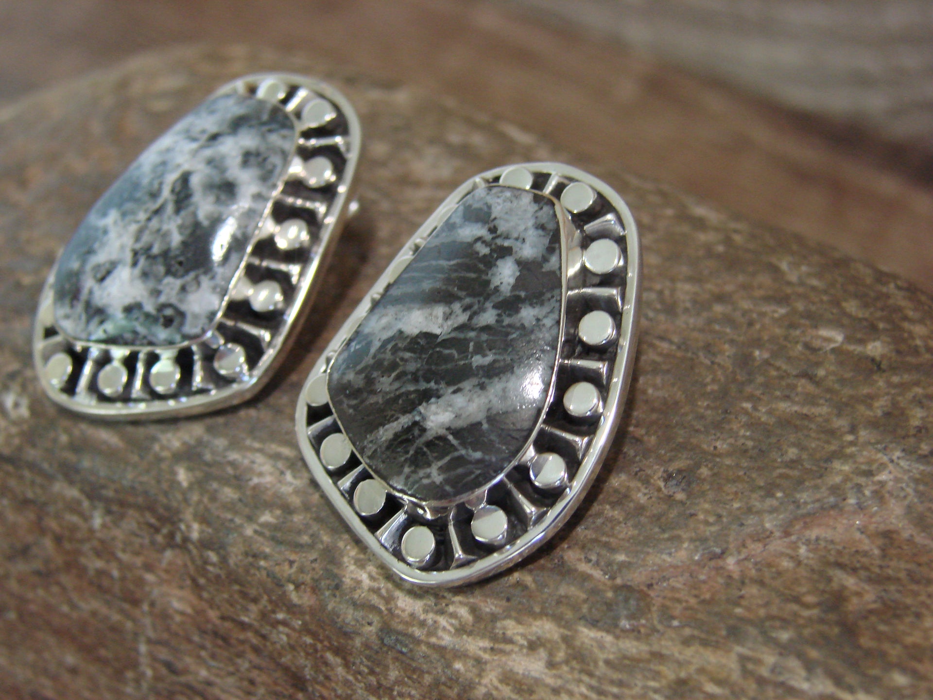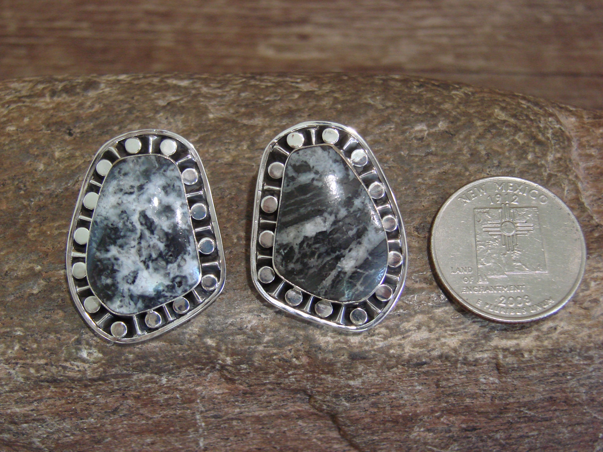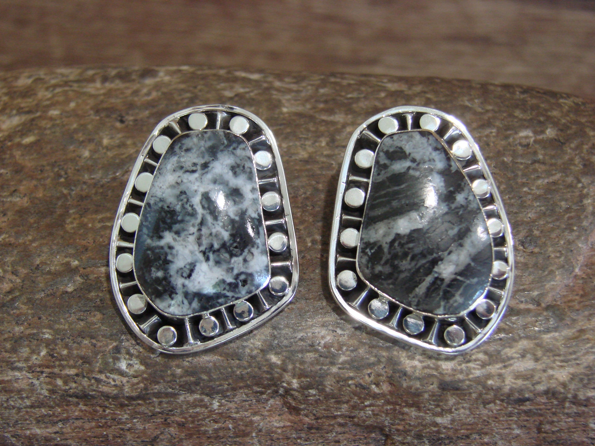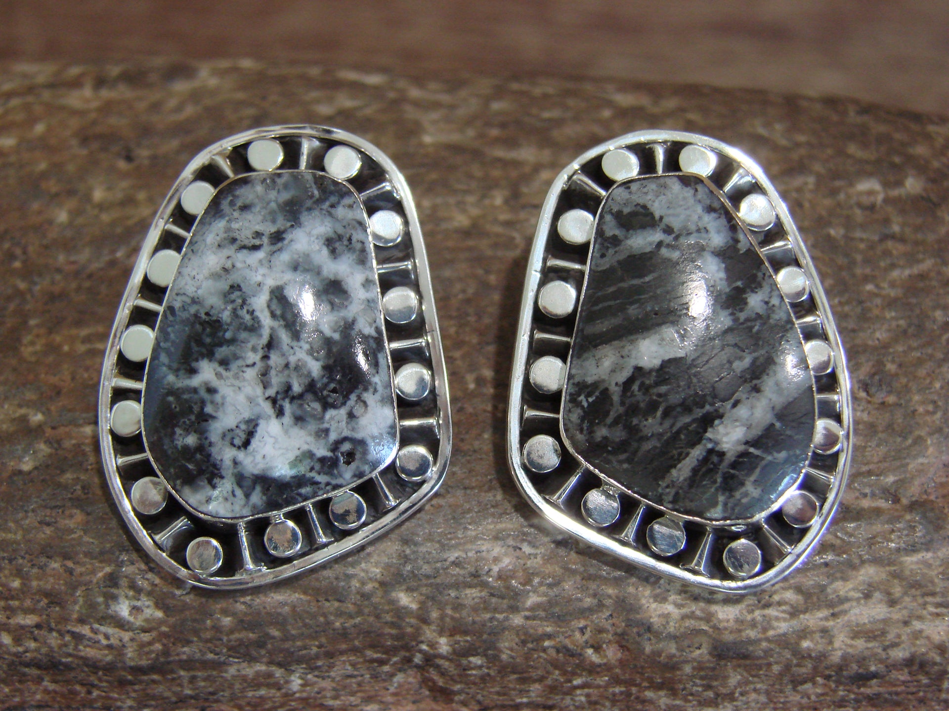 Native American Sterling Silver & White Buffalo Turquoise Post Earrings - McCarthy