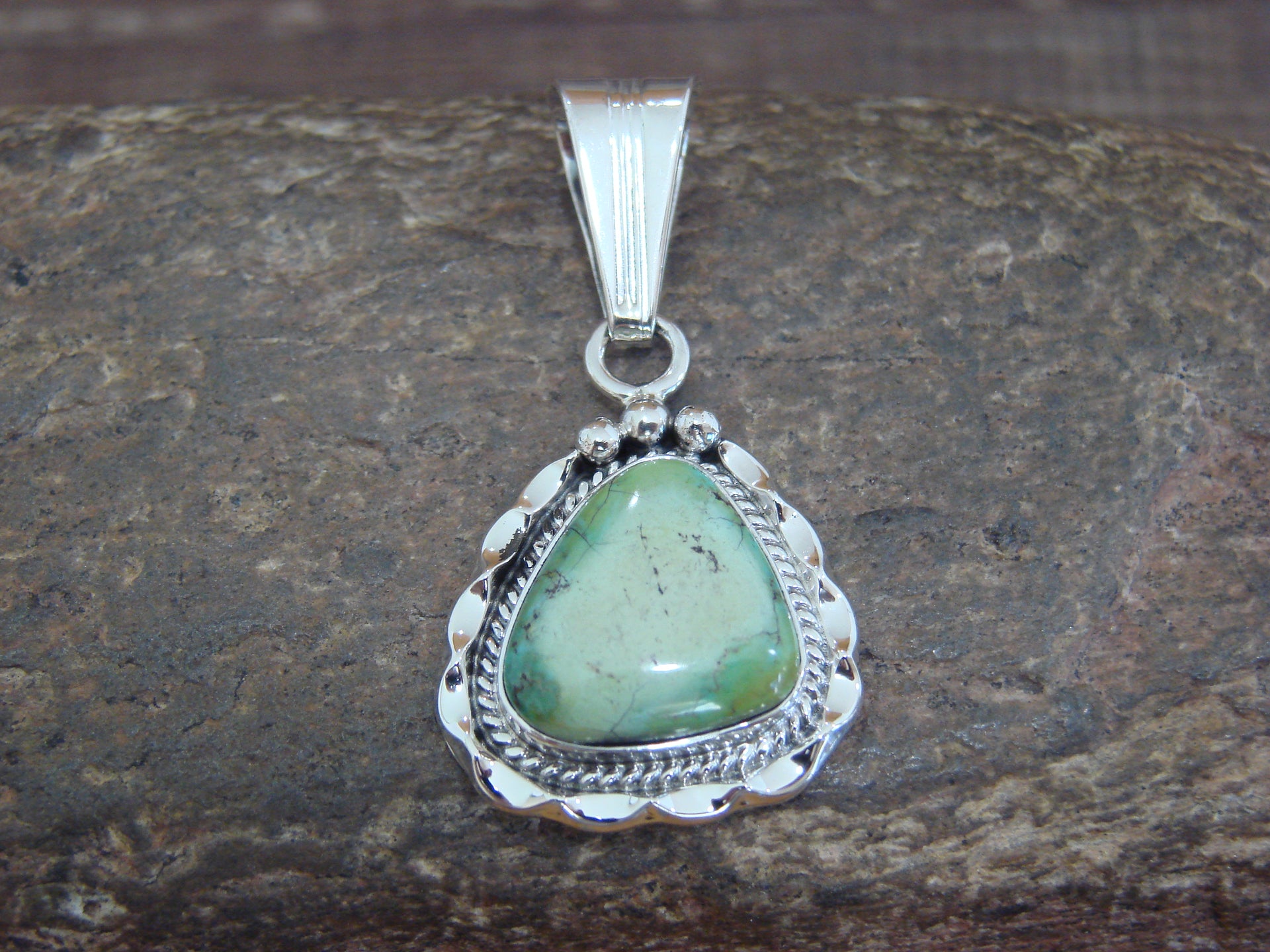 Native American Sterling Silver & Sonoran Turquoise Pendant by Yellowhair