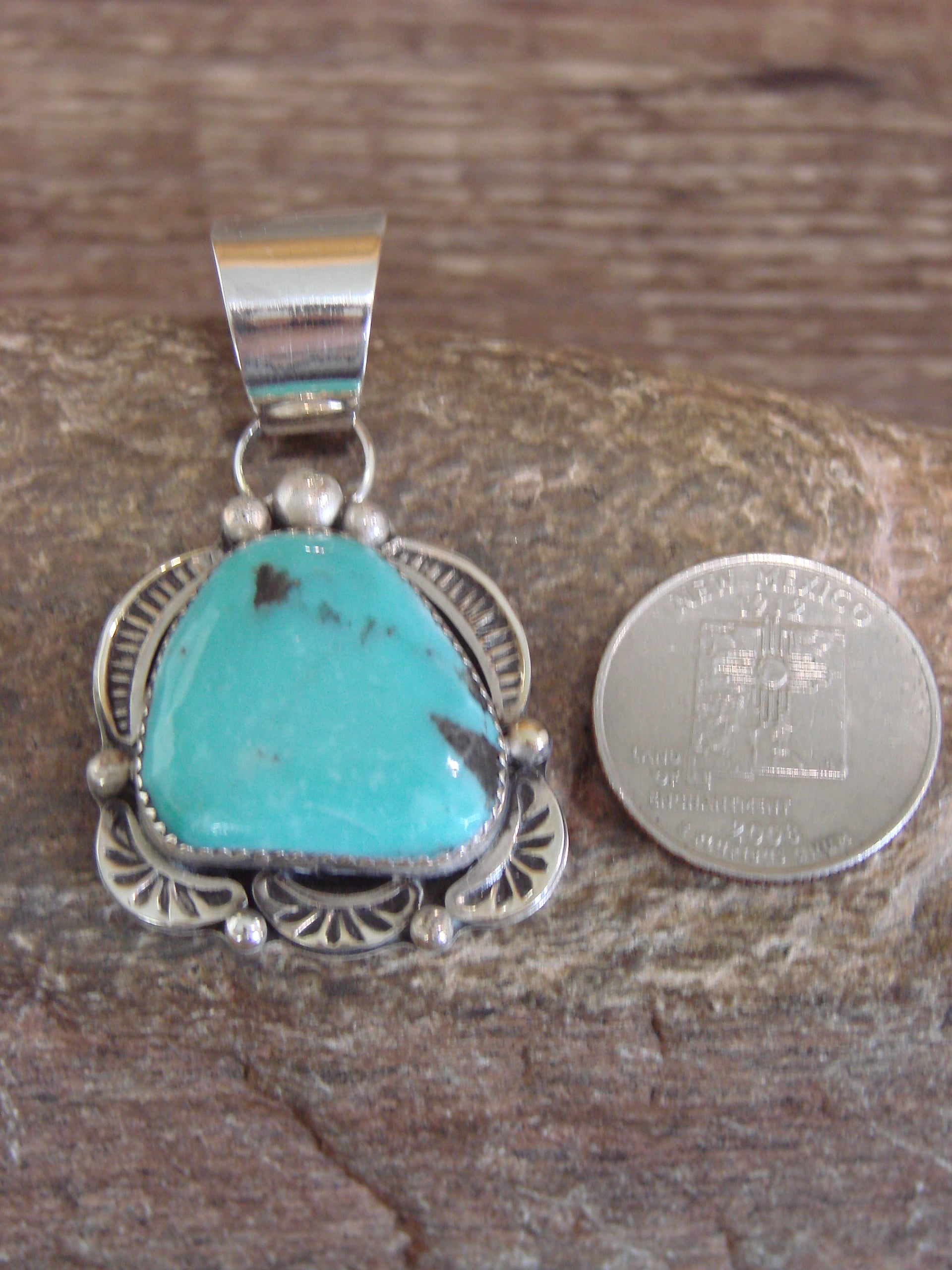 Native American Sterling Silver & Turquoise Pendant - Cleveland