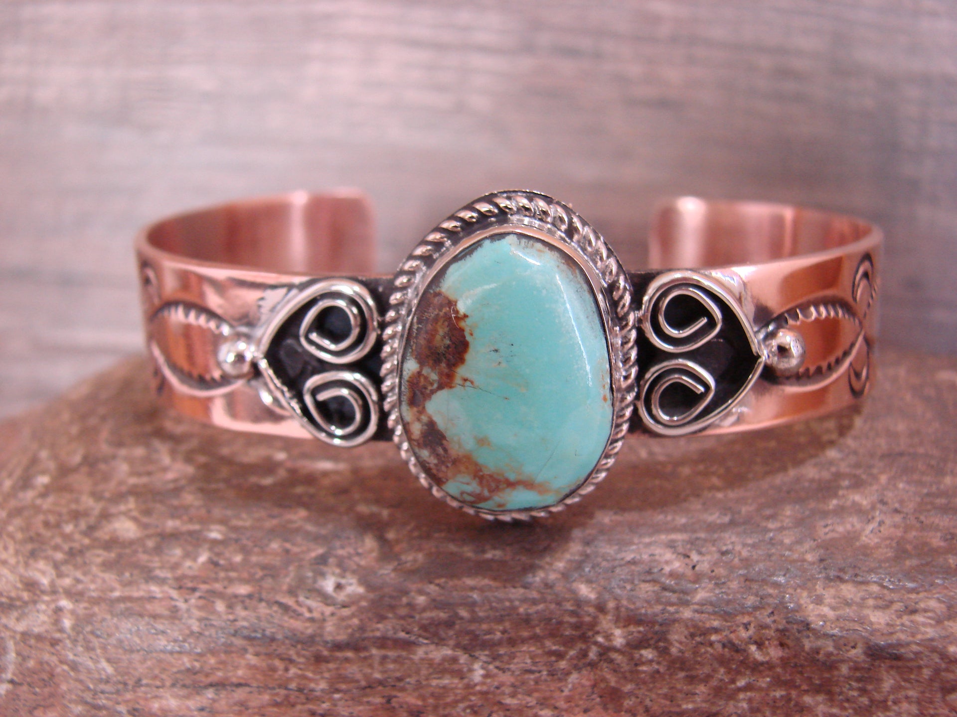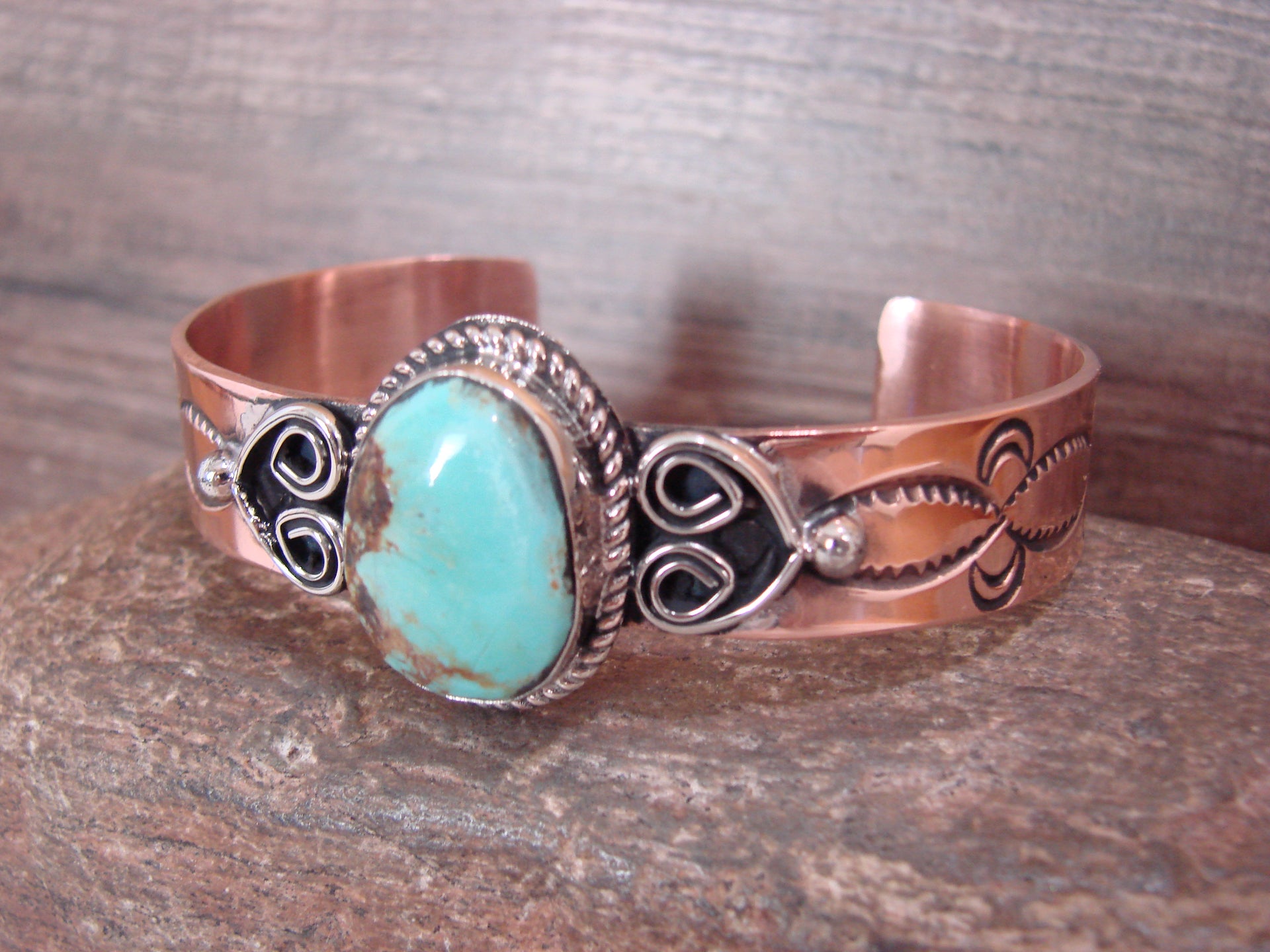 Native American Copper & Turquoise Bracelet by Cleveland