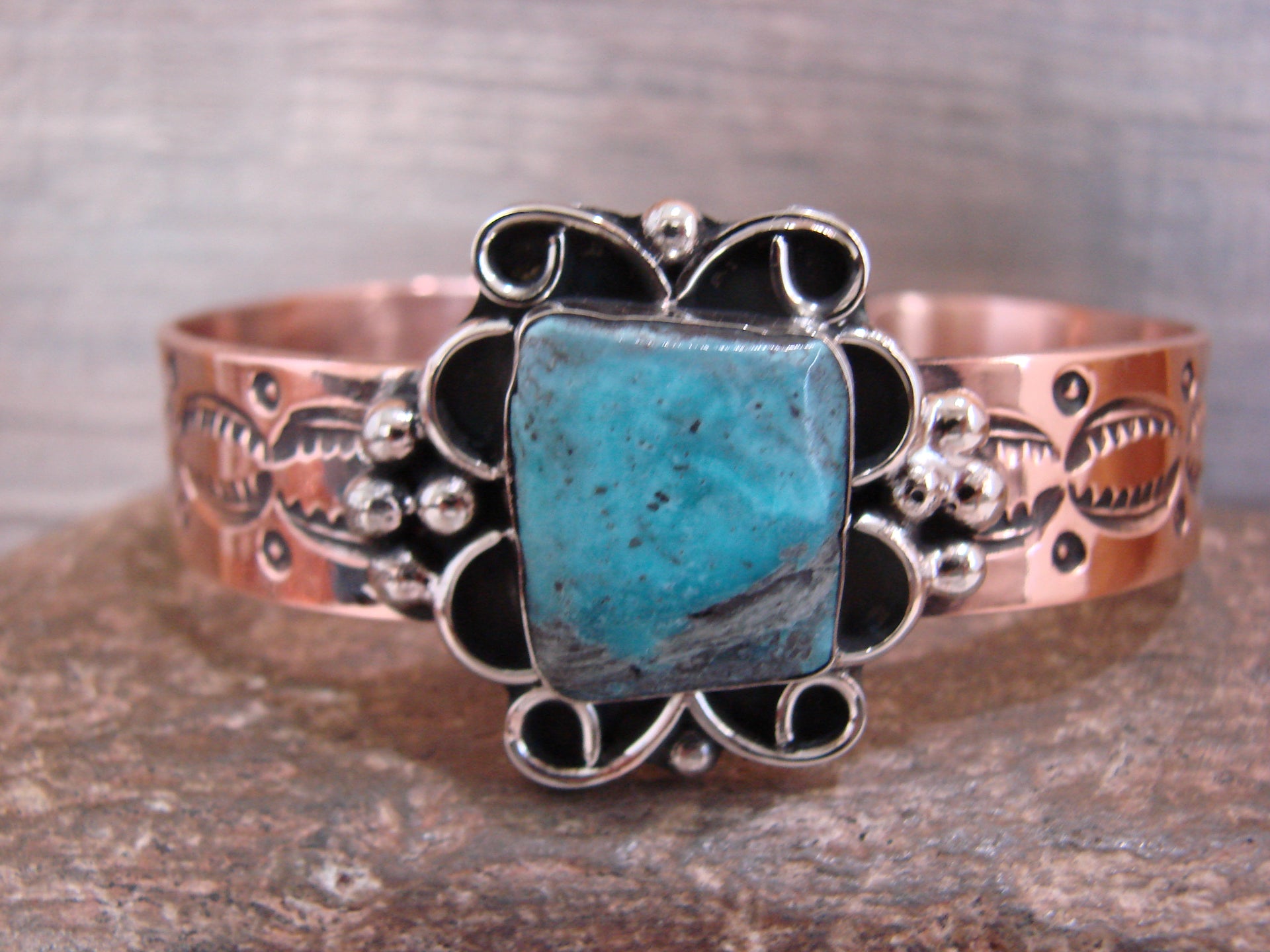 Native American Copper & Turquoise Bracelet by Cleveland