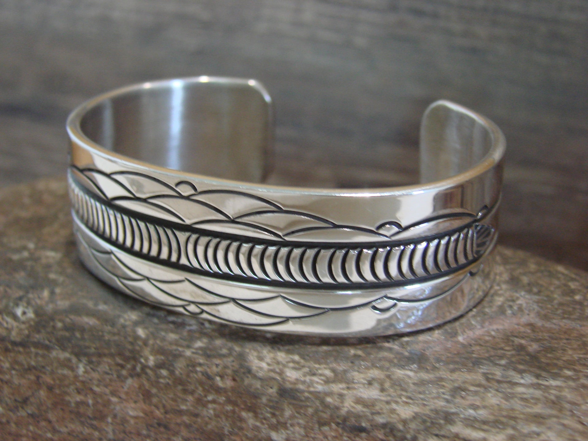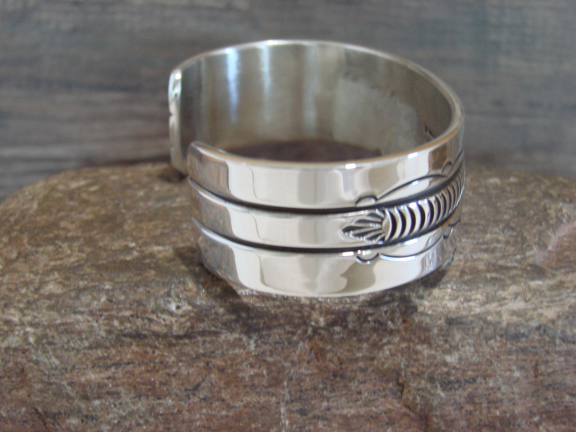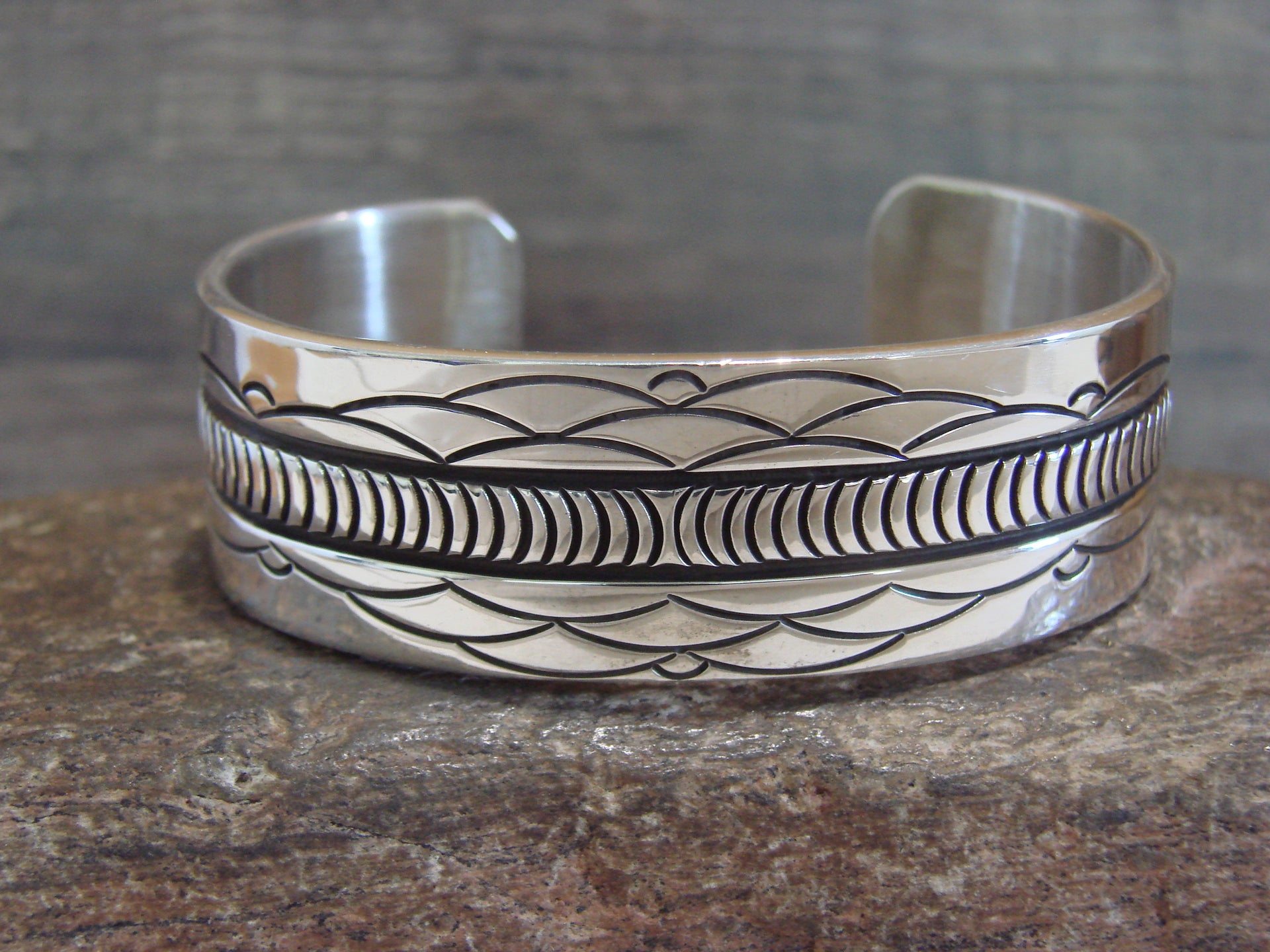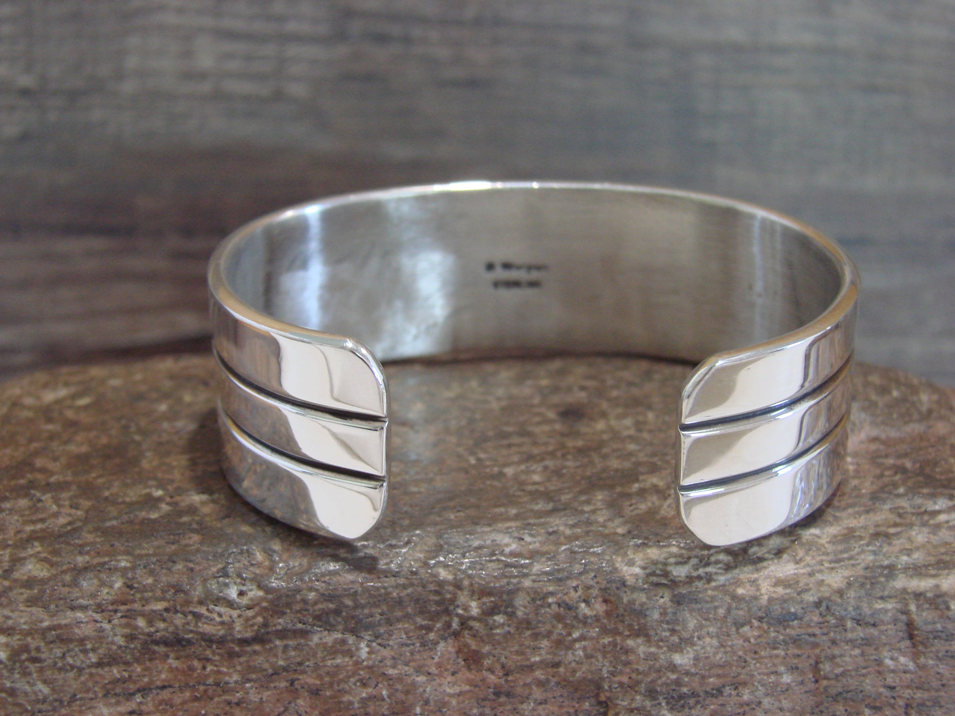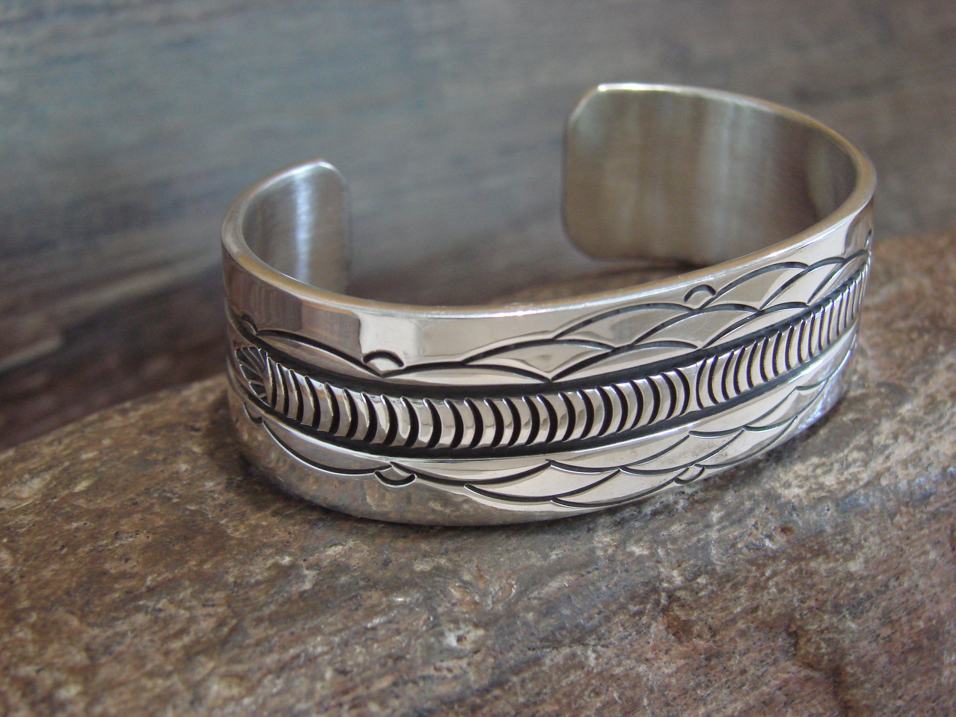 Native American Indian Hand Stamped Sterling Silver Bracelet Signed B Morgan