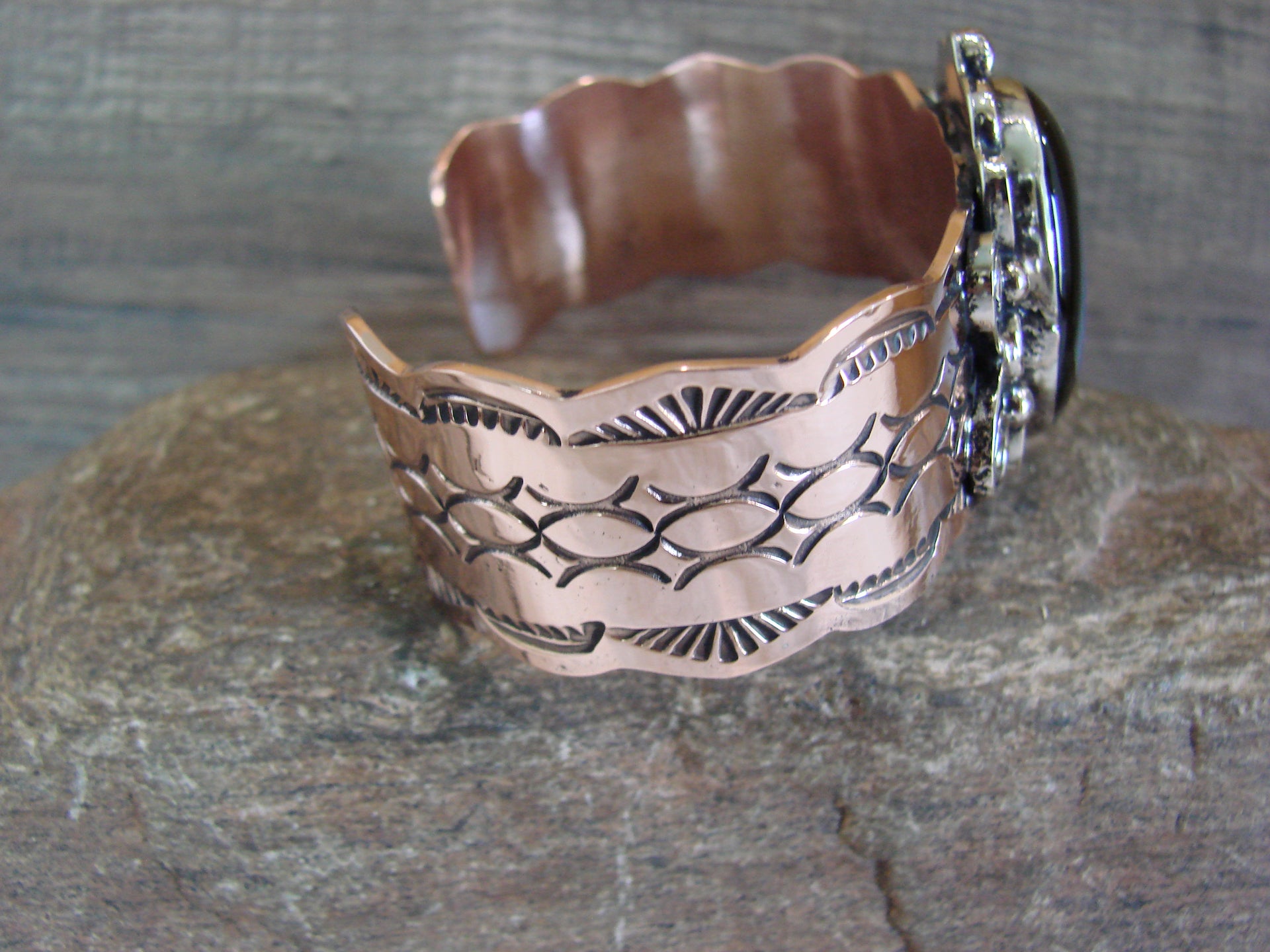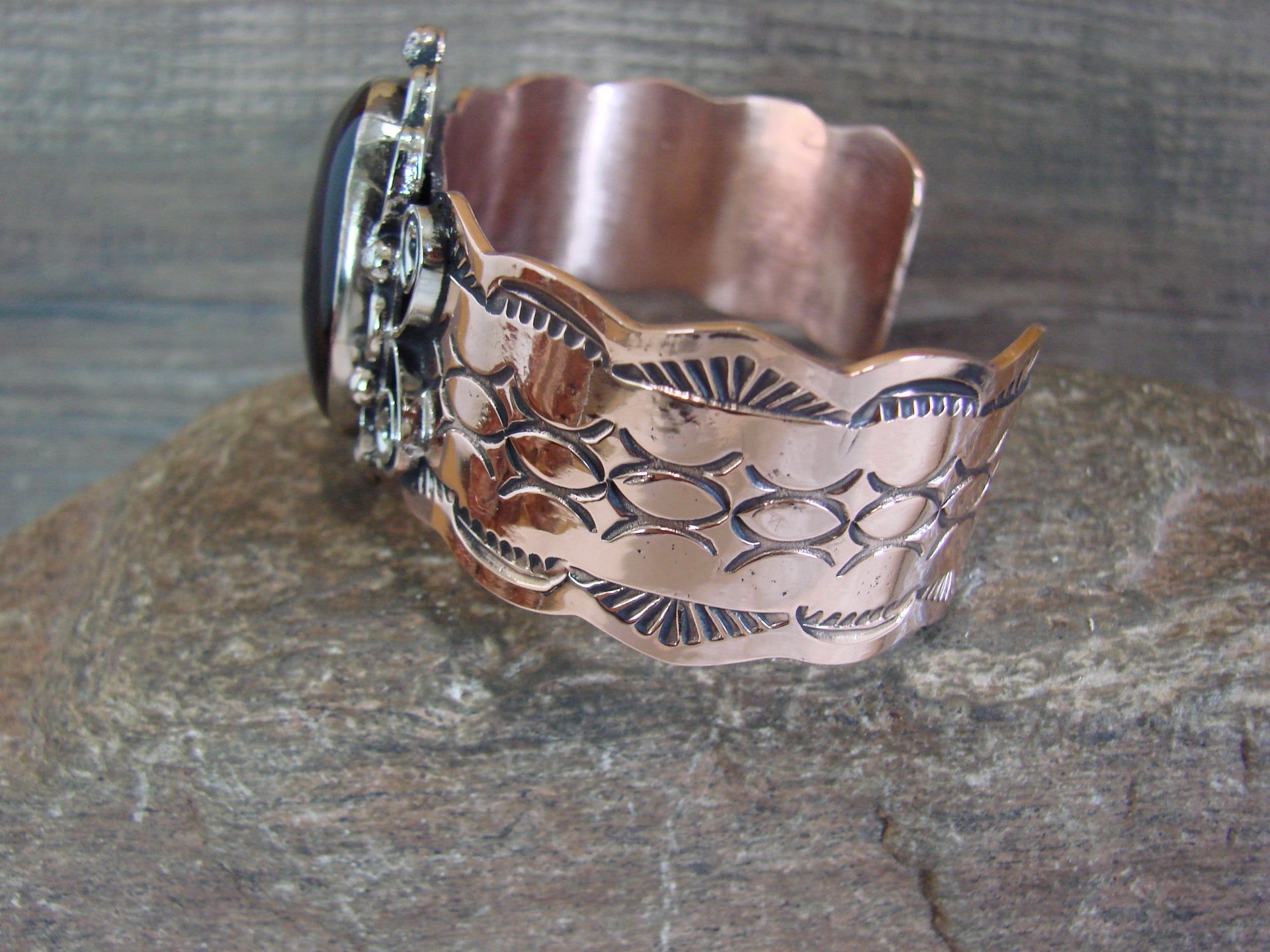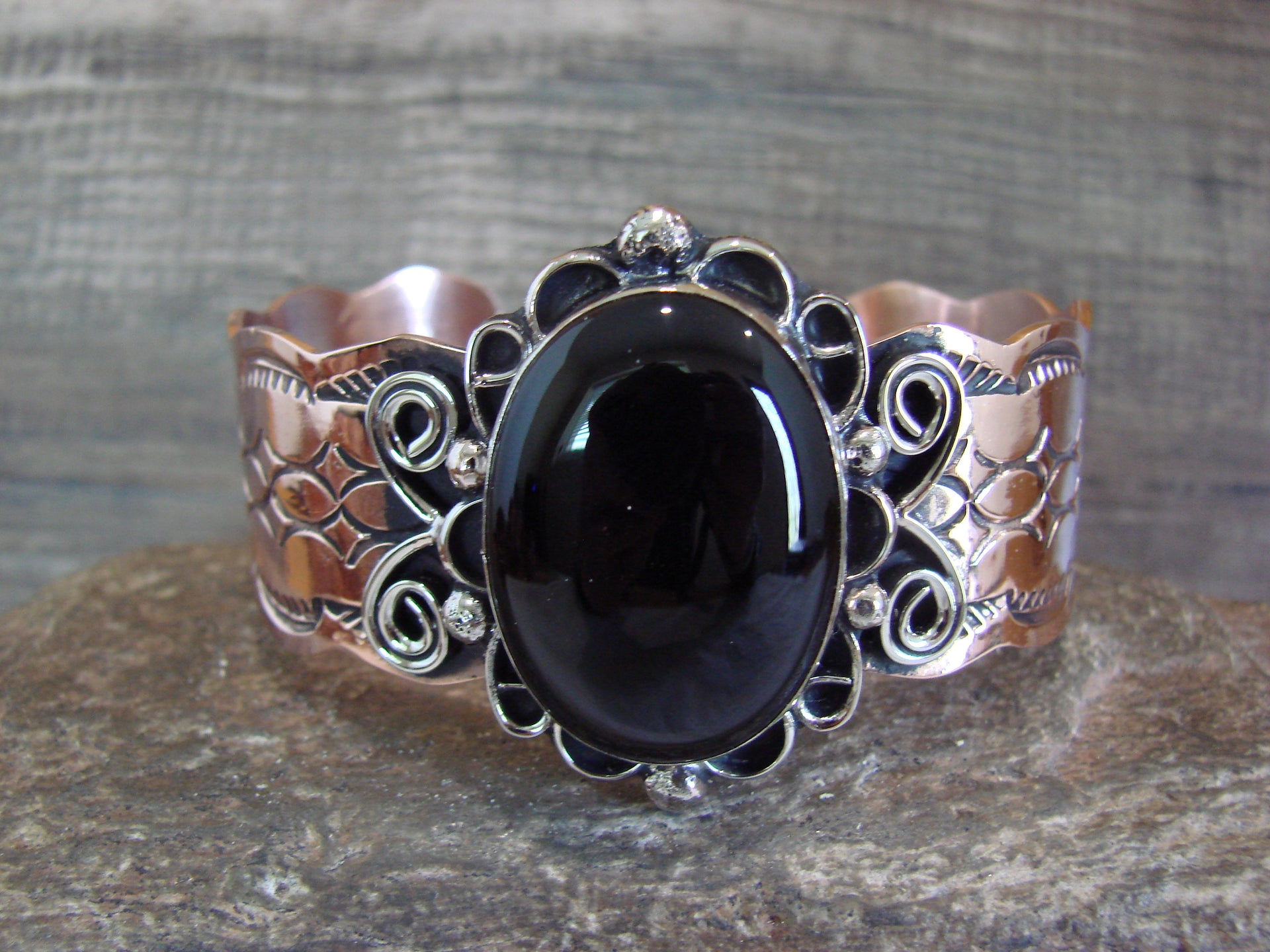 Navajo Indian Copper & Onyx Bracelet by Cleveland