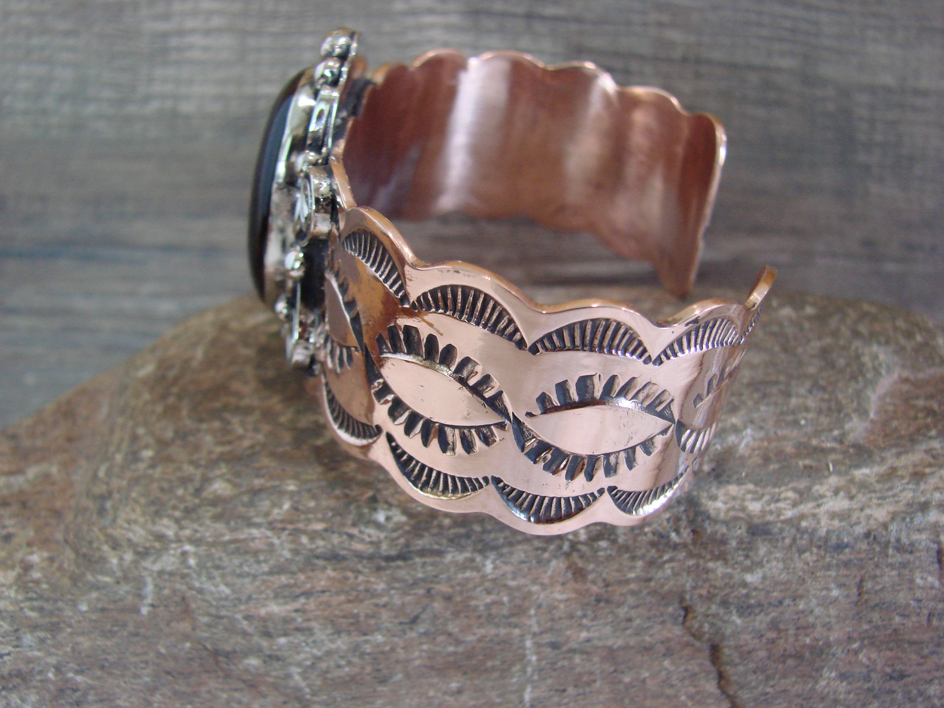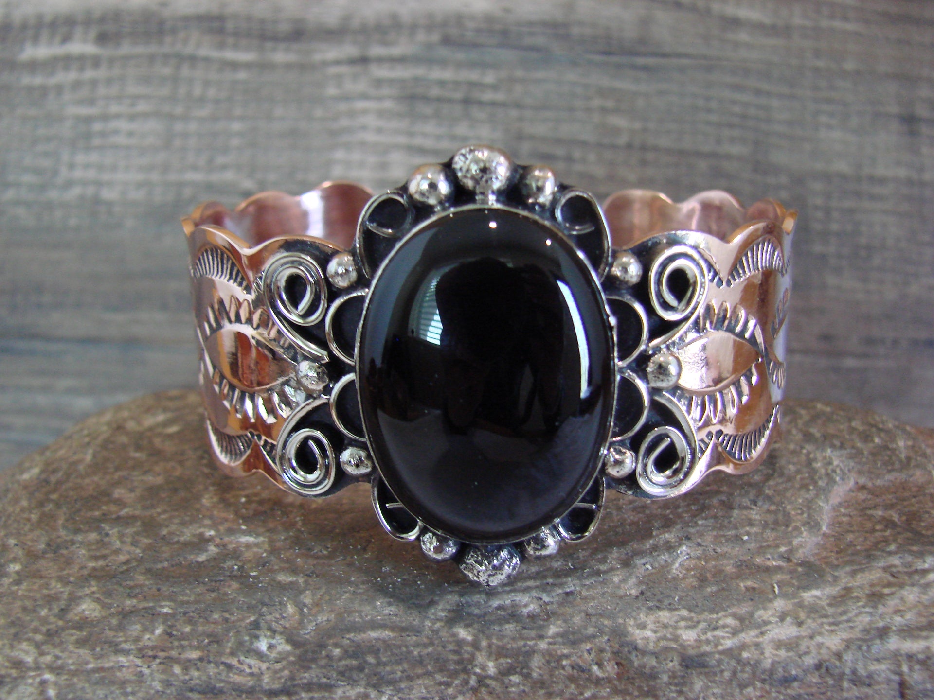 Navajo Indian Copper & Onyx Bracelet by Cleveland