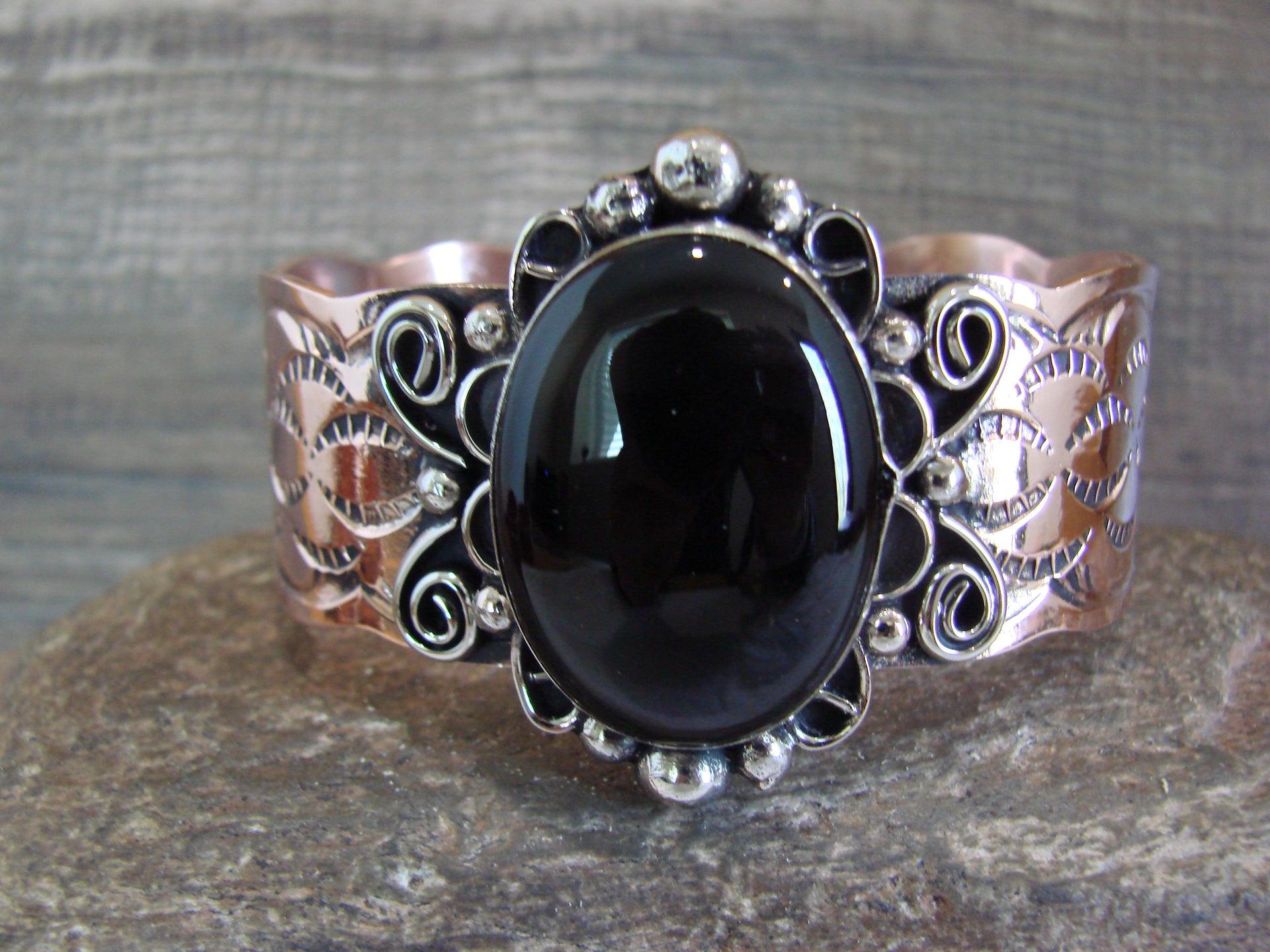 Navajo Indian Copper & Onyx Bracelet by Cleveland