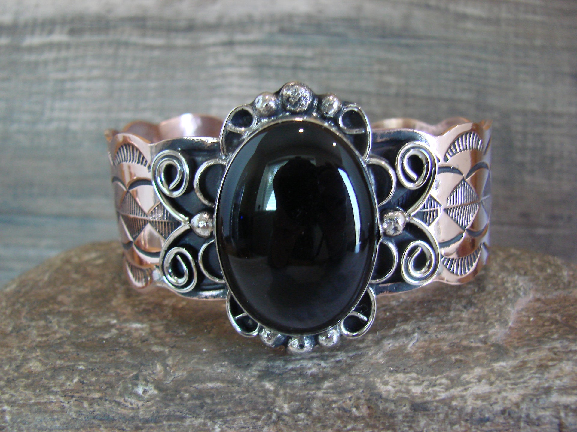 Navajo Indian Copper & Onyx Bracelet by Cleveland
