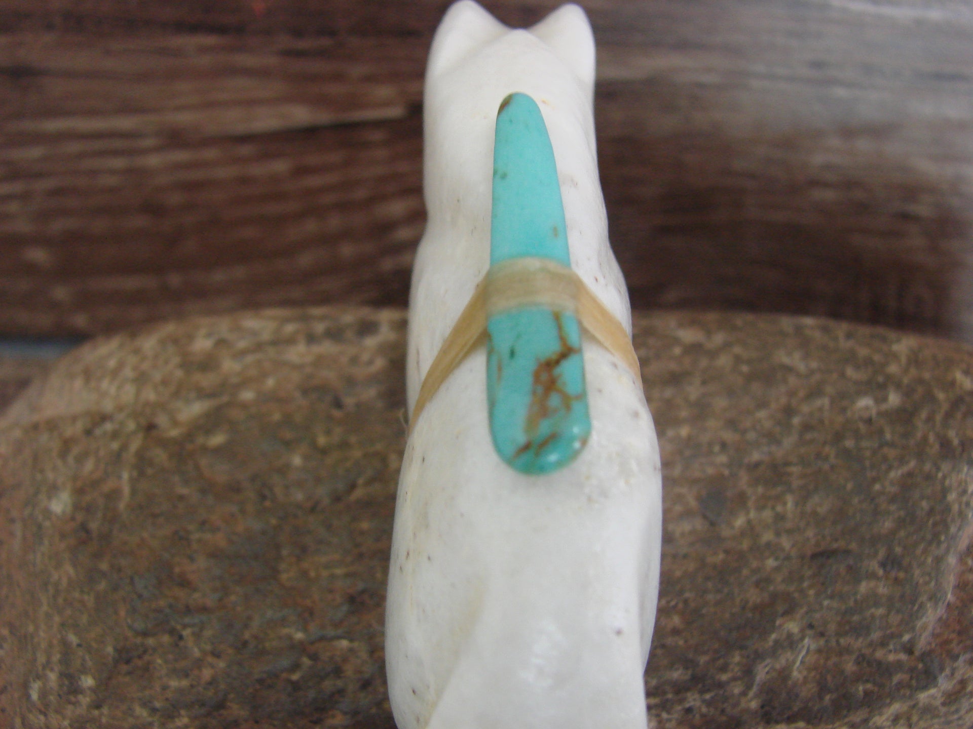 Native American Hand Carved White Marble Mountain Lion Fetish by Halate