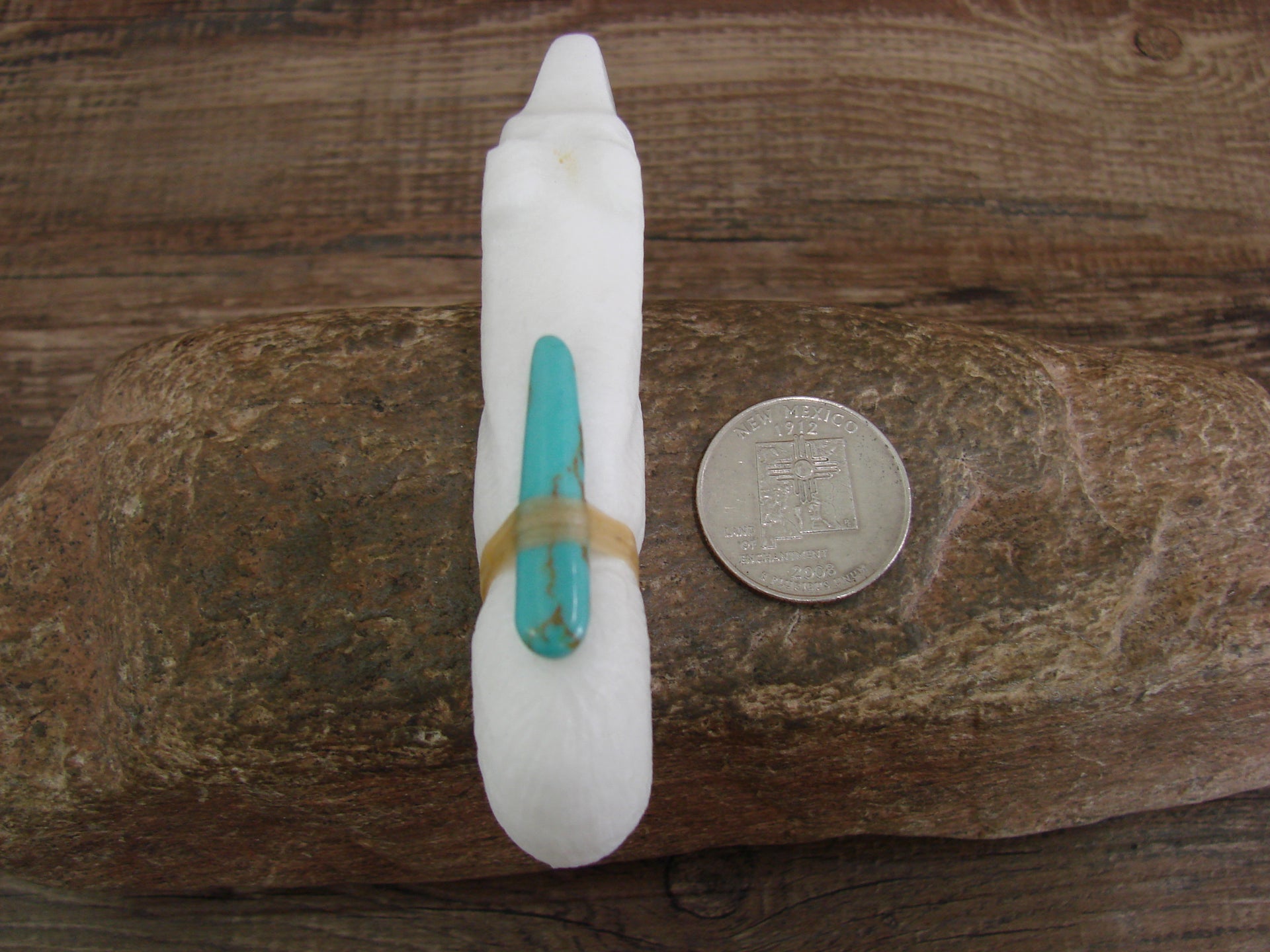 Genuine Native American Zuni Indian Hand Carved Bear Fetish from the Zuni Pueblo in Western New Mexico. This Stunning Fetish is Hand Carved out of a beautiful piece of White Marble. Turquoise is used for both the eyes and the offering. This is a unique and stunning piece! Handmade and signed by the Zuni carver Herb Halate. Free Shipping included!