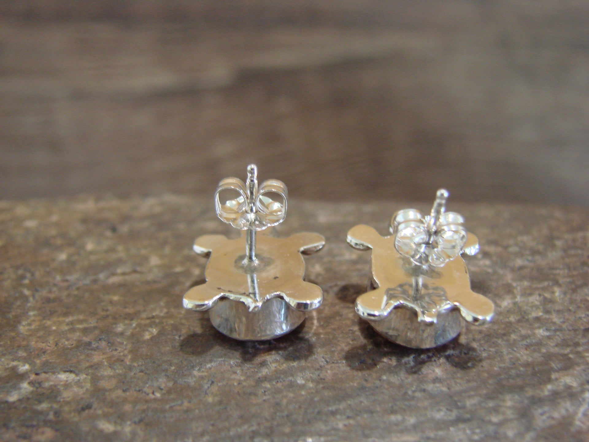 Native American Zuni Indian Sterling Silver & Spiny Oyster Turtle Inlay Post Earrings from Western New Mexico. These Stunning earrings feature Spiny Oyster stones beautifully Inlayed into a sterling silver turtle setting. The sterling silver work surrounding the earrings is very nicely detailed and polished to a bright finish! Zuni Indian handmade by Amielda Peynetsa. Free Shipping and Gift Box included!