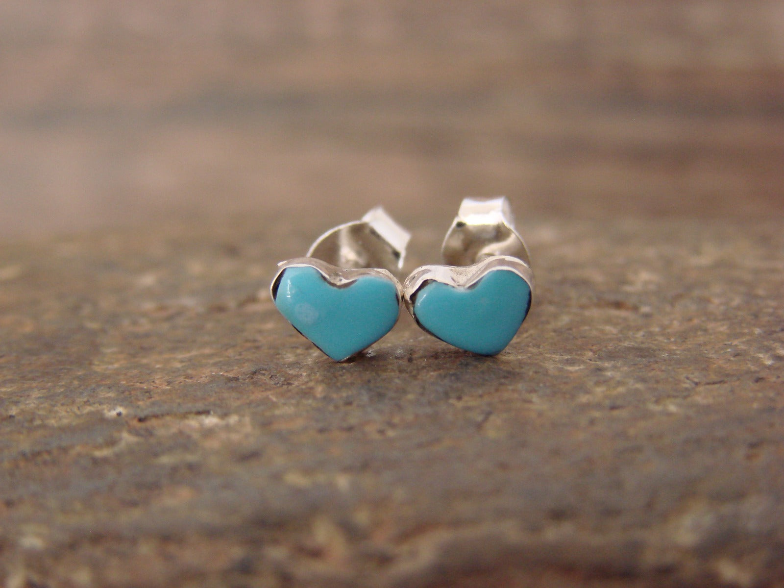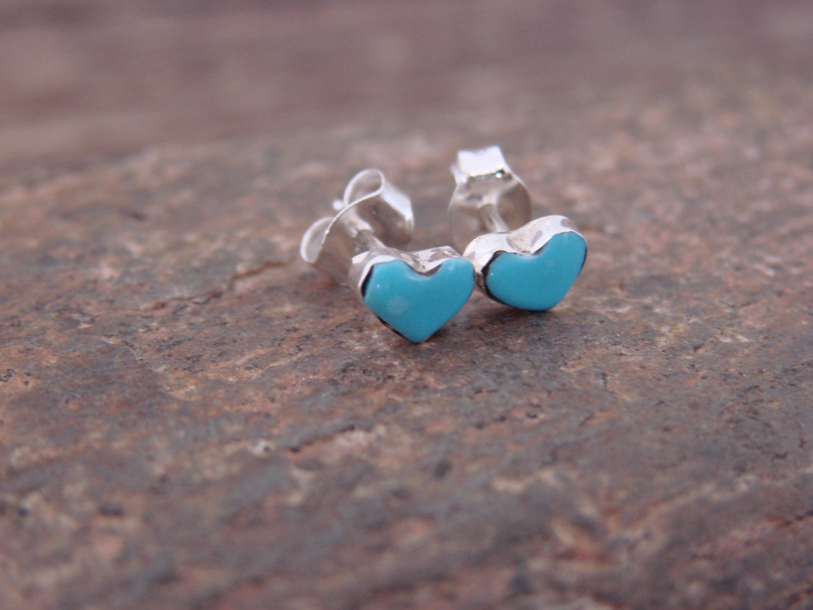 Genuine Native American Zuni Indian Turquoise Heart Post Earrings from Western New Mexico. These earrings feature a Heart shaped Turquoise stone on each earring set into a smooth Sterling Silver bezel. These shaped heart post earrings have a stunning look! Handmade Zuni Indian jewelry by Dorothy Neha. Free Shipping and Gift Box included.