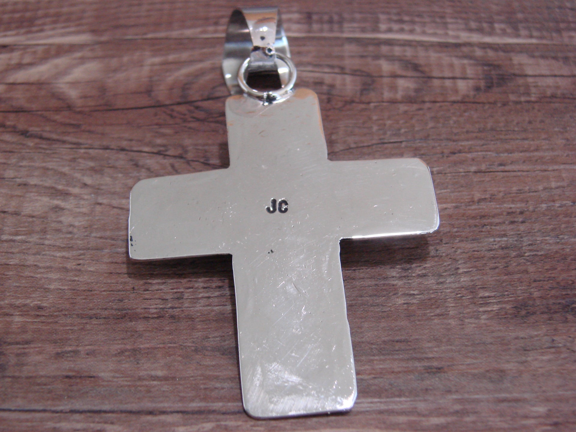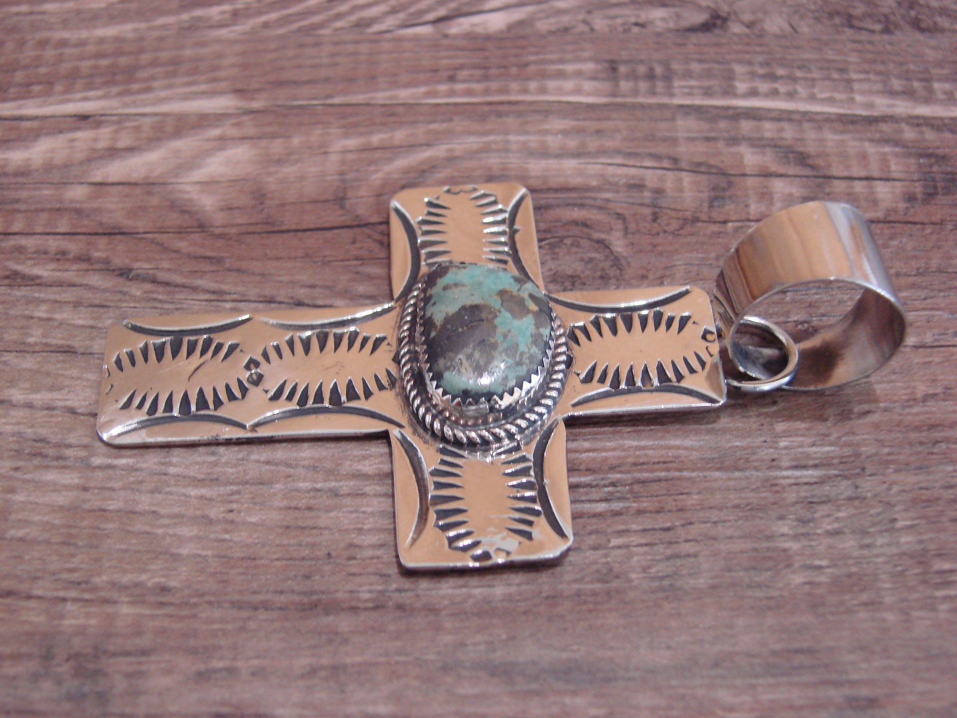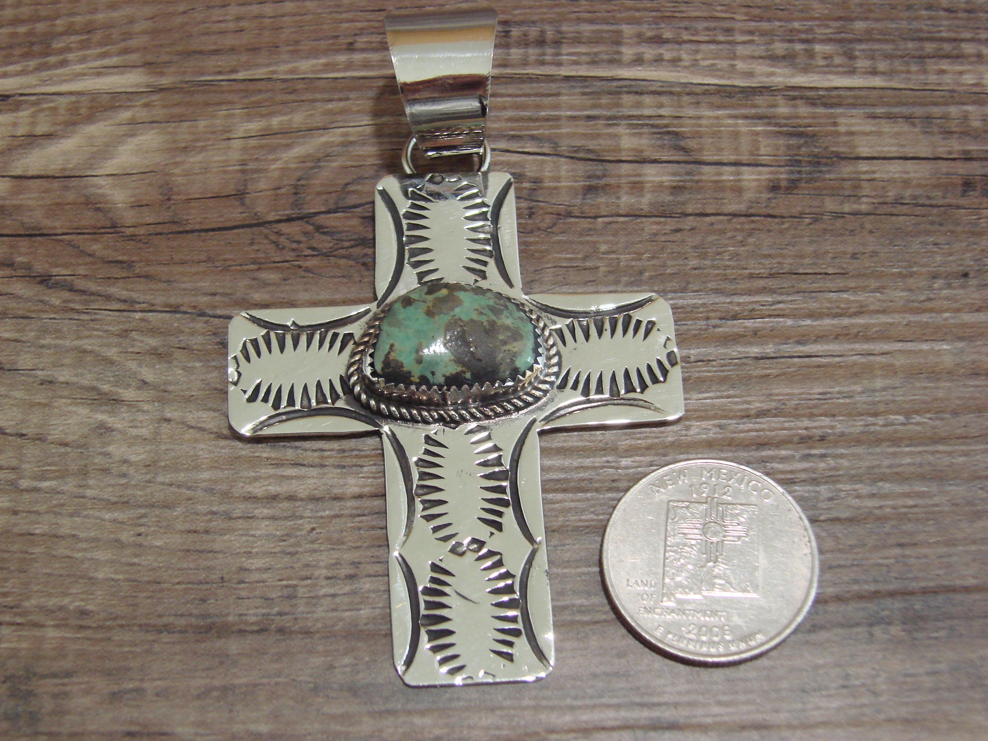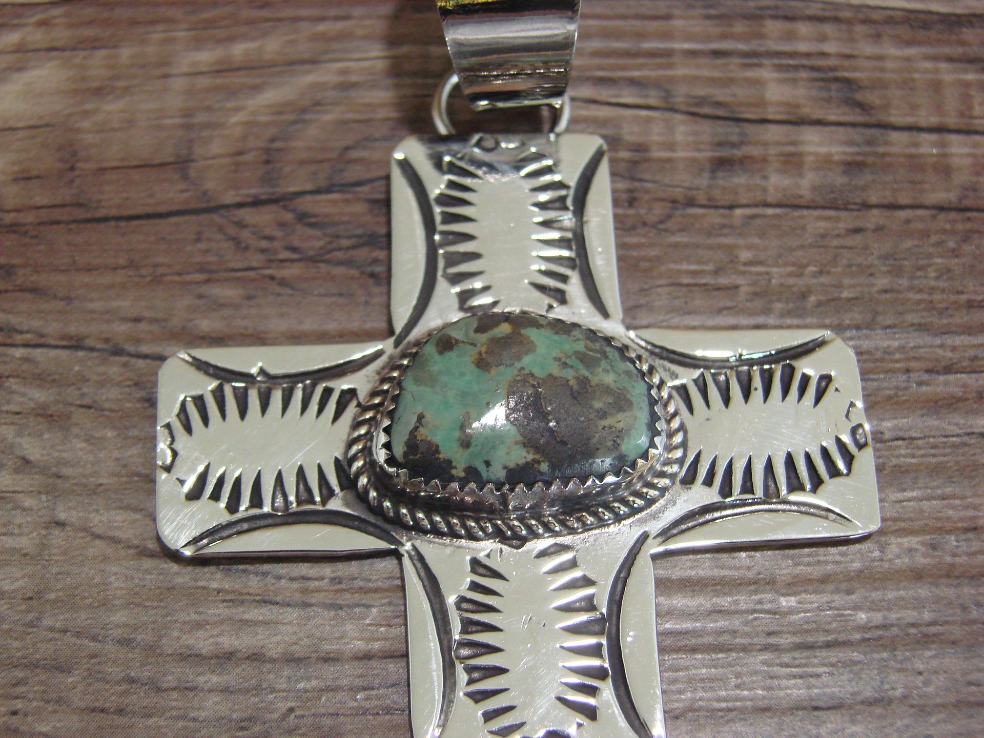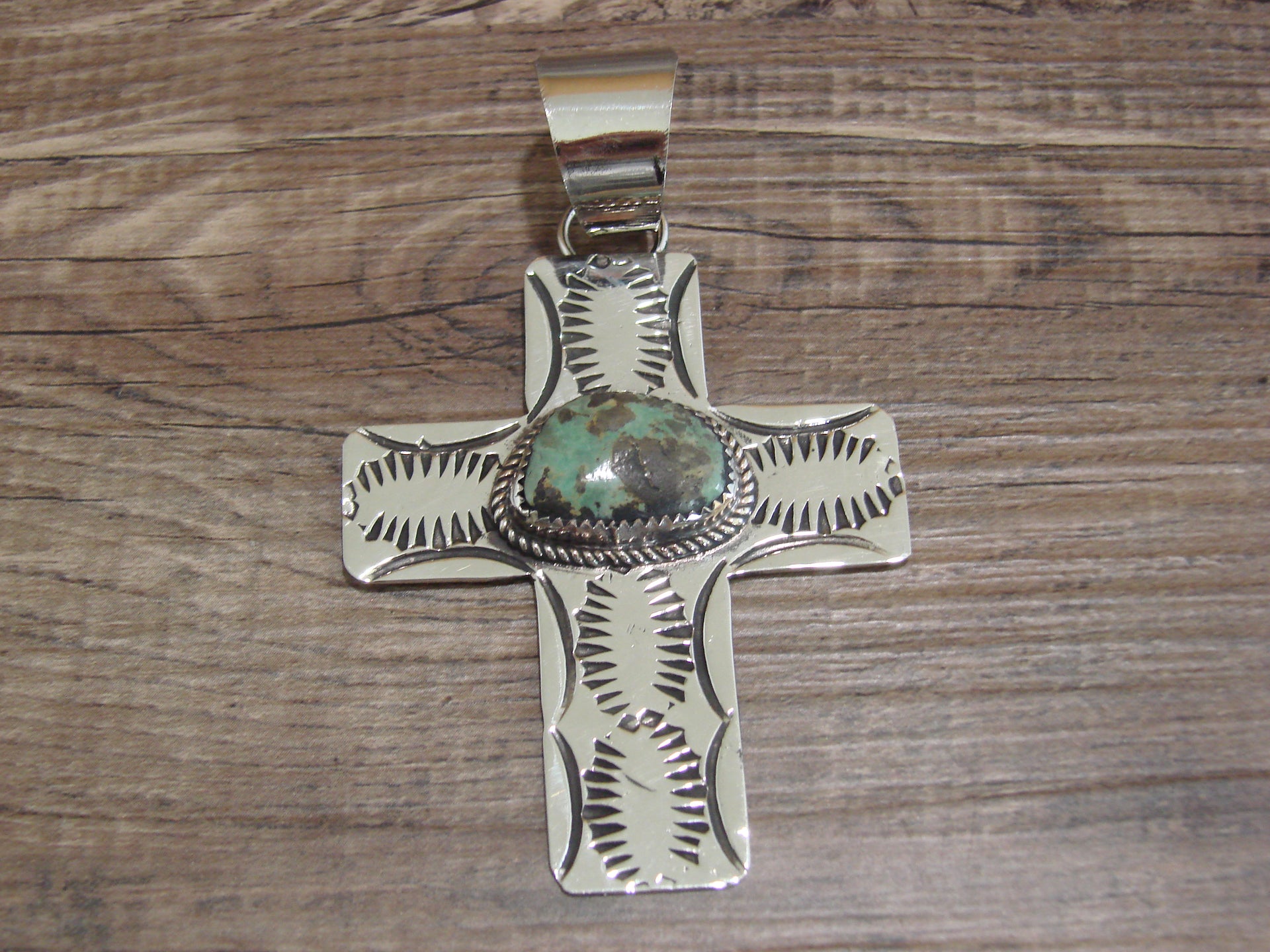Large Navajo Nickel Silver & Turquoise Cross Pendant - Cleveland