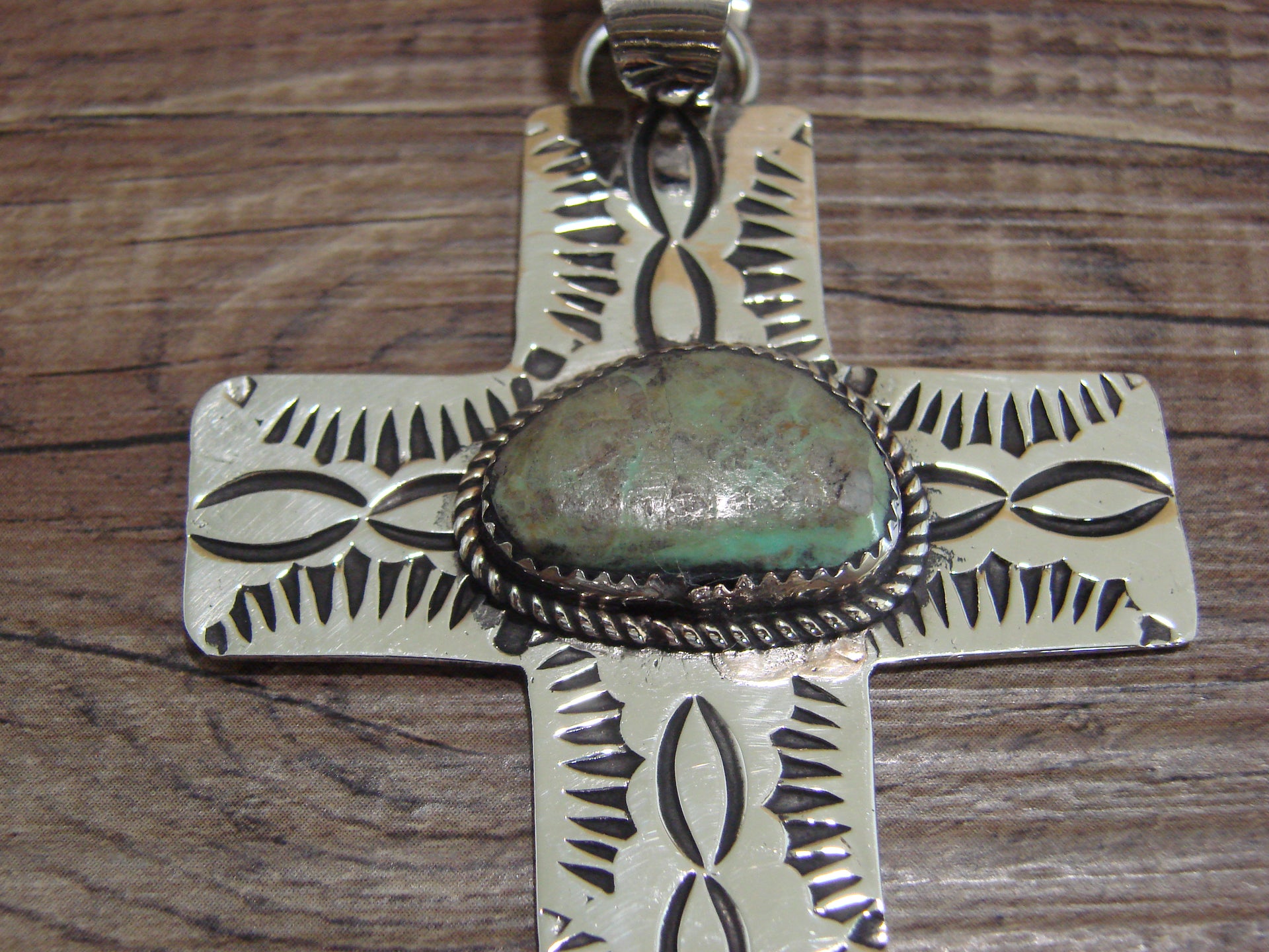Large Navajo Nickel Silver & Turquoise Cross Pendant - Cleveland