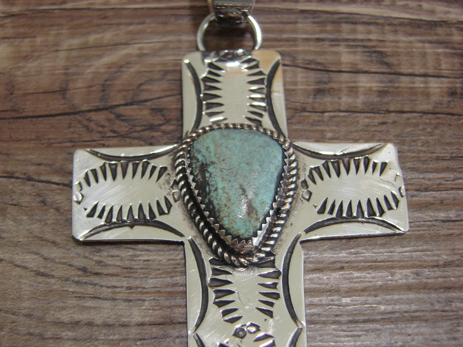 Large Navajo Nickel Silver & Turquoise Cross Pendant - Cleveland