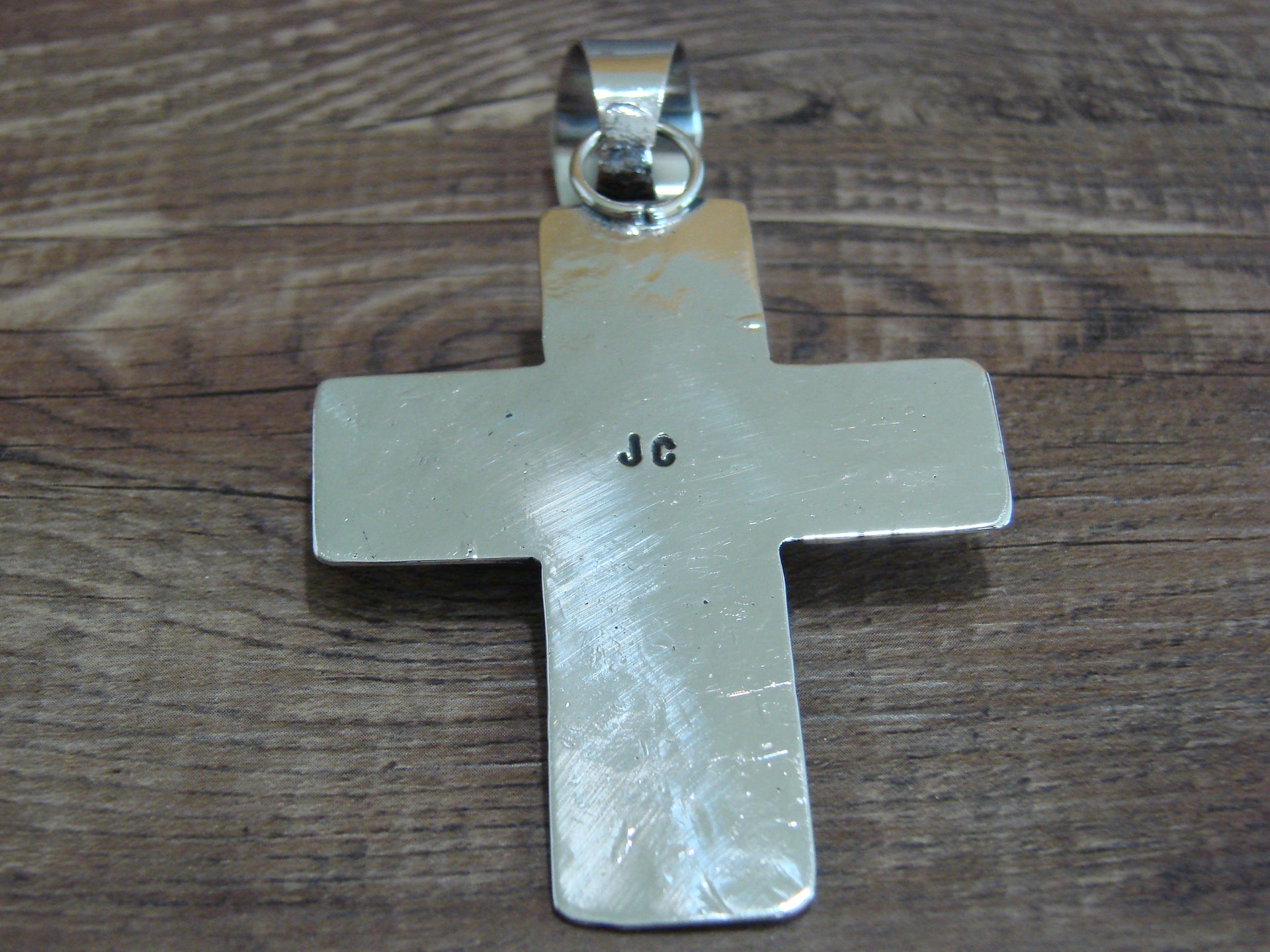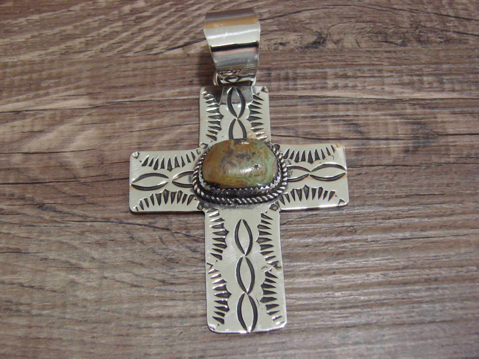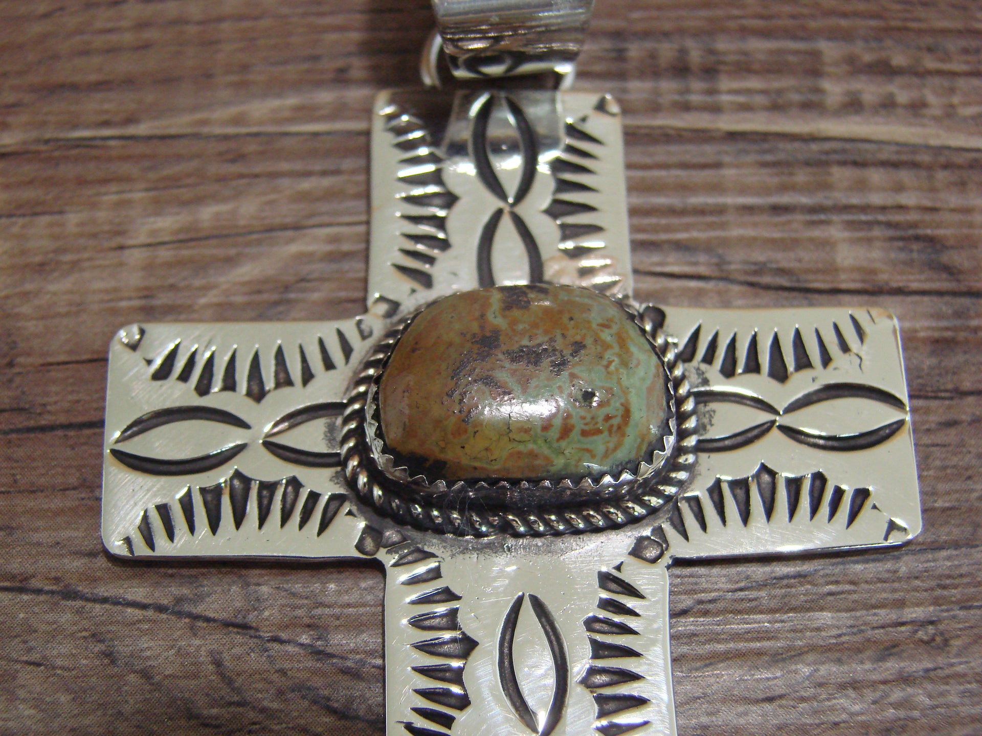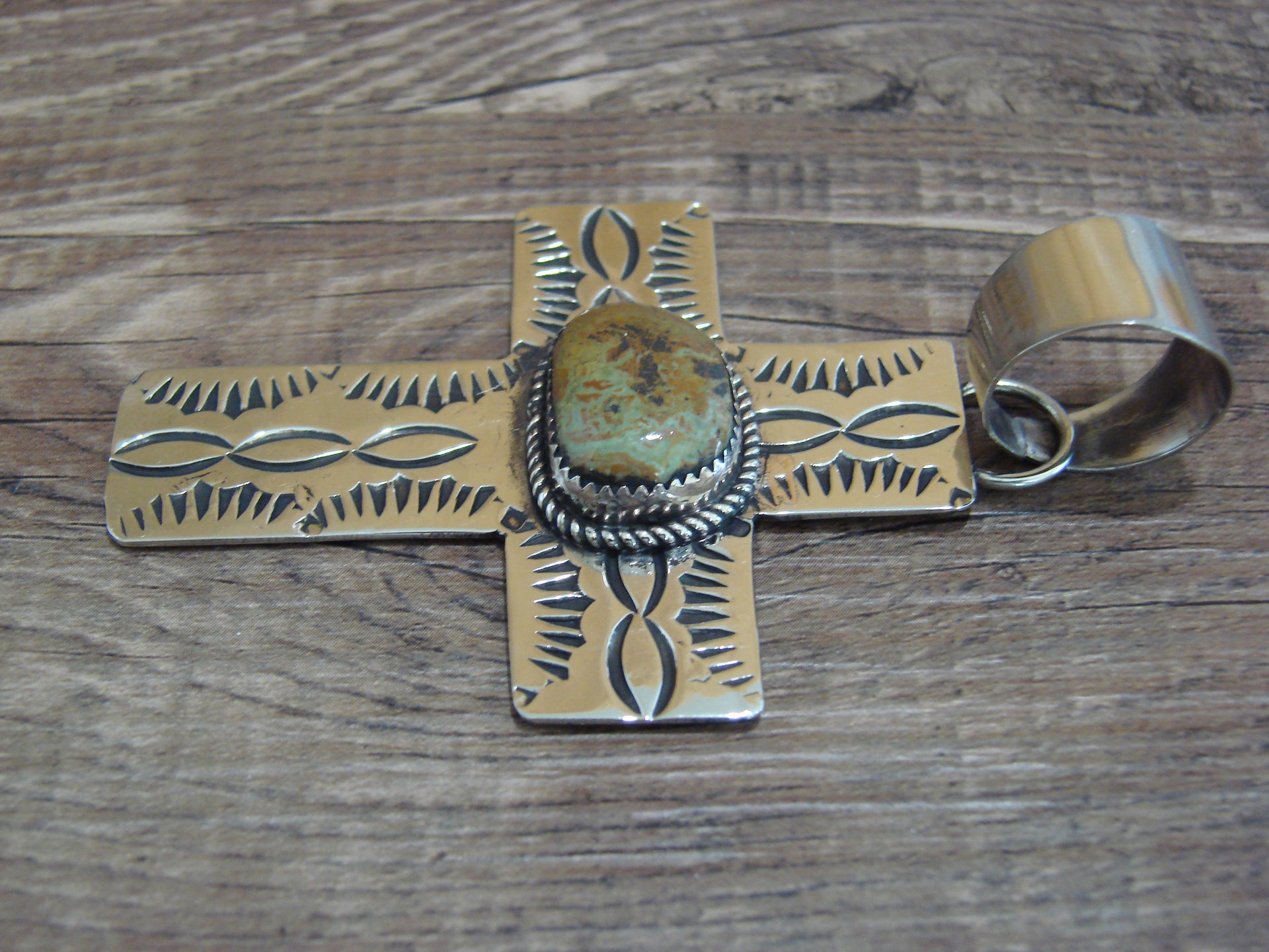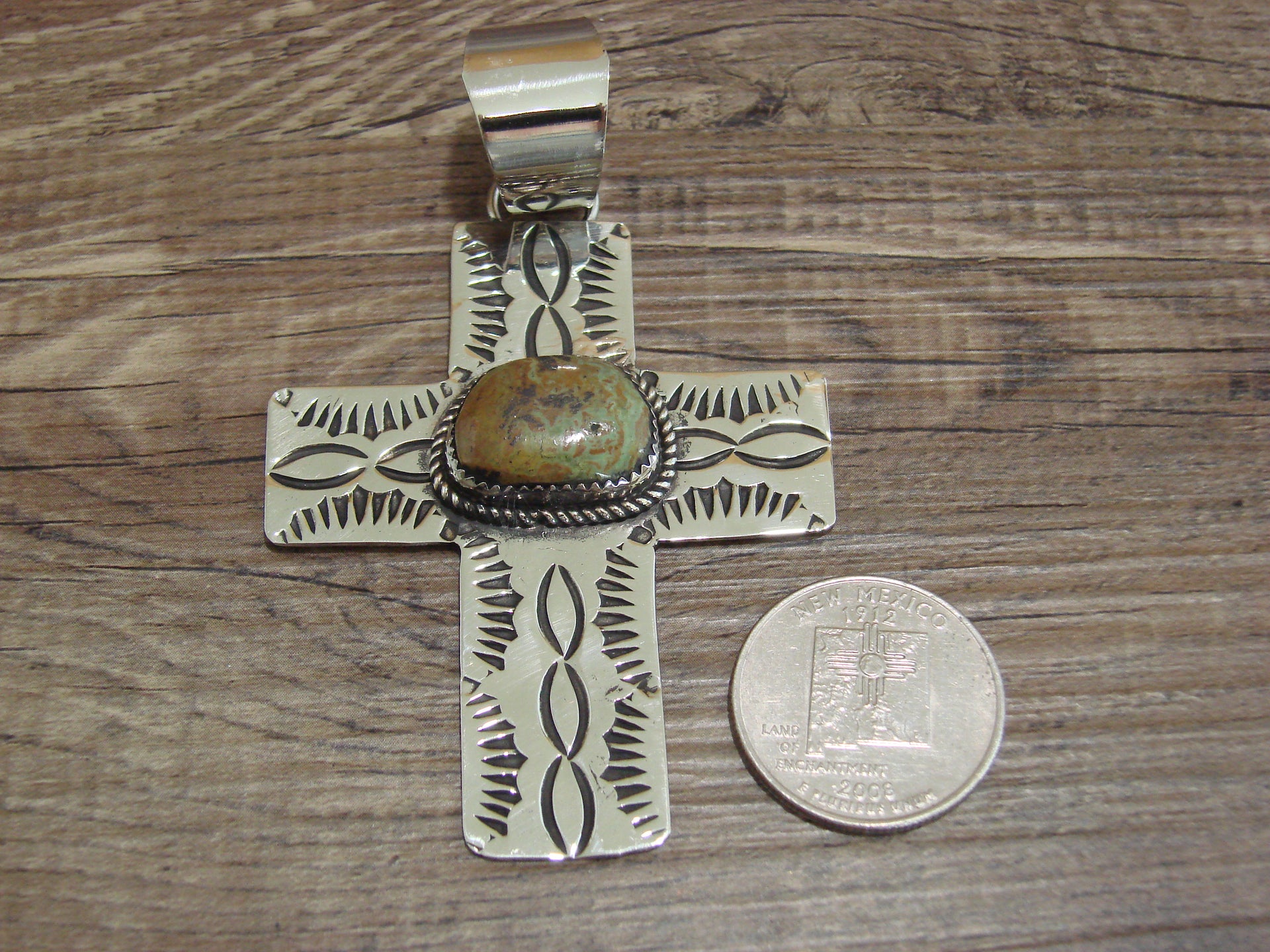 Large Navajo Nickel Silver & Turquoise Cross Pendant - Cleveland