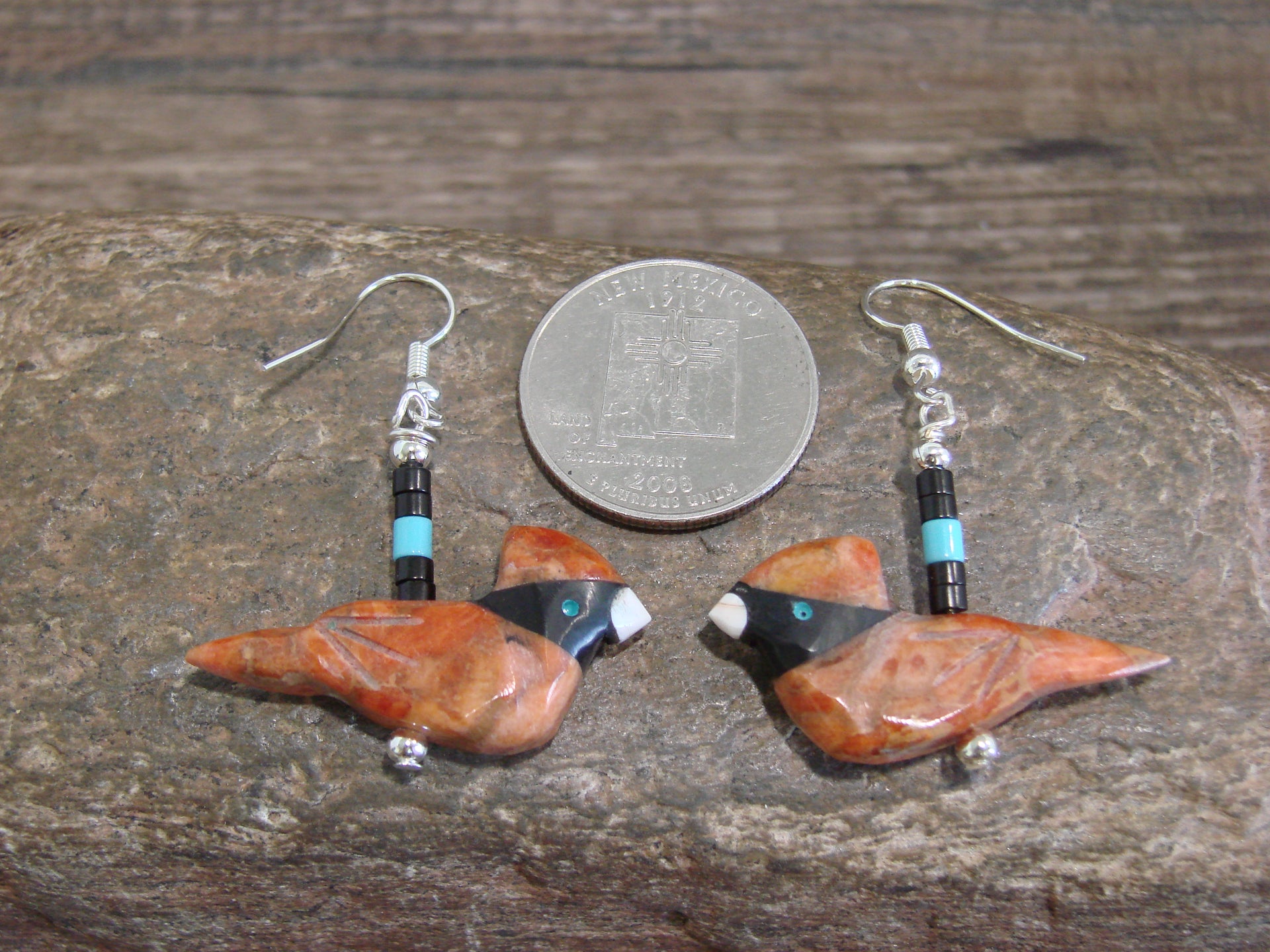 Hand Carved Fetish Earrings from New Mexico. These earrings feature beautifully hand carved Apple Coral. The birds have a great look! Free gift box included! Handmade by Matt Mitchell, although Matt is non-Native American his carving work is some of the best around.
