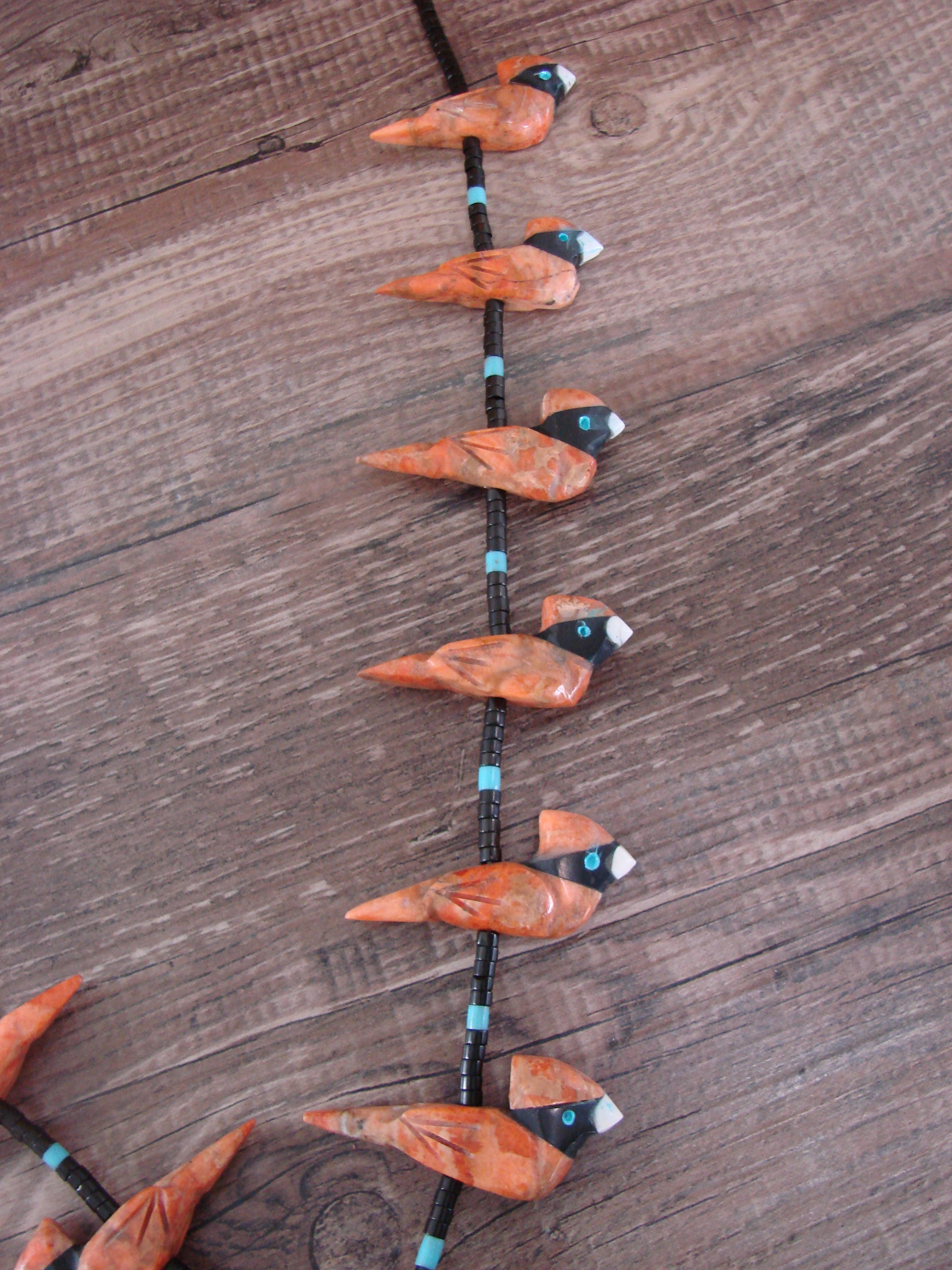 Hand Carved Apple Coral Cardinal Fetish Necklace - Matt Mitchell