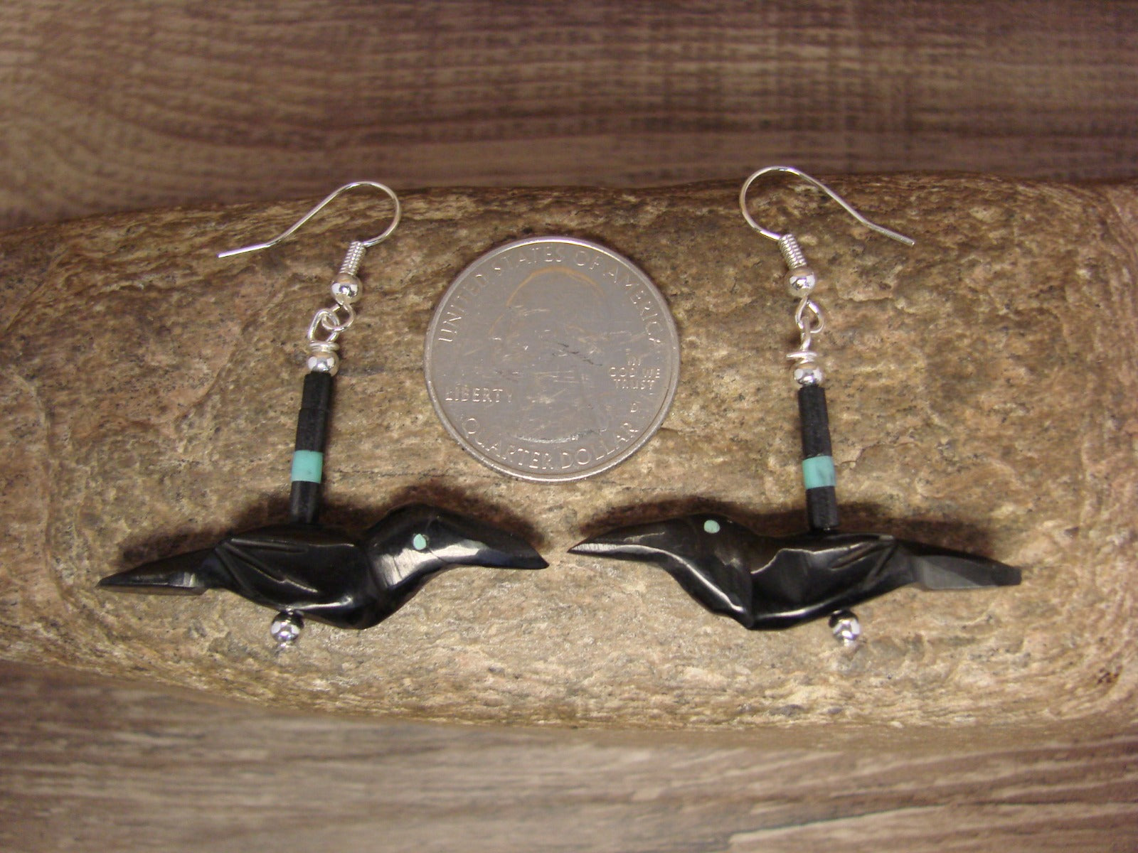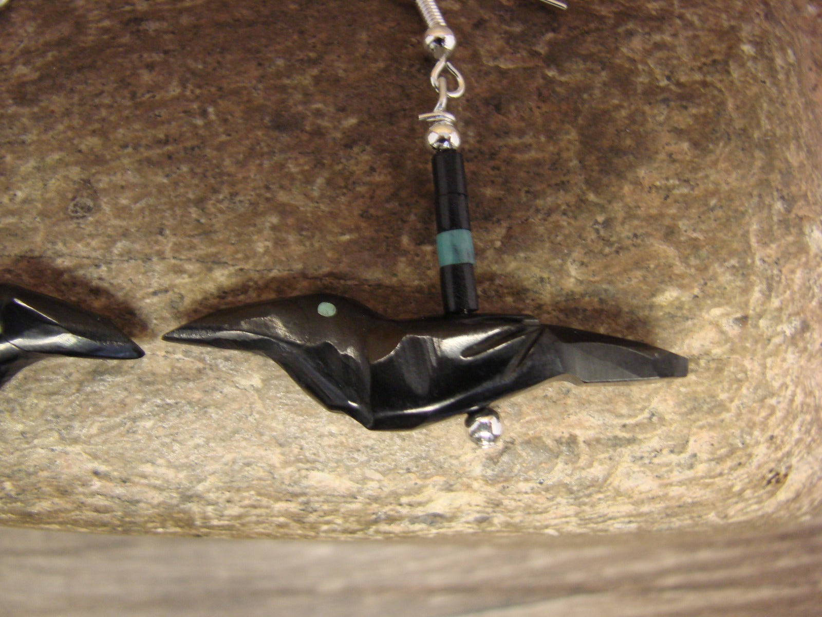 Hand Carved Fetish Earrings from New Mexico. These earrings feature beautifully hand carved Jet. The birds have a great look! Free gift box included! Hand made by Matt Mitchell, although Matt is non-Native American his carving work is some of the best around.