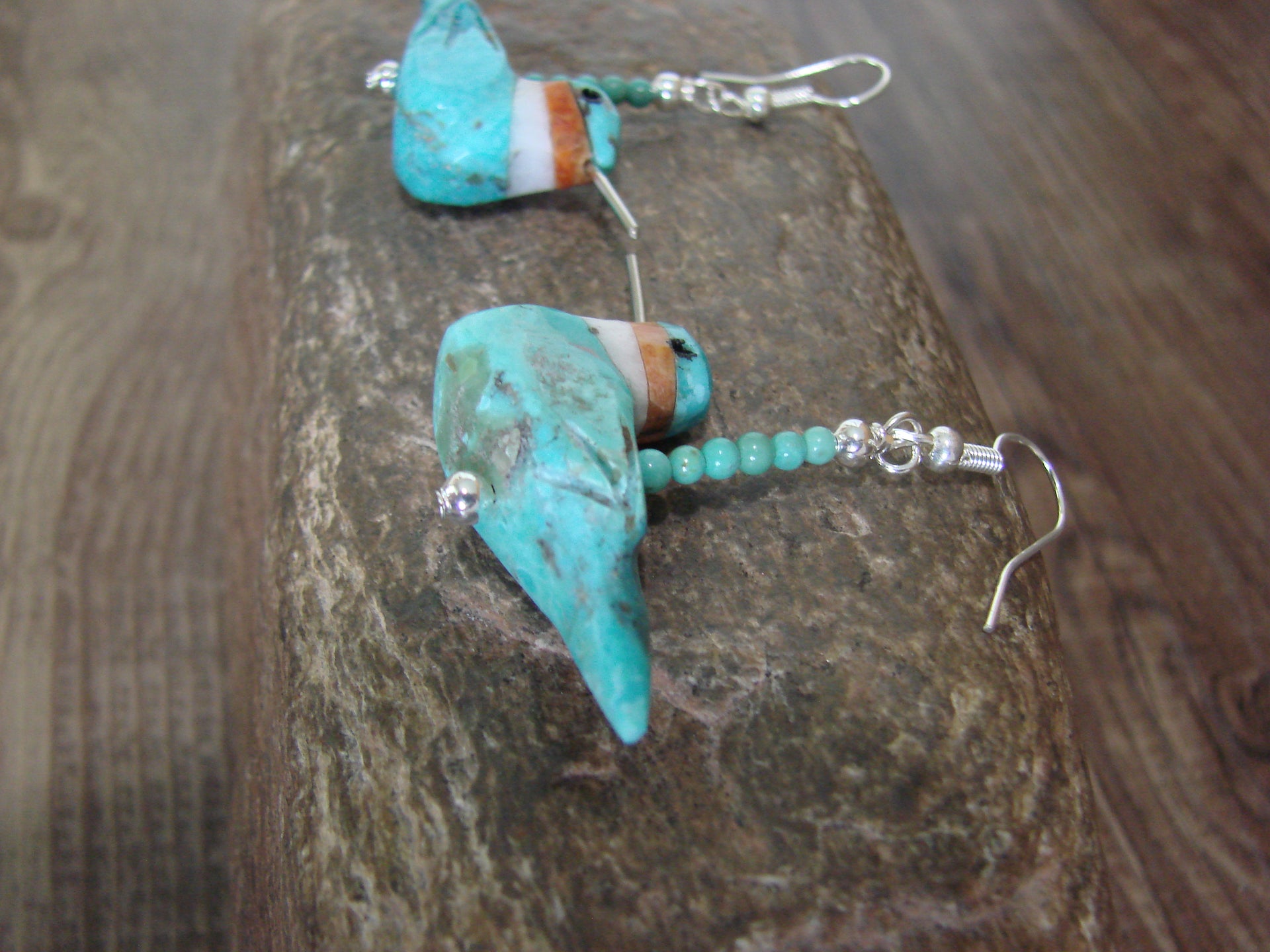 Hand Carved Fetish Earrings from New Mexico. These earrings feature beautifully hand carved Turquoise Hummingbirds. The Hummingbirds are nicely carved and have a great look! This is a great pair of earrings! Free gift box included! Handmade by Matt Mitchell, although Matt is non-Native American his carving work is some of the best around. Free shipping!
