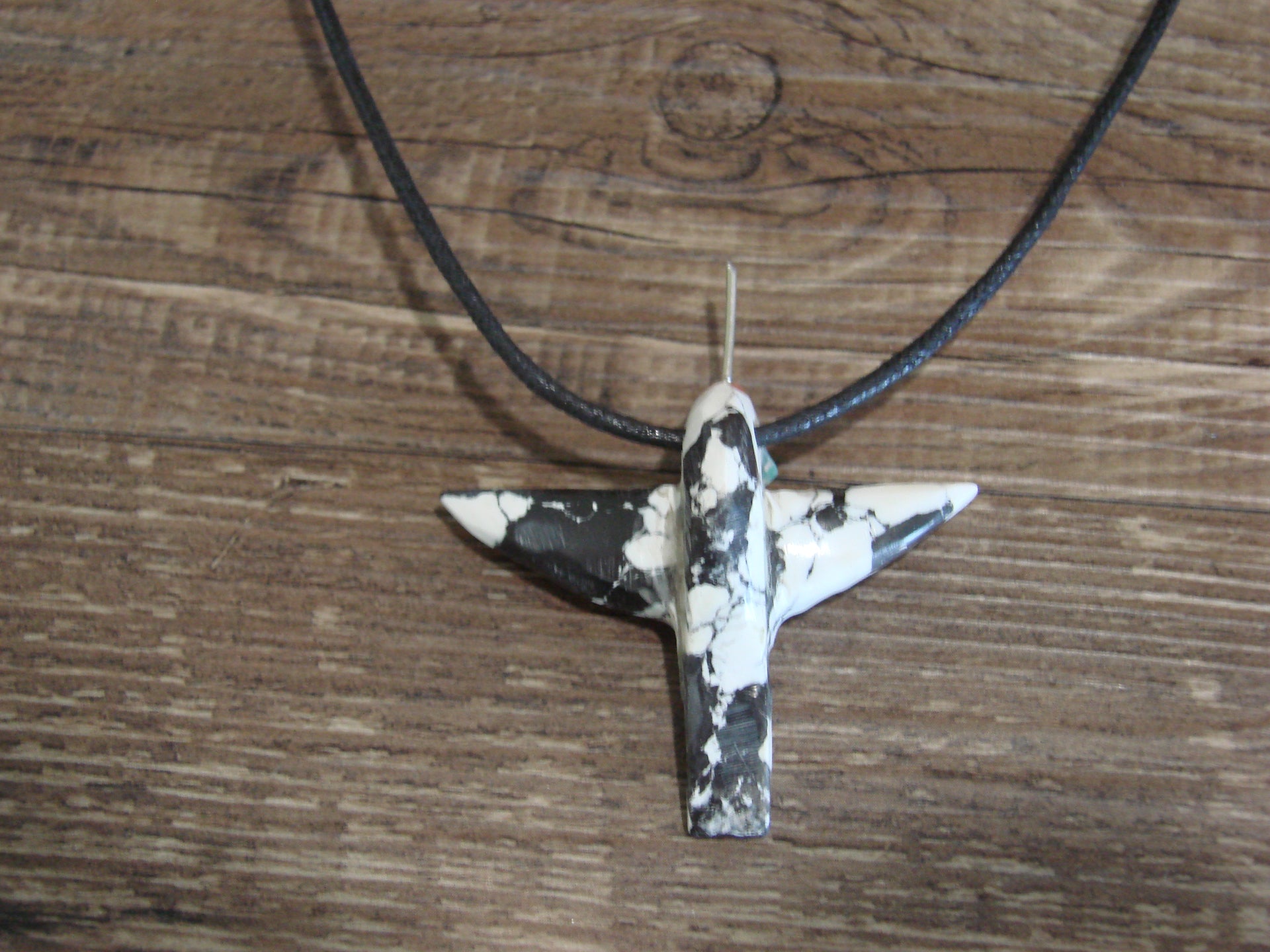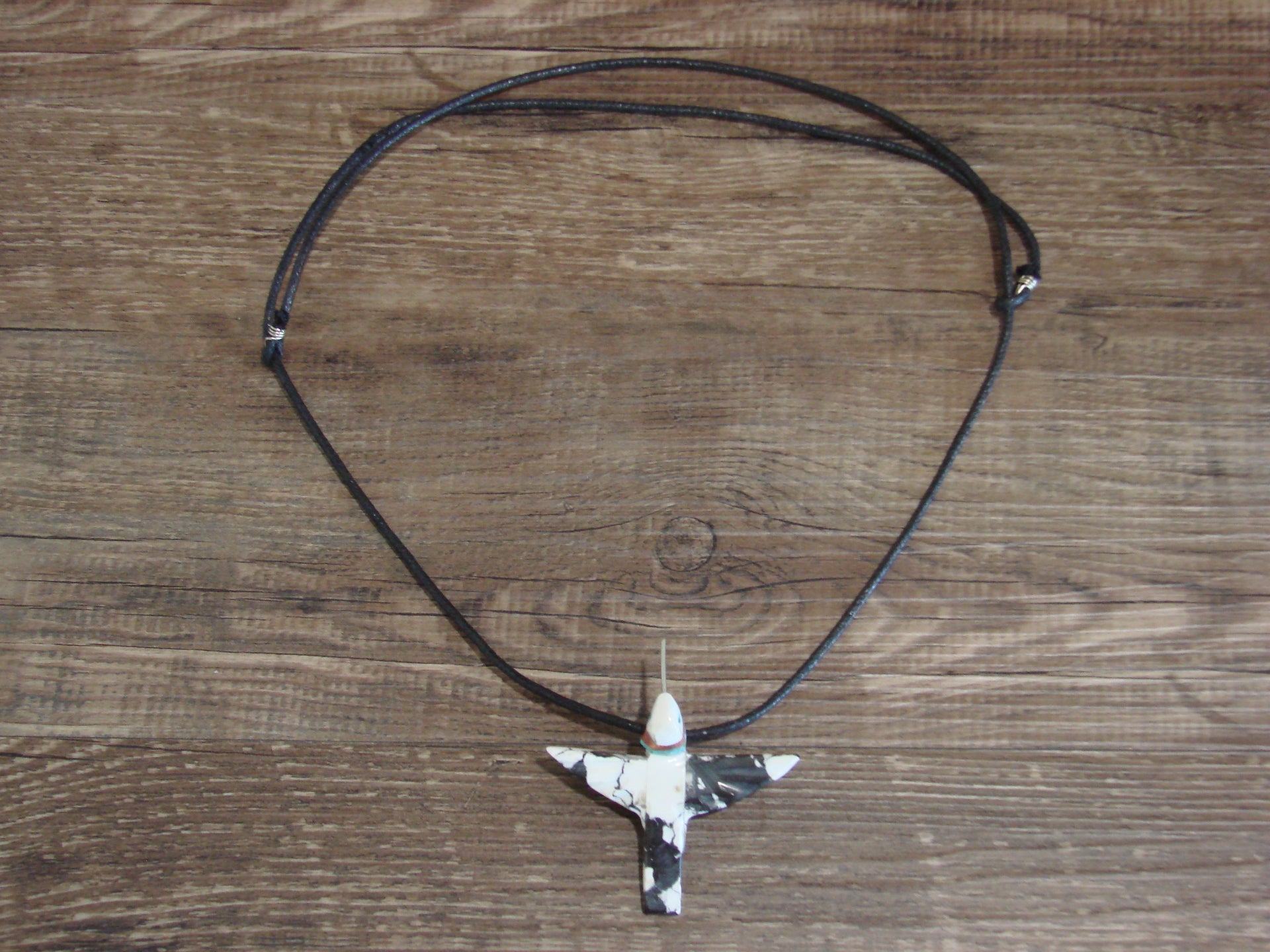 Hand Carved White Buffalo Turquoise Hummingbird Fetish Necklace - Mitchell