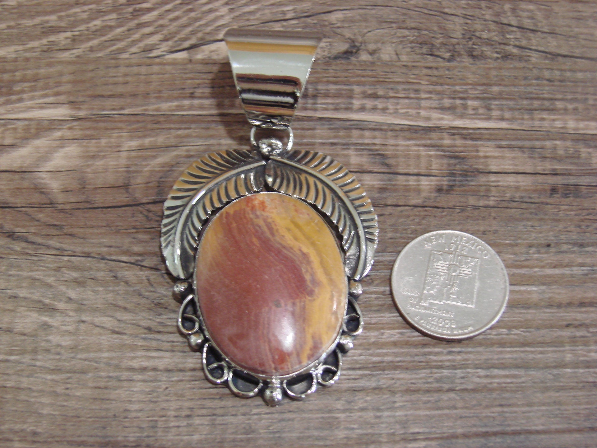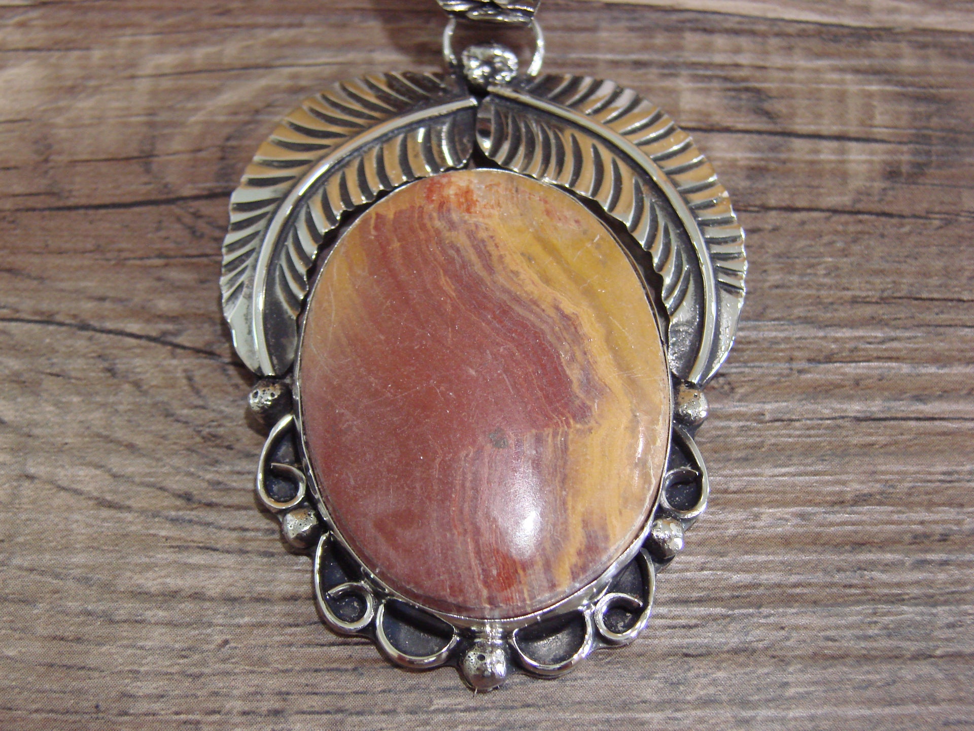 Large Navajo Indian Nickel Silver & Jasper Pendant by Cleveland