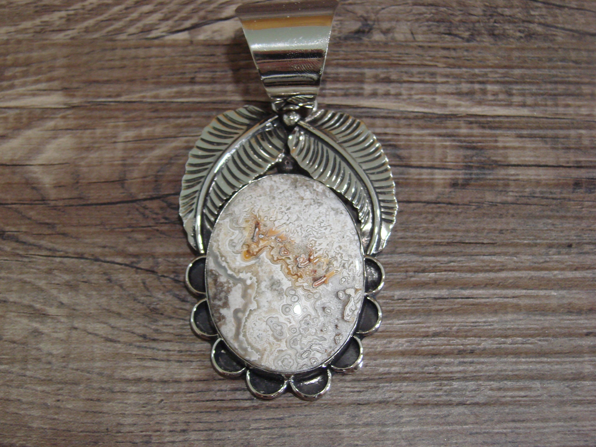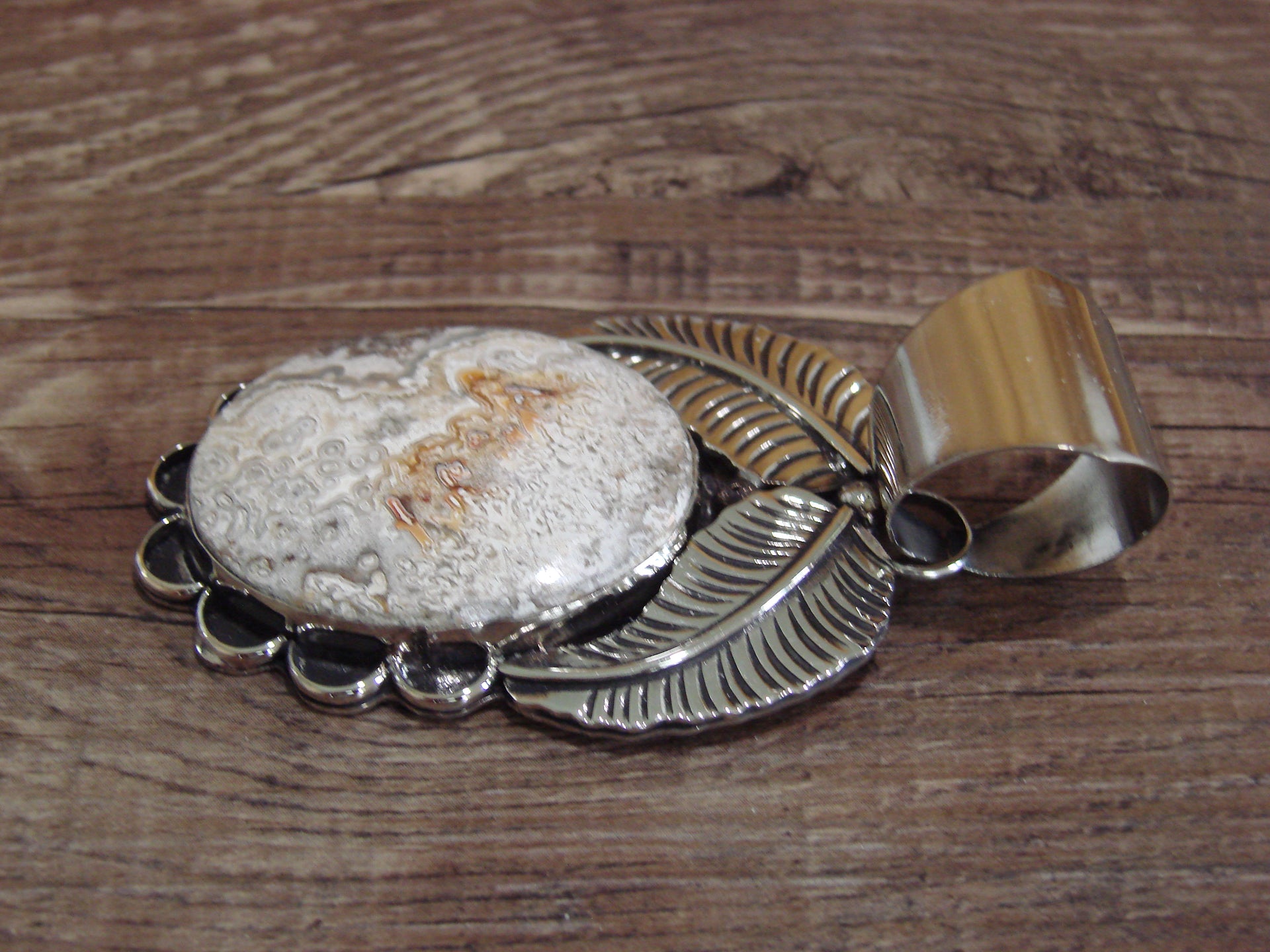 Large Navajo Indian Nickel Silver & Jasper Pendant by Cleveland