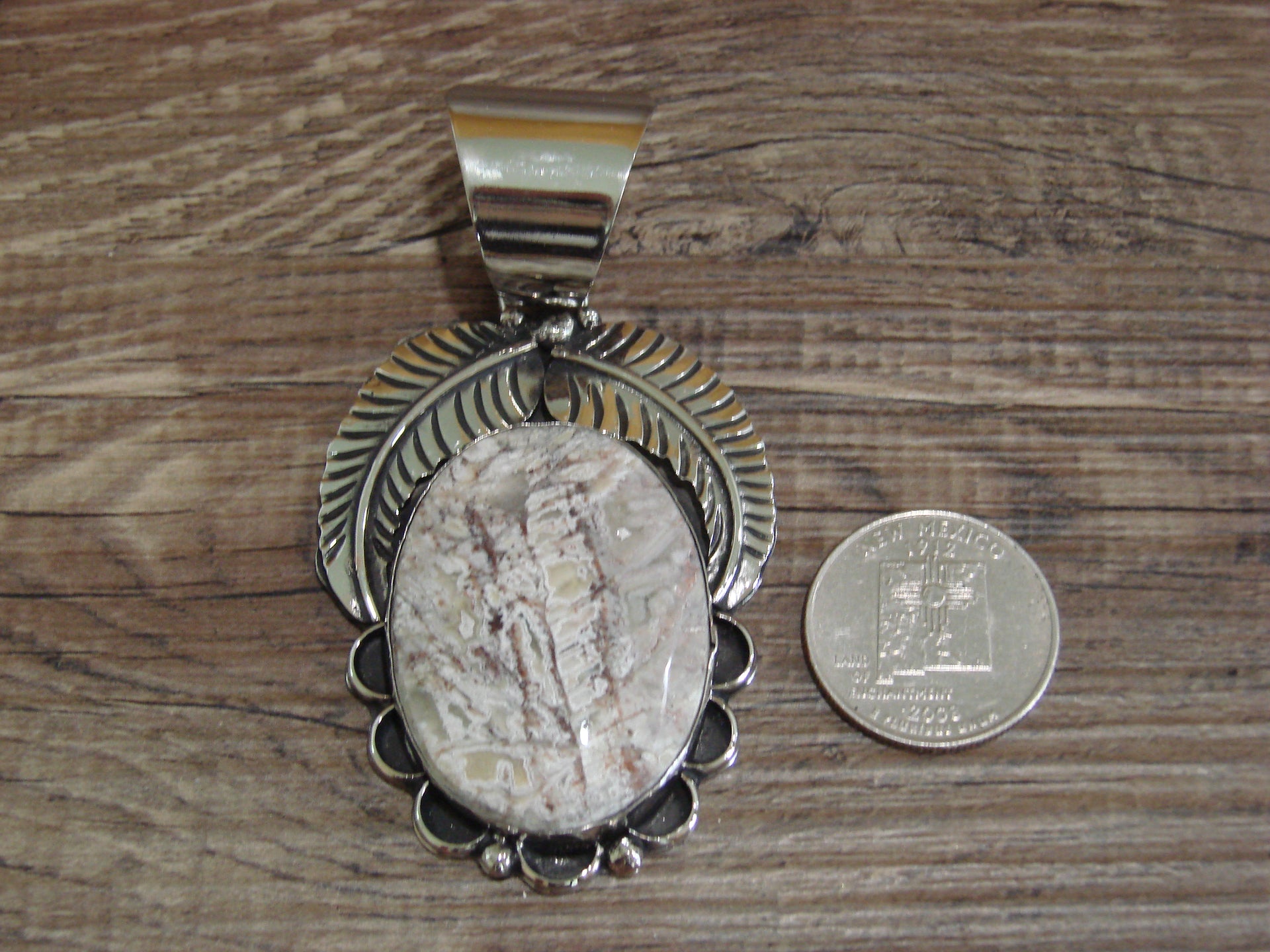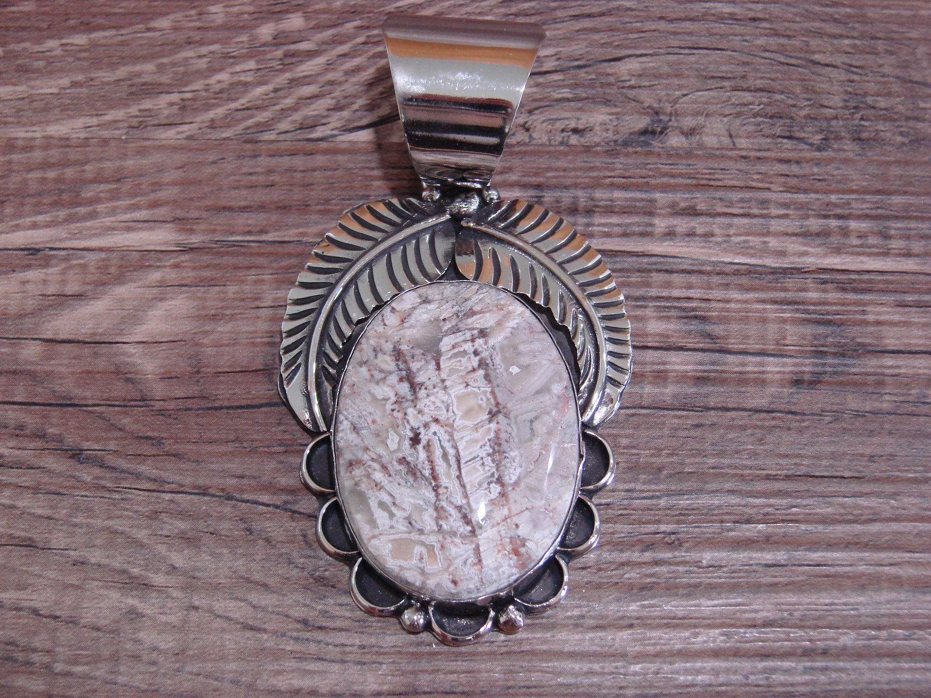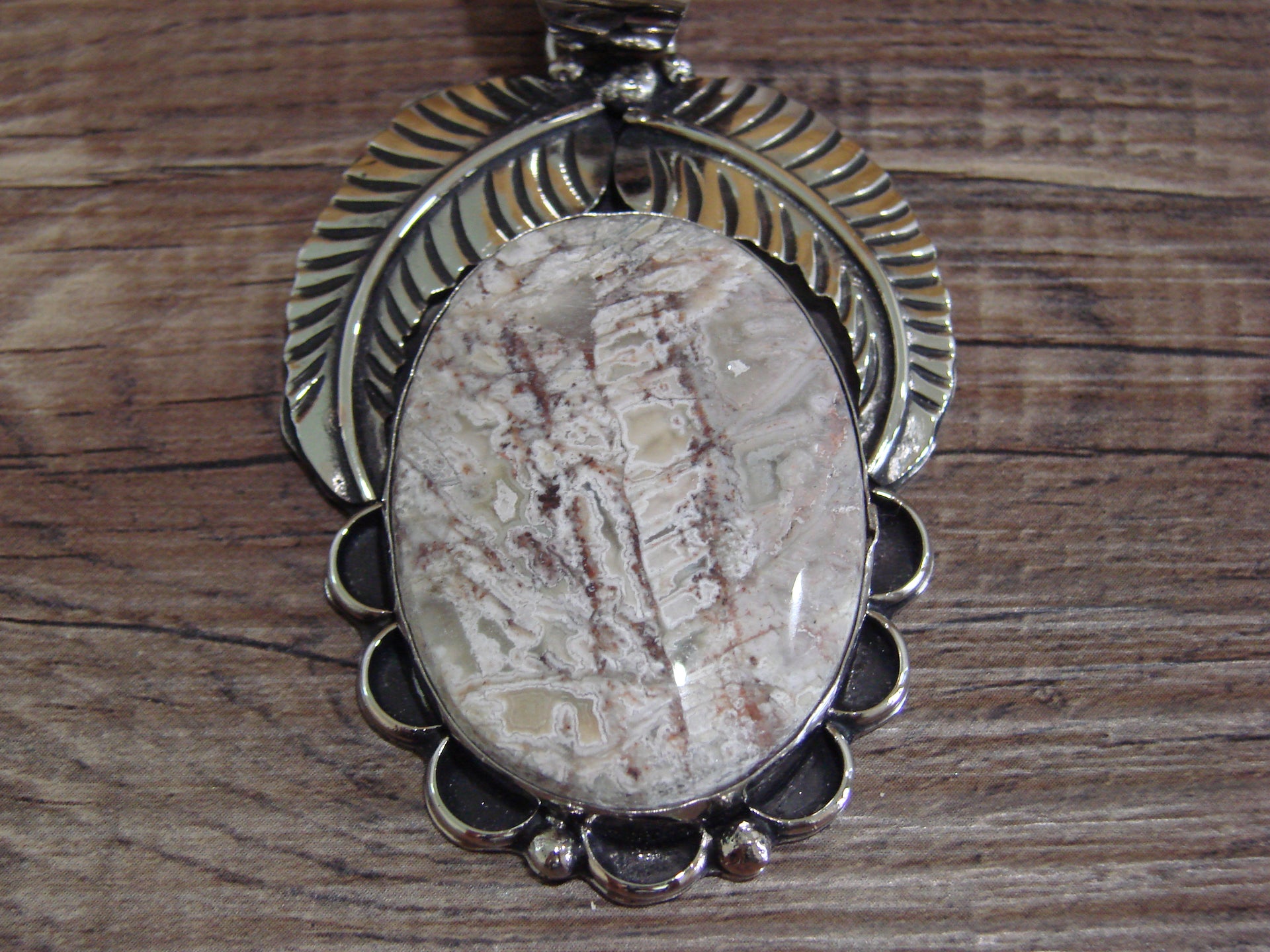 Large Navajo Indian Nickel Silver & Jasper Pendant by Cleveland