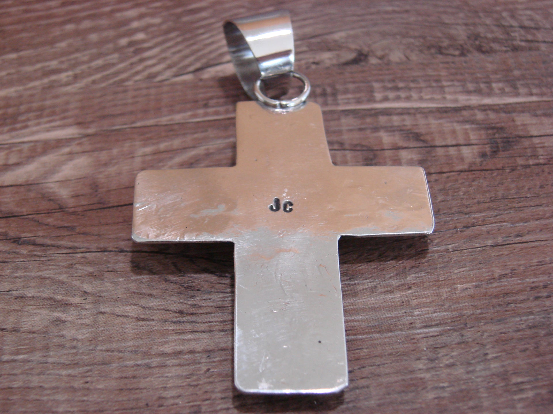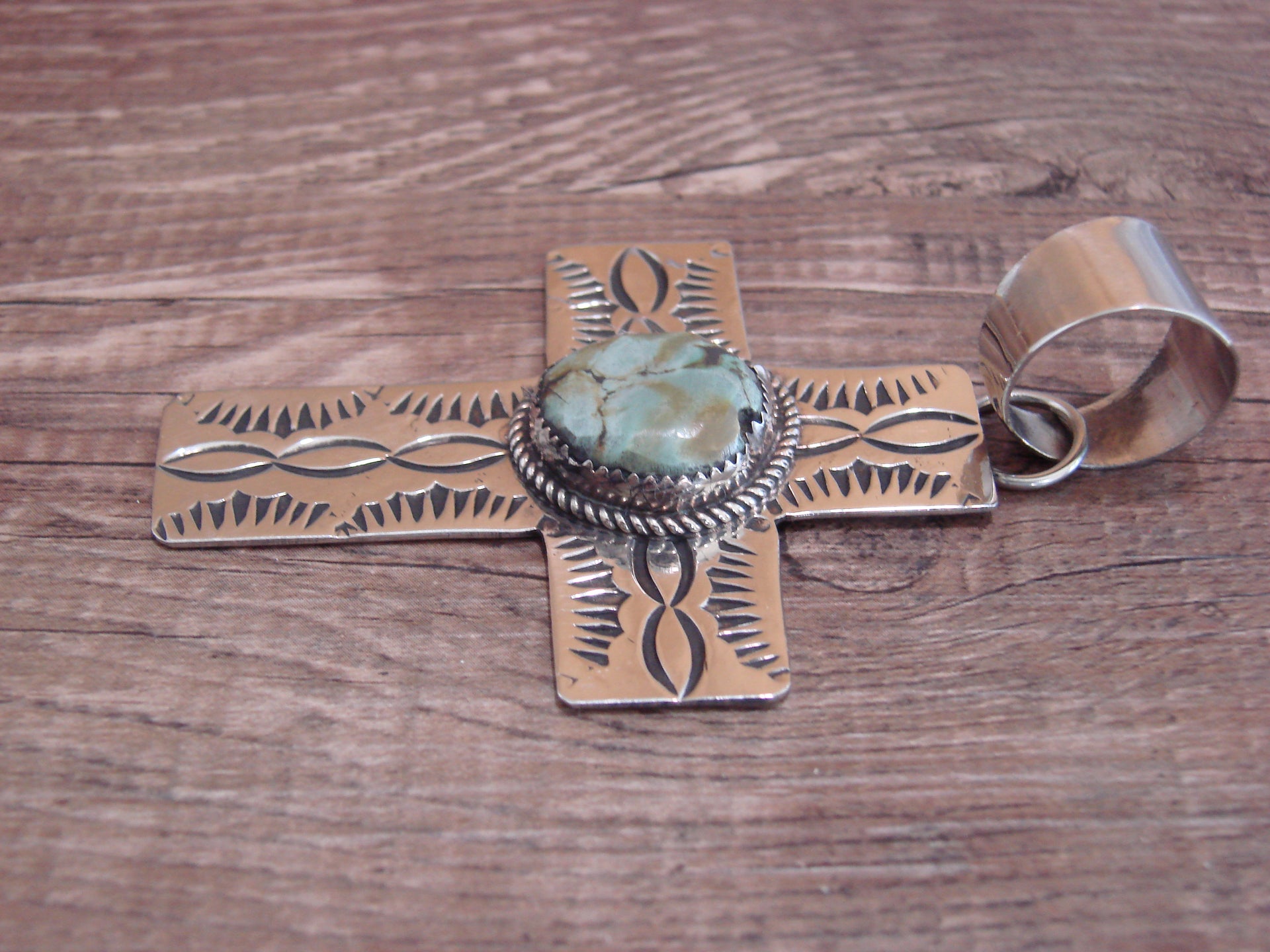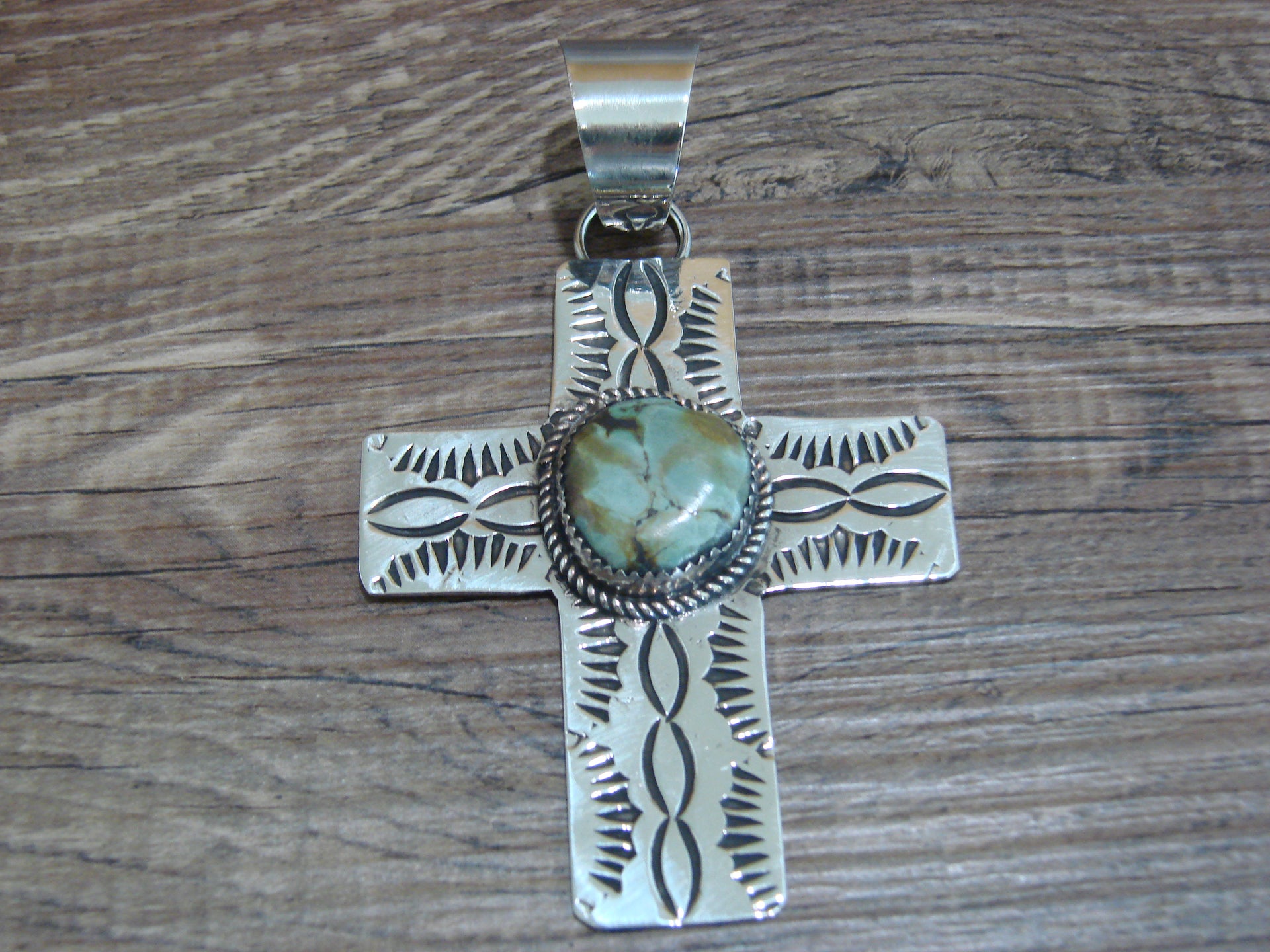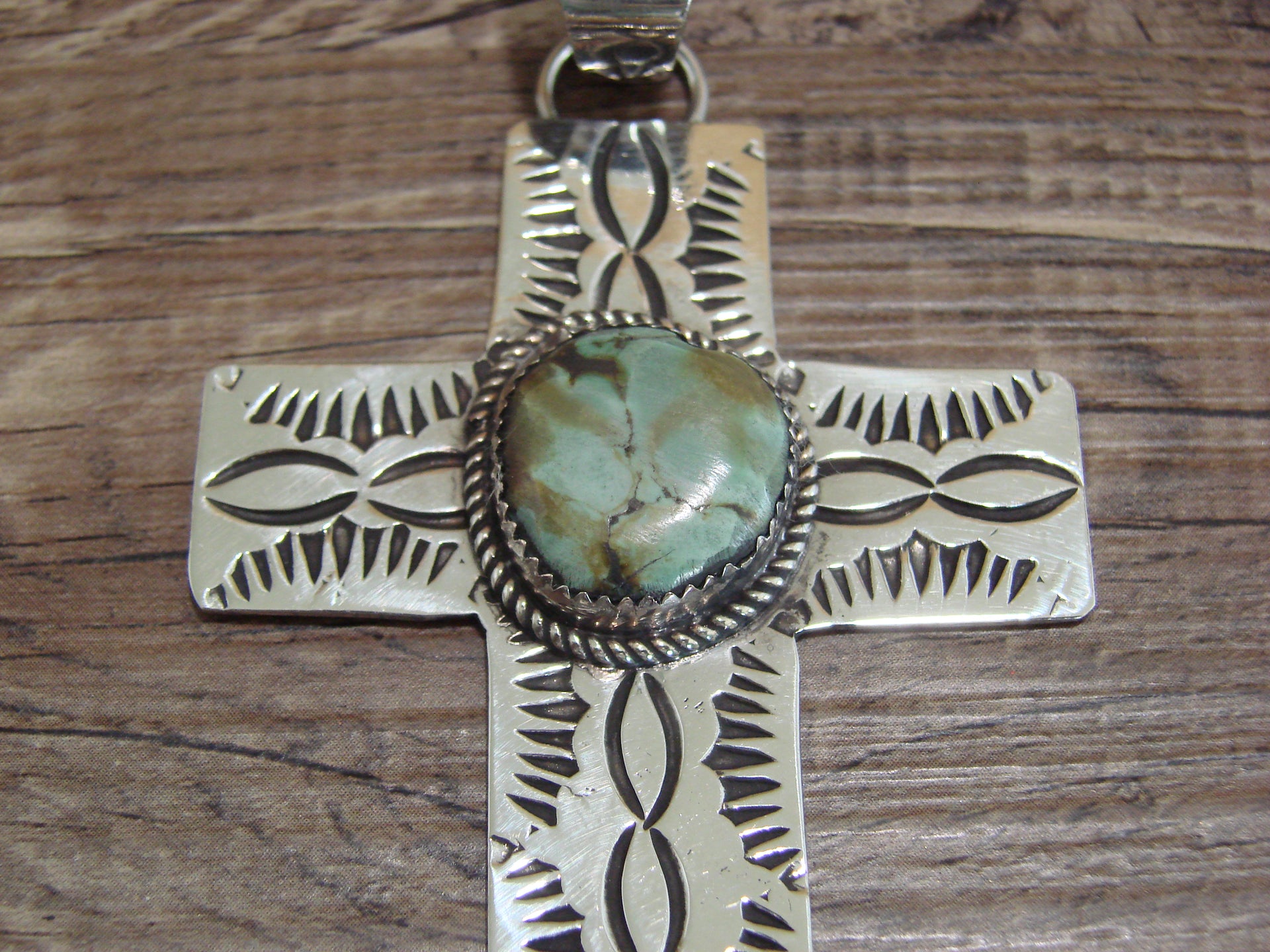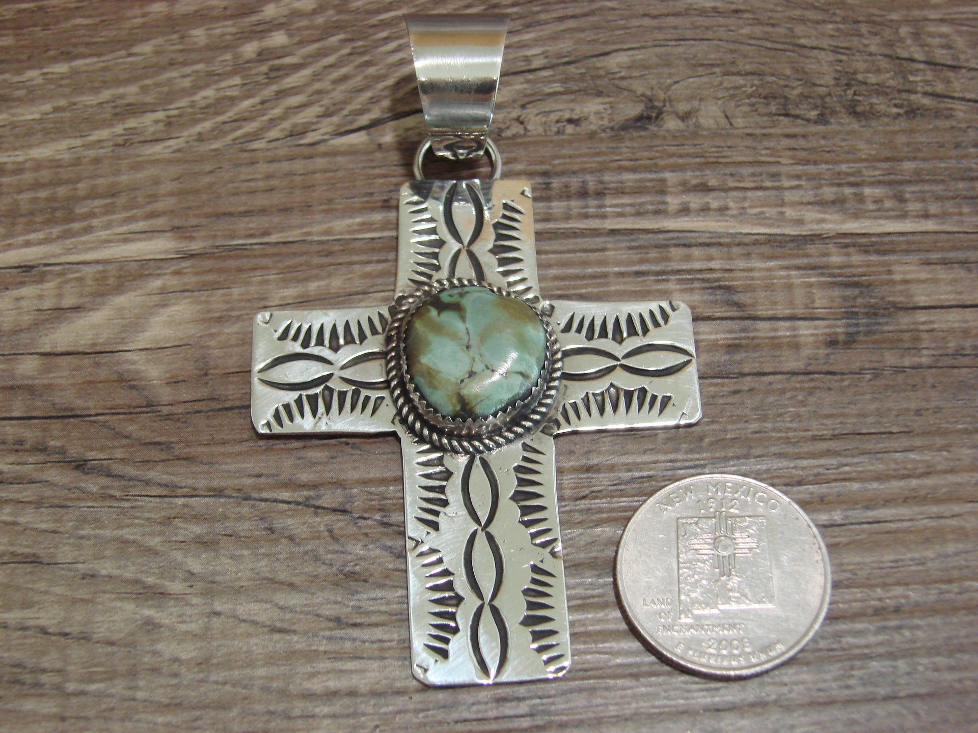 Large Navajo Nickel Silver & Turquoise Cross Pendant - Cleveland