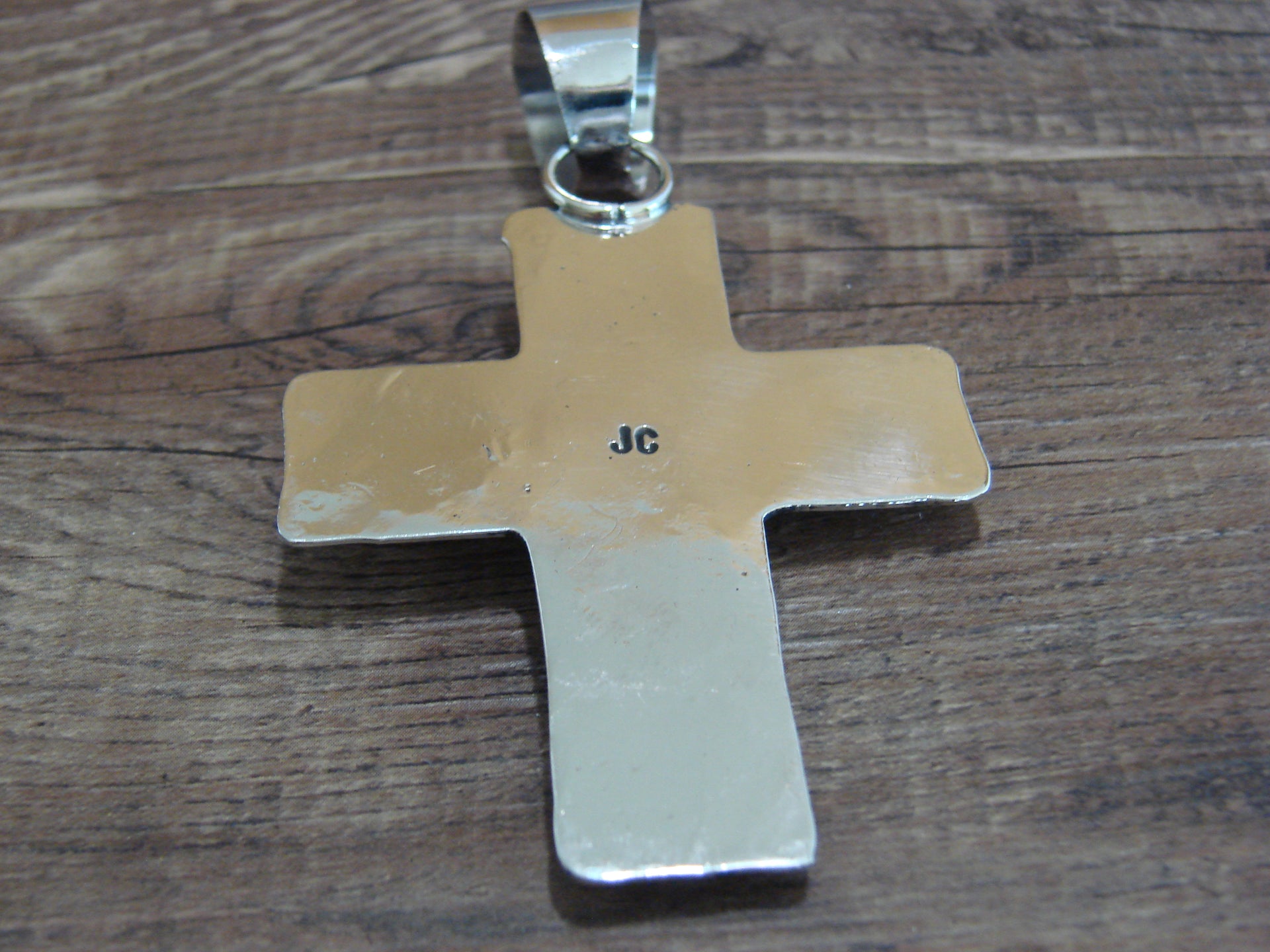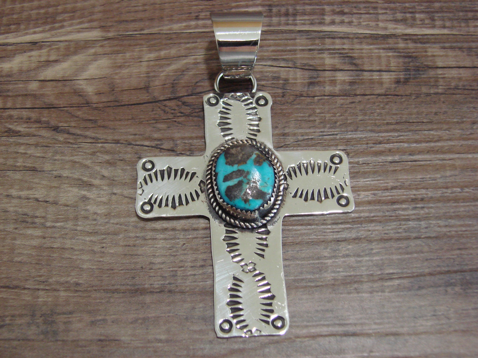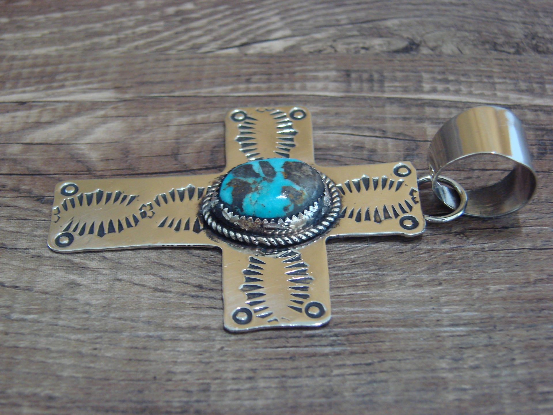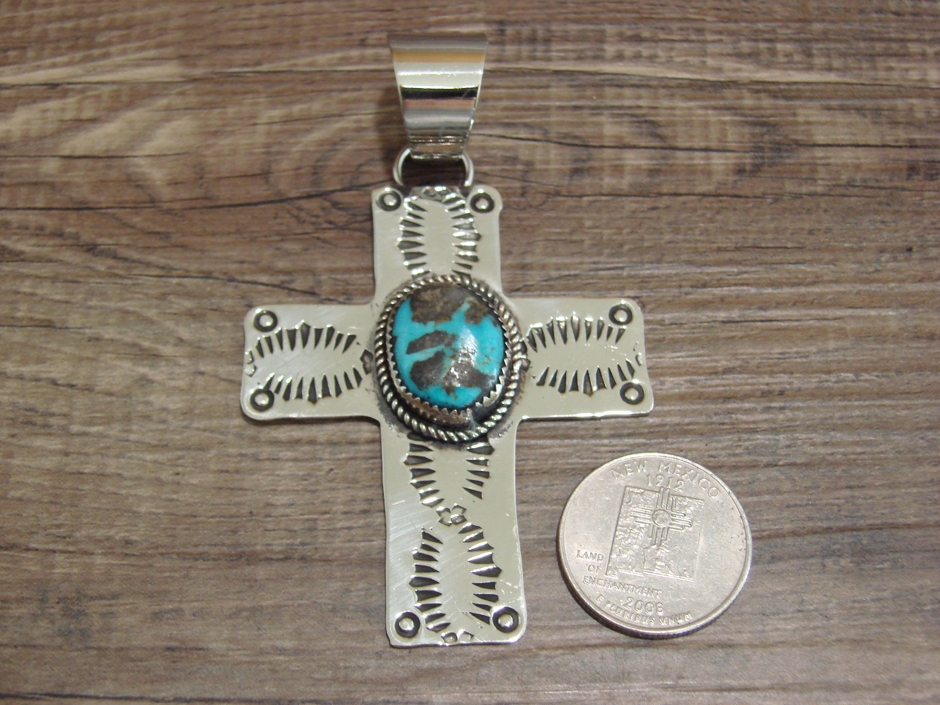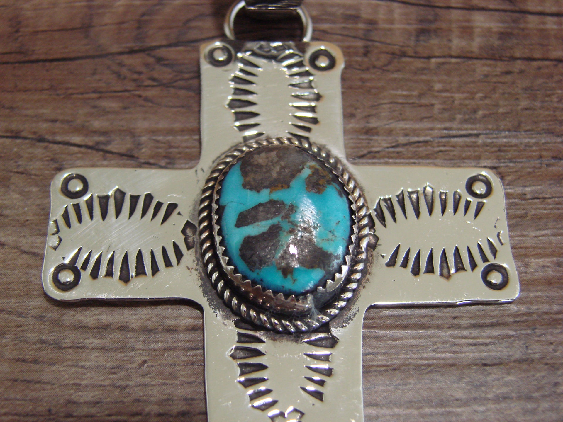 Large Navajo Nickel Silver & Turquoise Cross Pendant - Cleveland