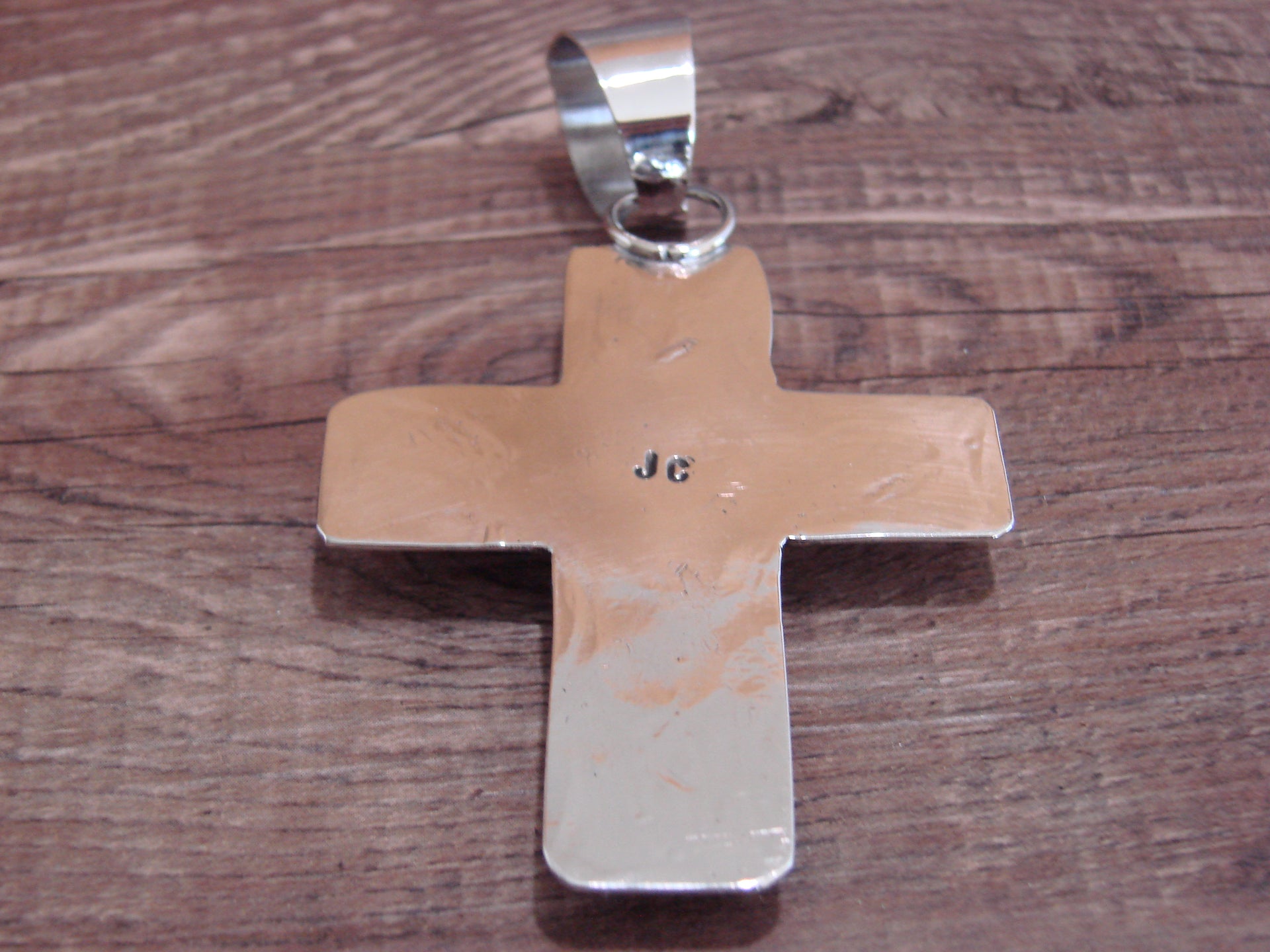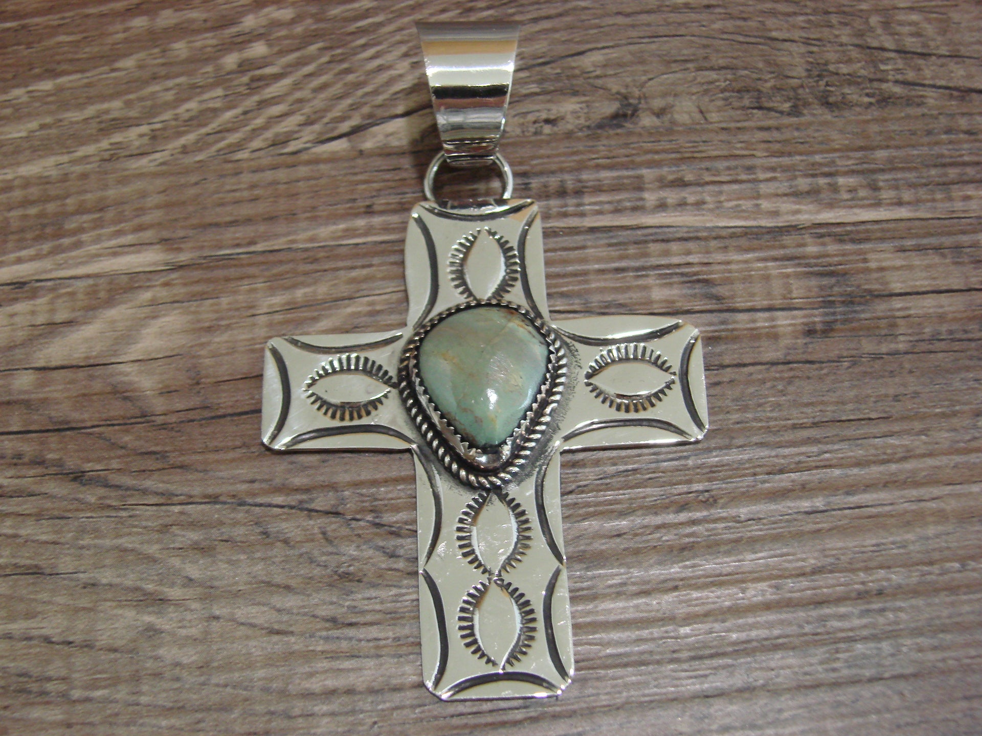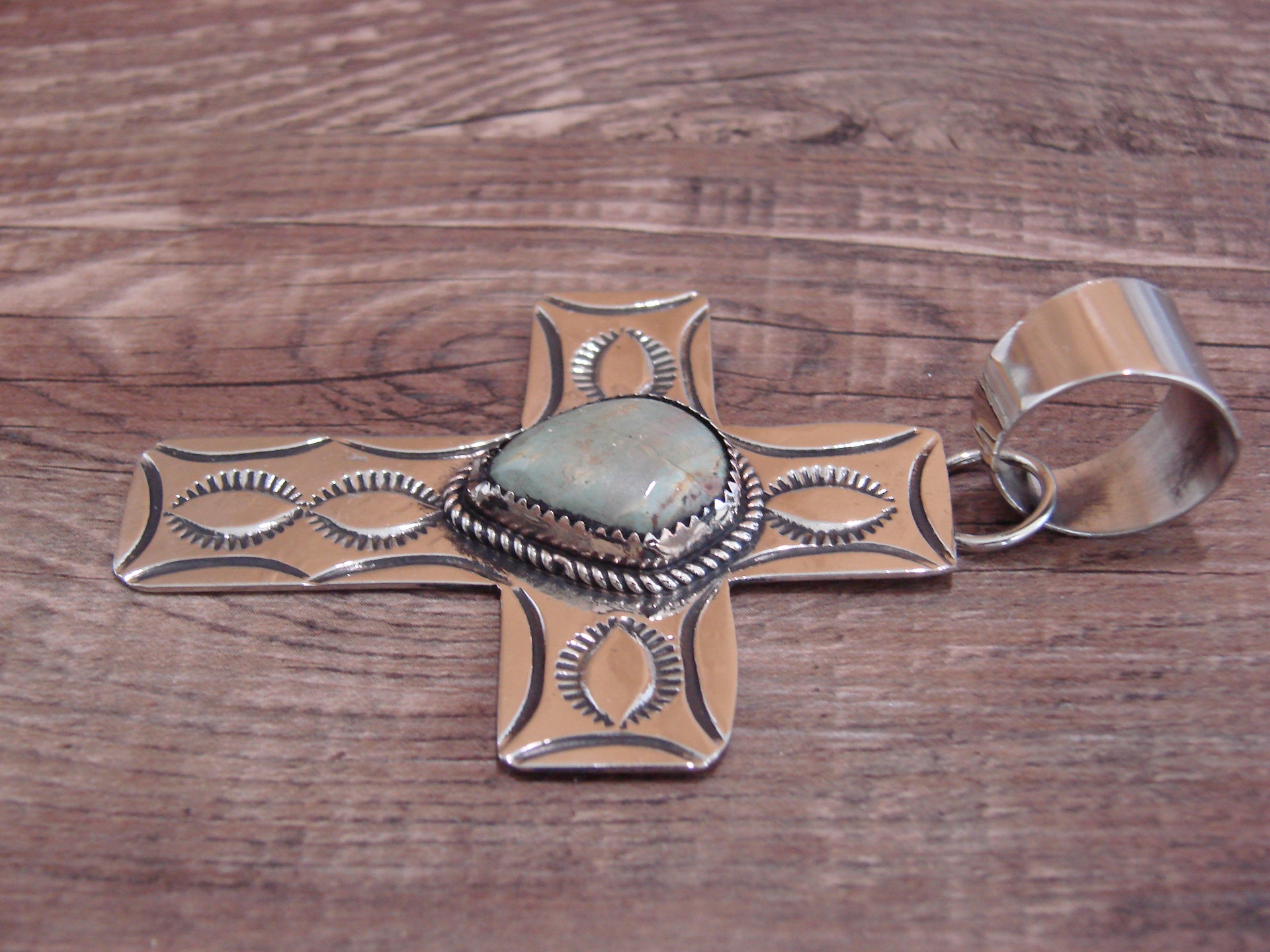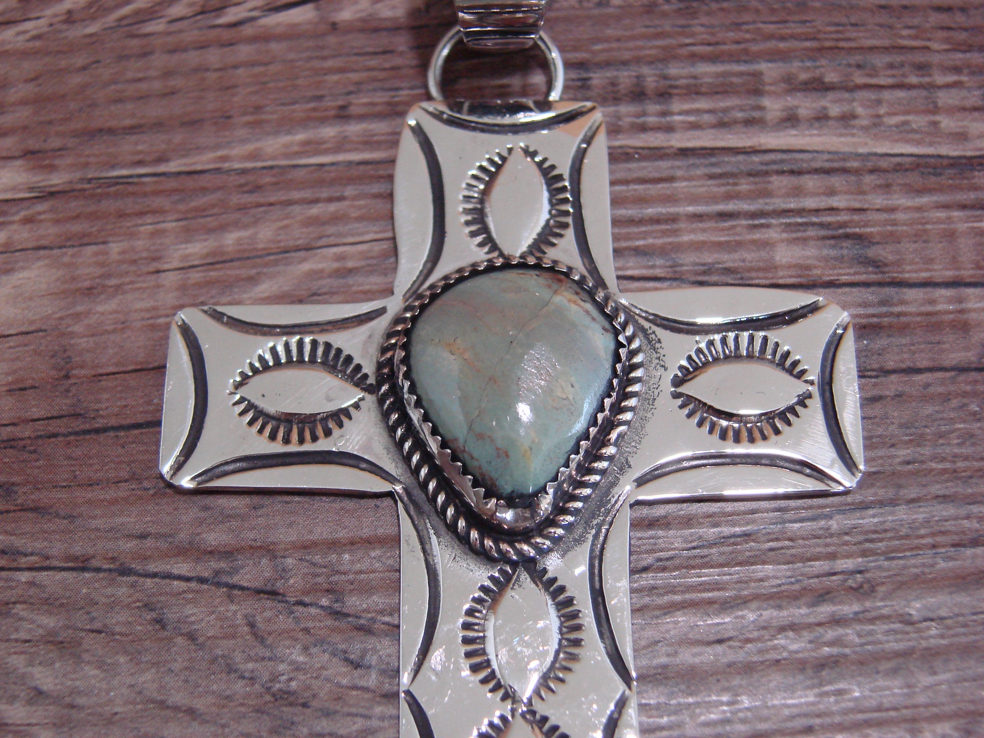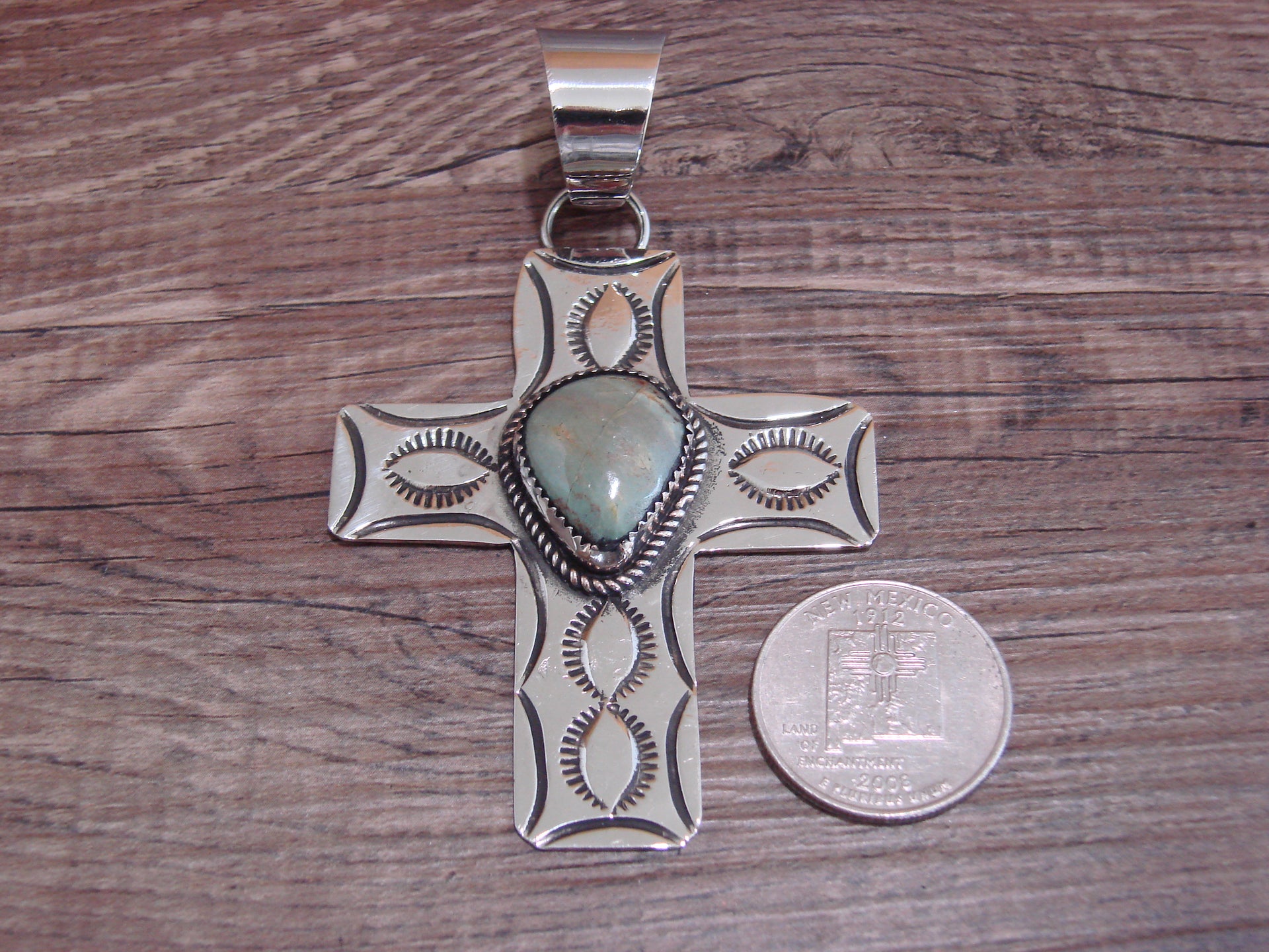 Large Navajo Nickel Silver & Turquoise Cross Pendant - Cleveland