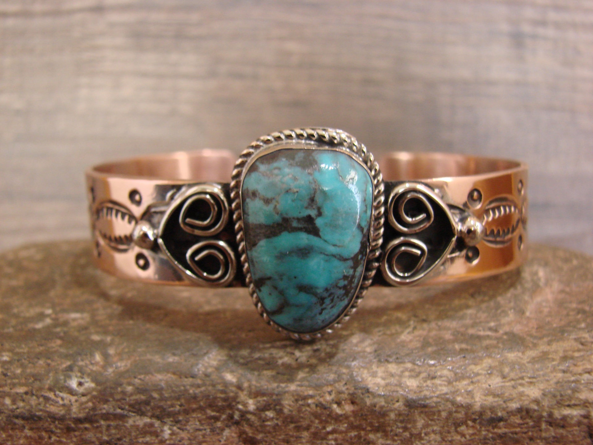 Native American Copper & Turquoise Bracelet by Cleveland