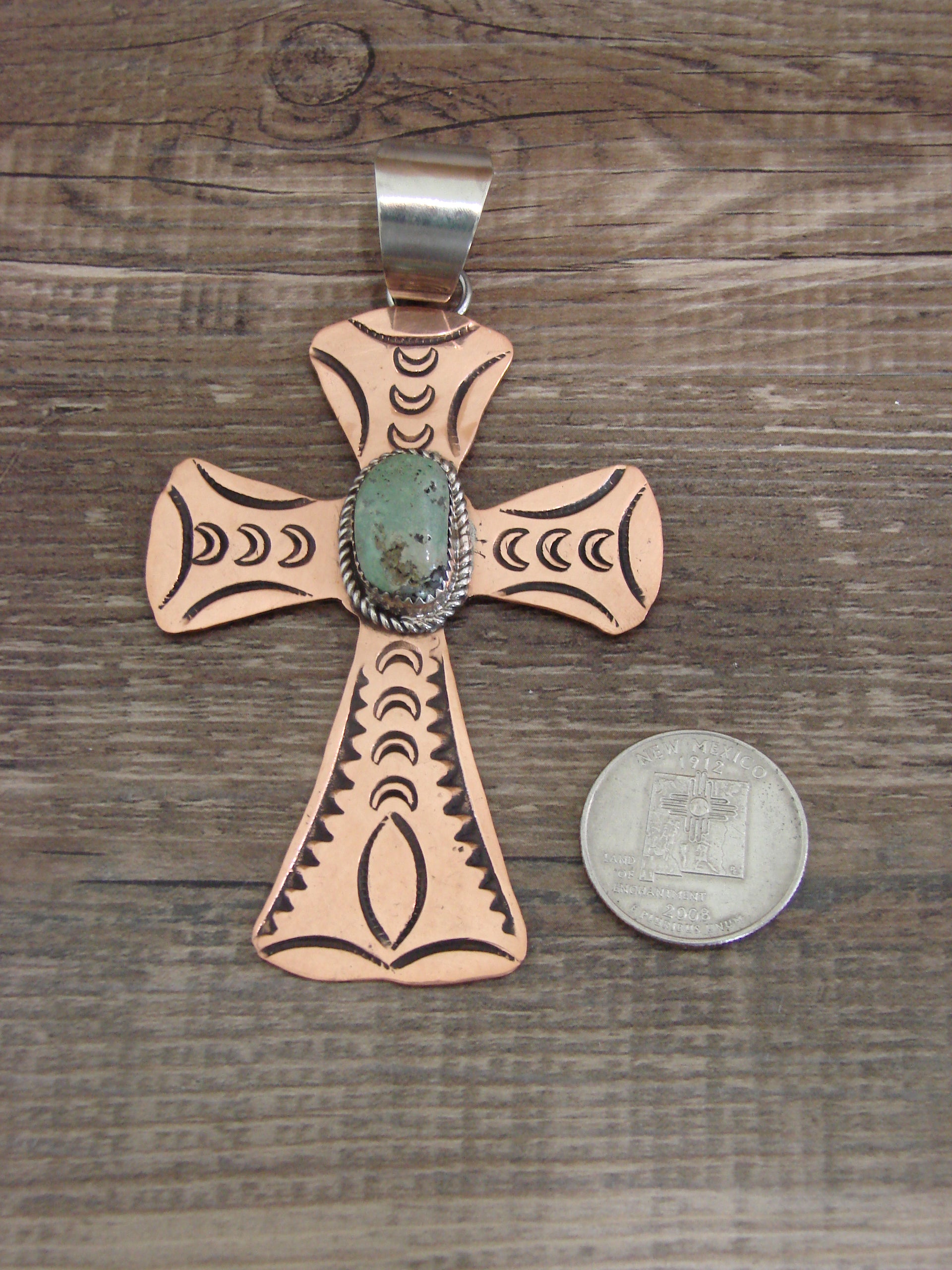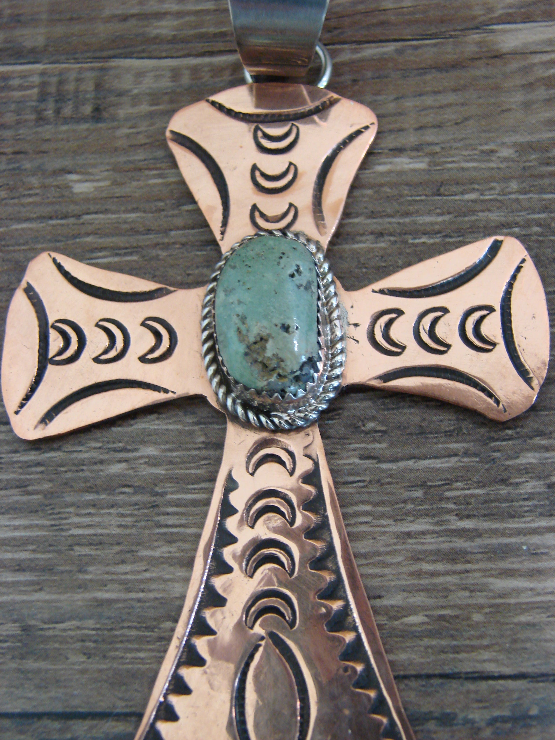 Native American Copper & Turquoise Cross Pendant by Cleveland