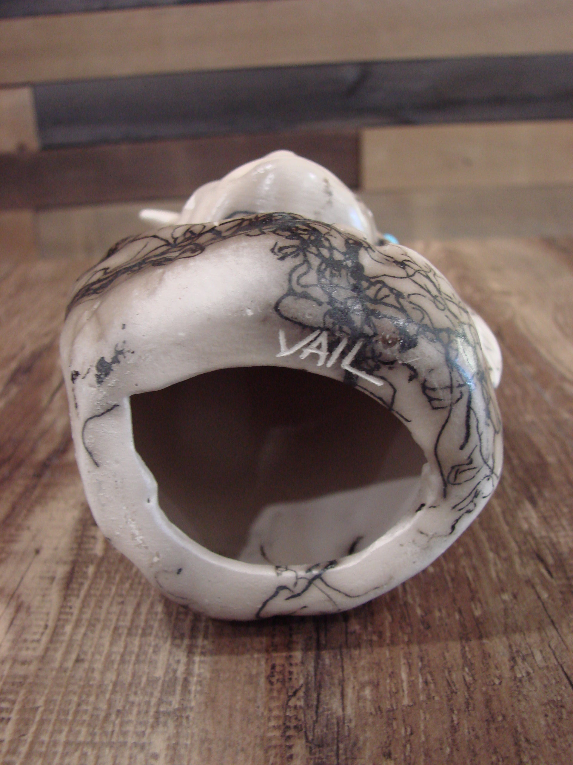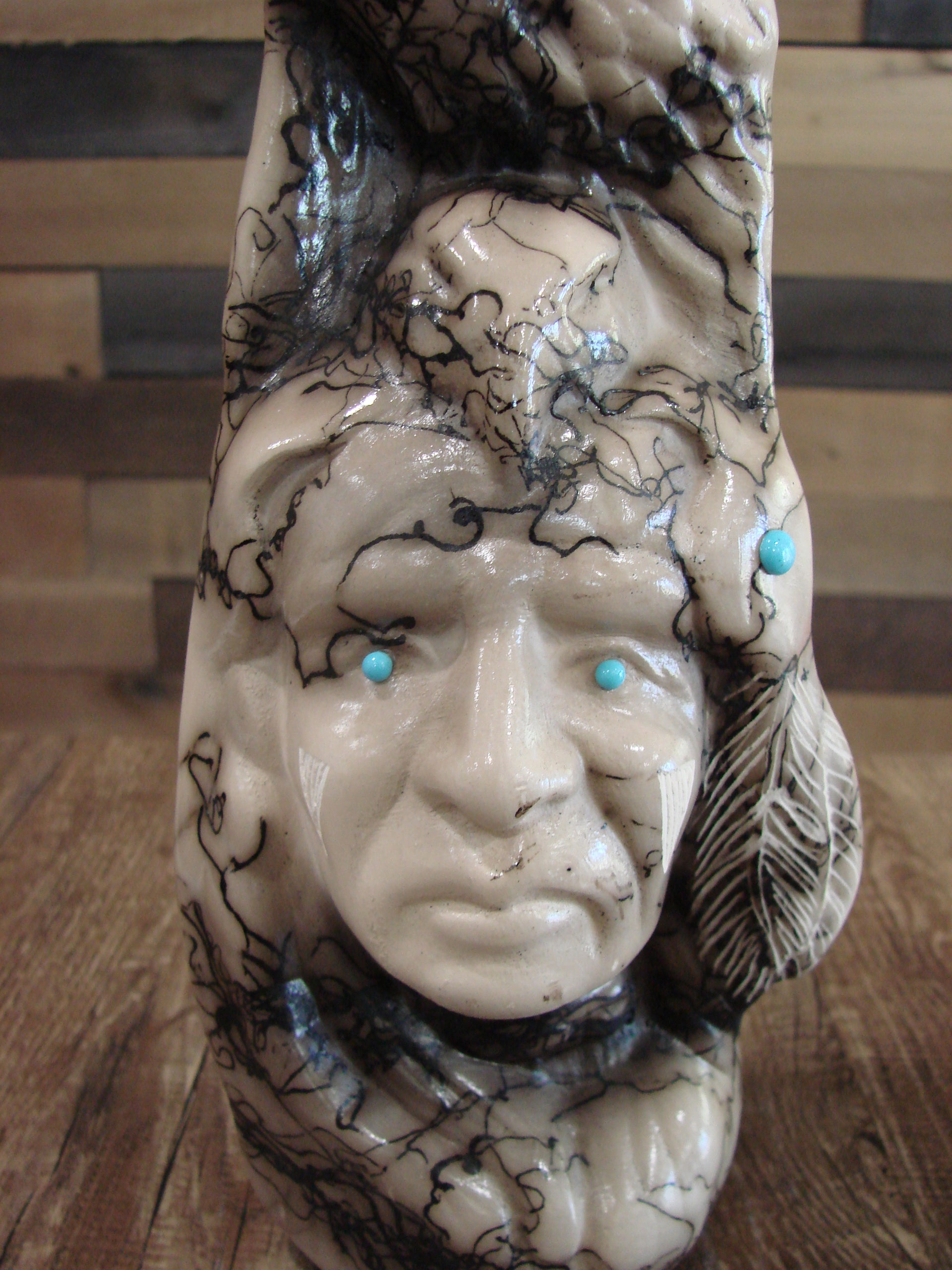 Genuine Native American Navajo Indian Horse Hair Native American & Eagle Sculpture from Western New Mexico. This sculpture features beautiful horse hair and hand etching throughout. The Horse hair is laid over this piece during firing, the result is a beautiful one of a kind look! Hand etched by Navajo artist Vail. Signed on the bottom. Free shipping included!