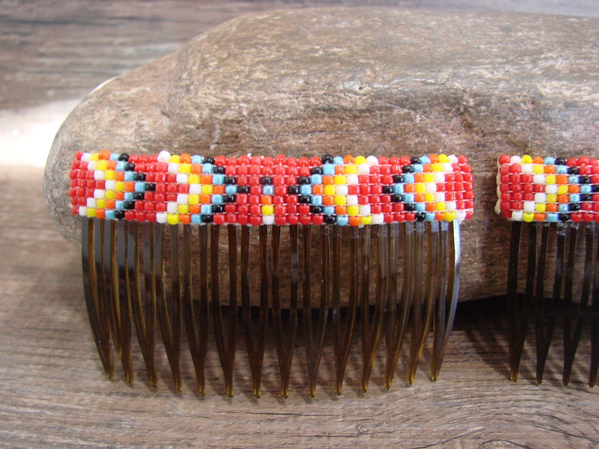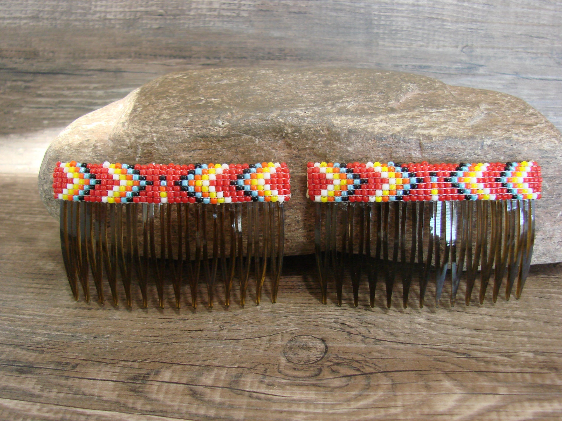 Native American Hand Beaded Hair Comb Set by Cleveland