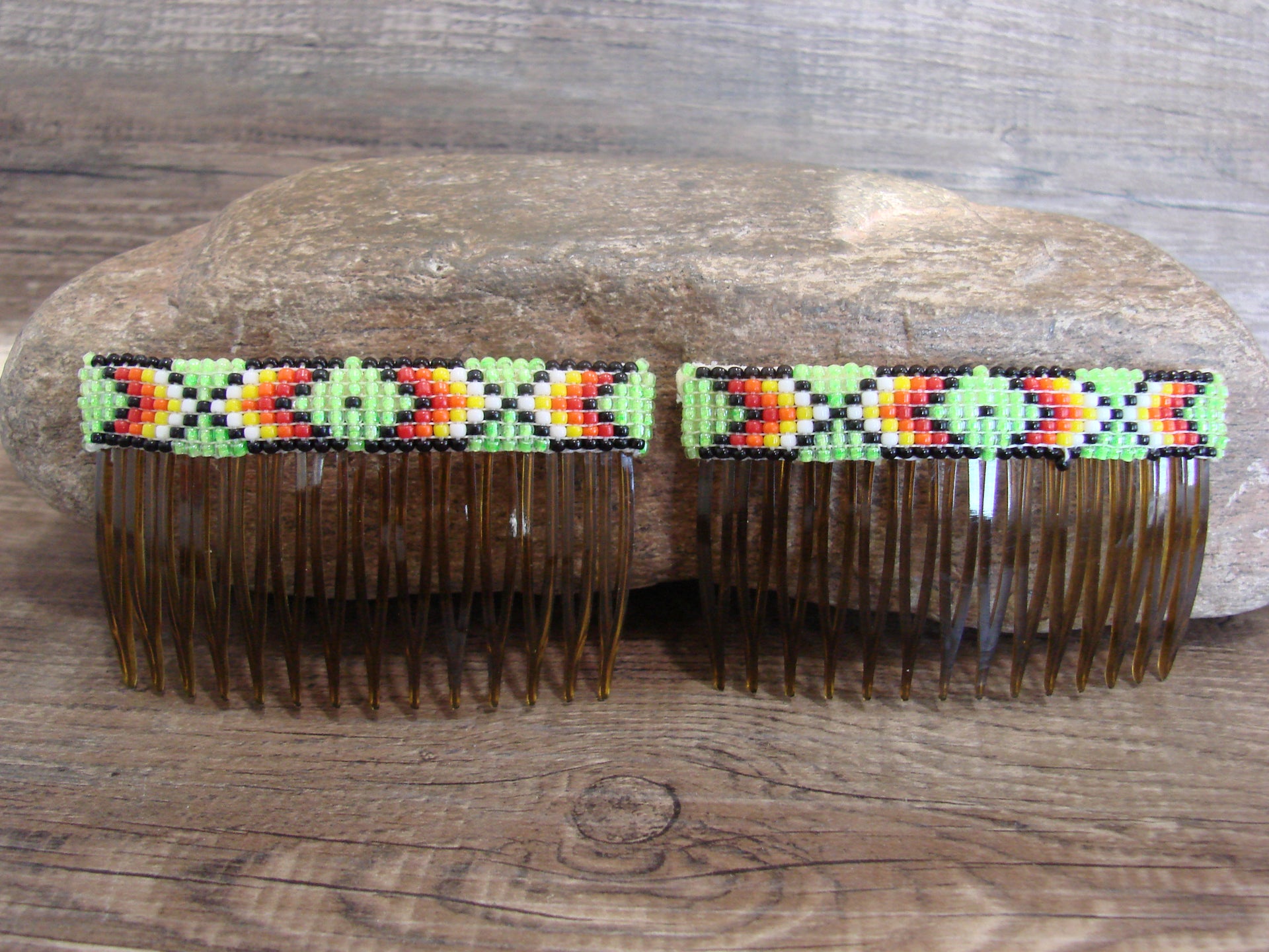 Native American Hand Beaded Hair Comb Set by Cleveland