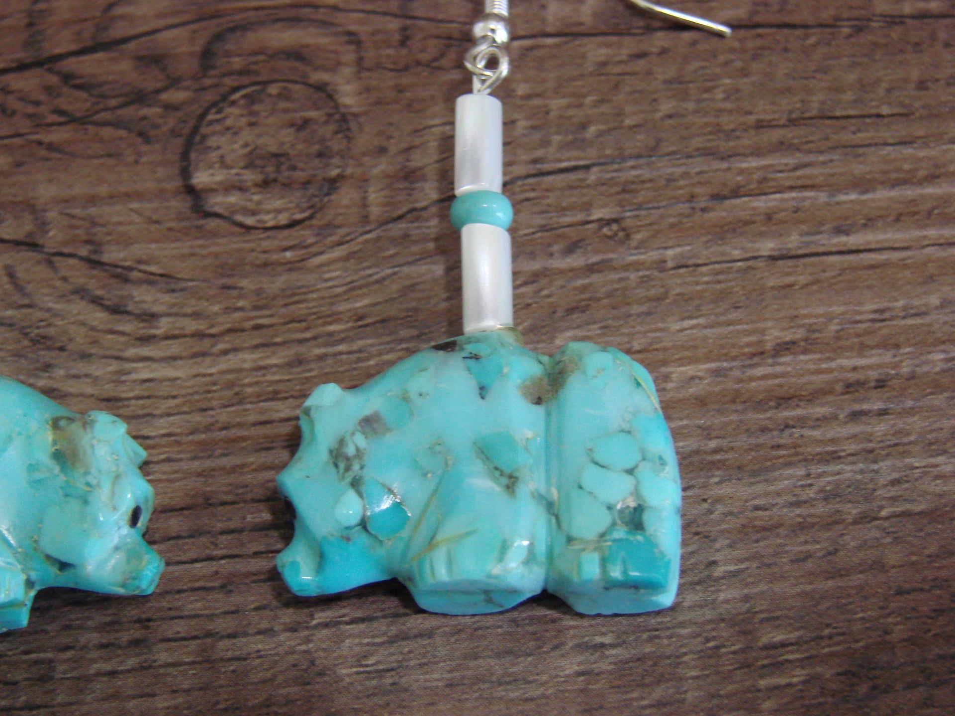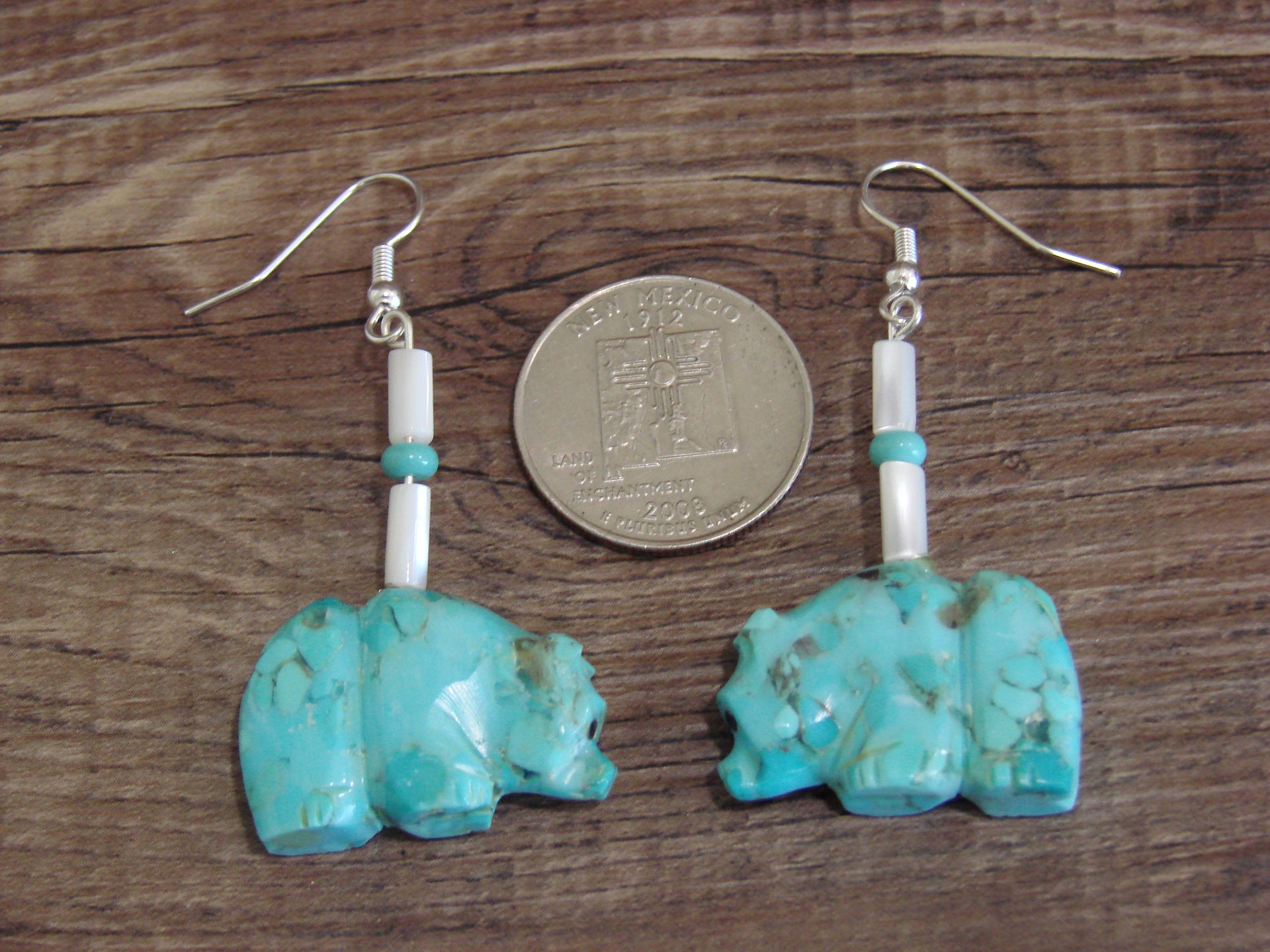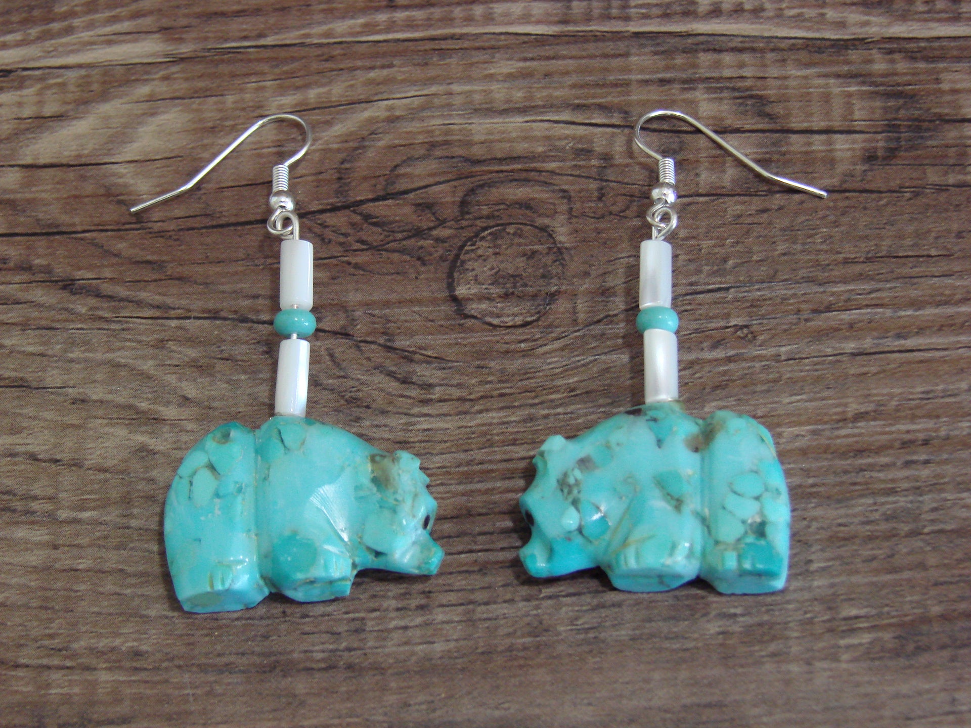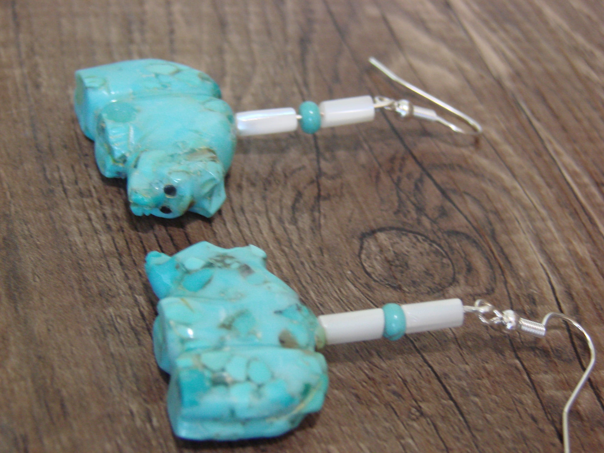 Native American Hand Carved Bear Fetish Dangle Earrings - Laate