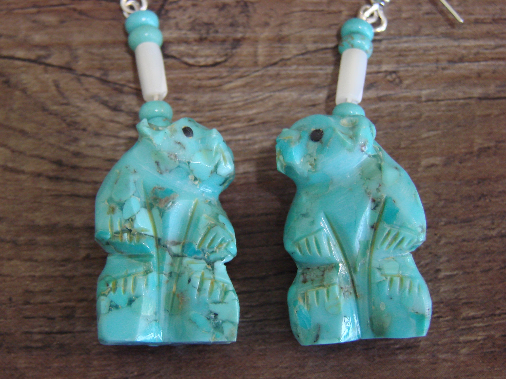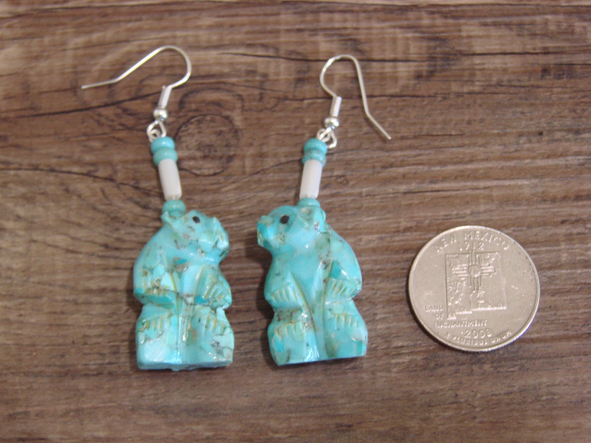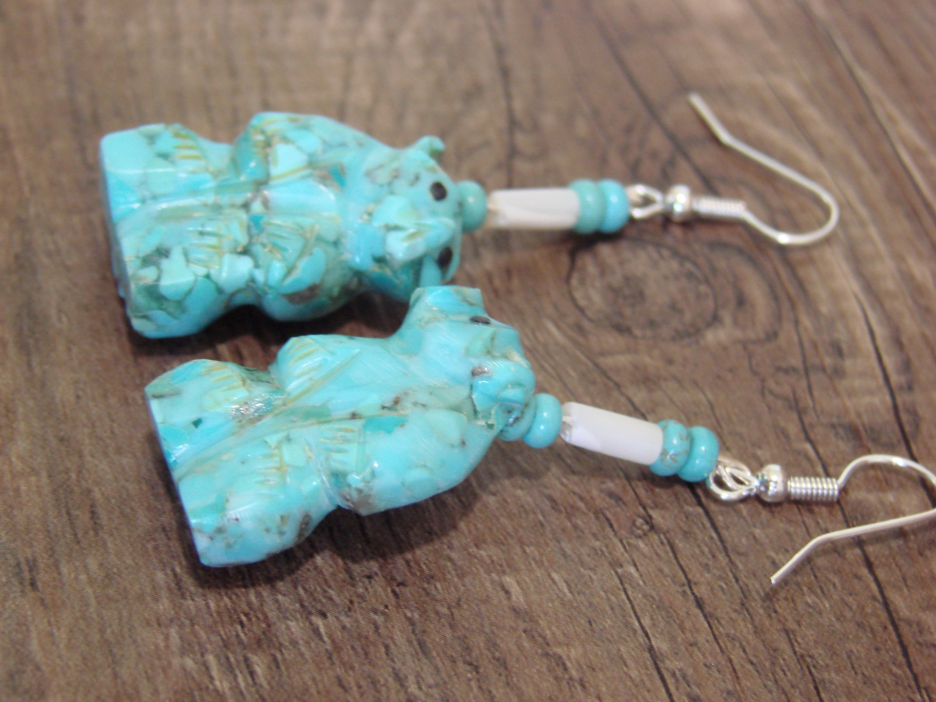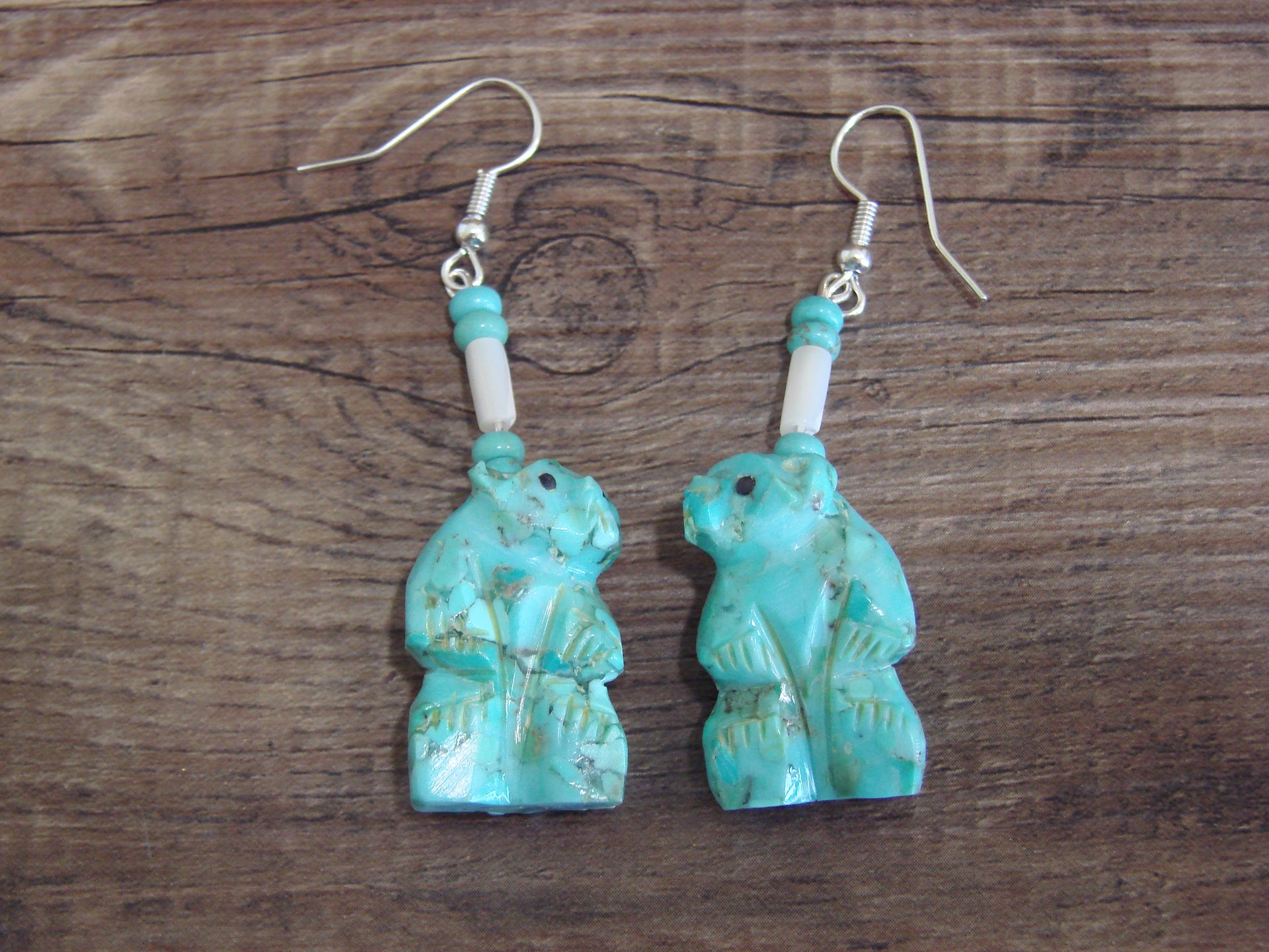 Native American Hand Carved Bear Fetish Dangle Earrings - Laate